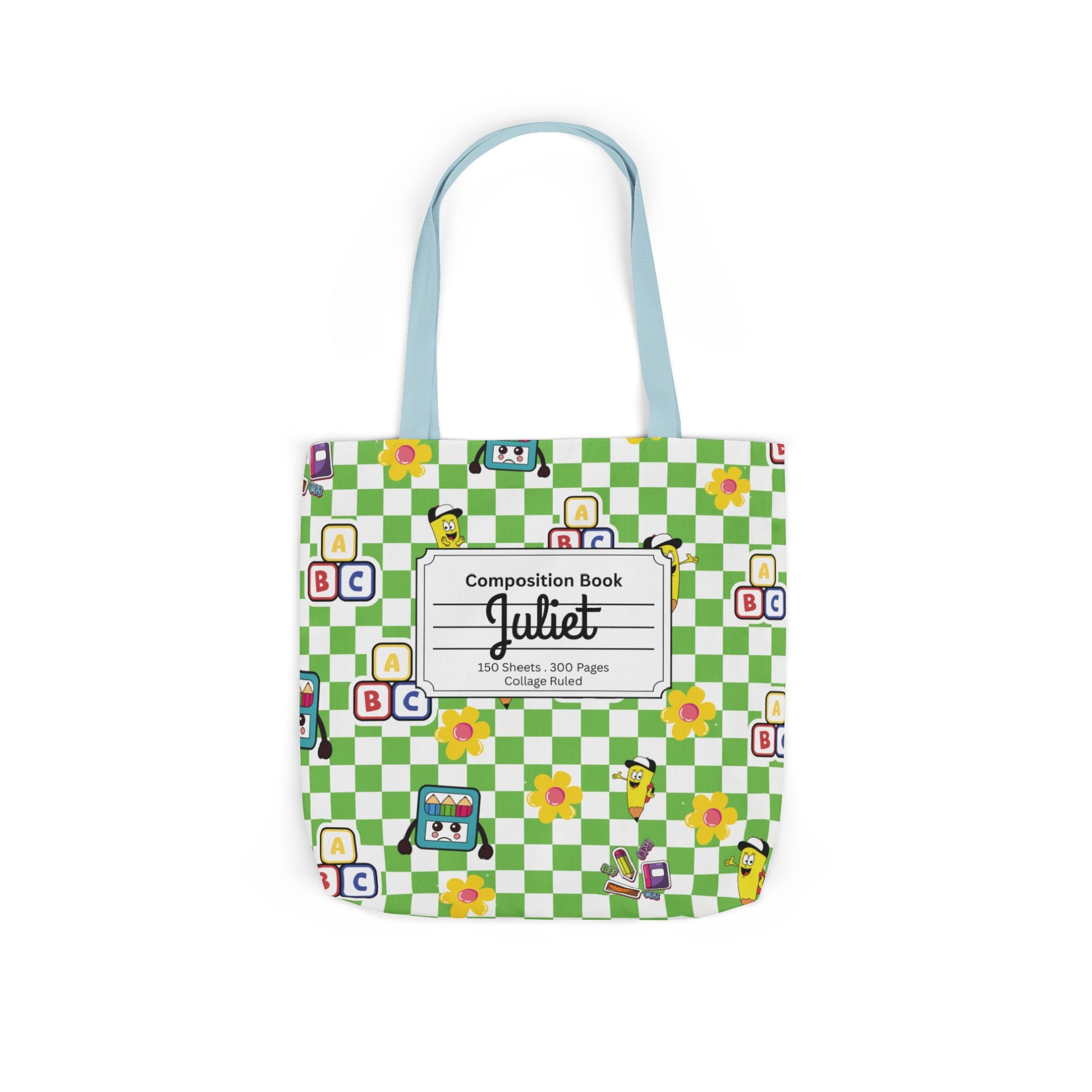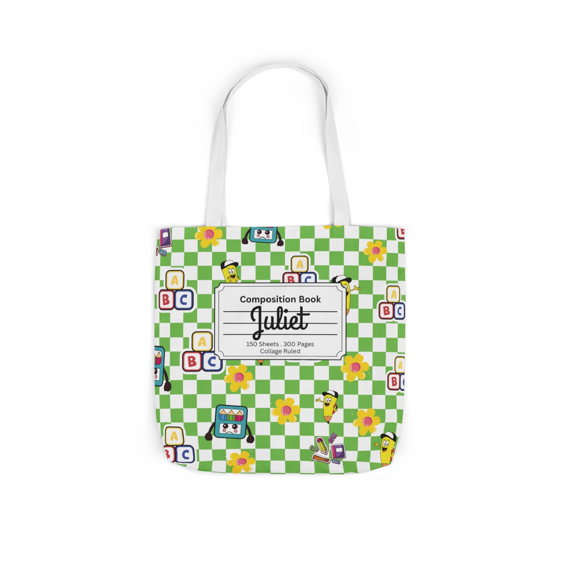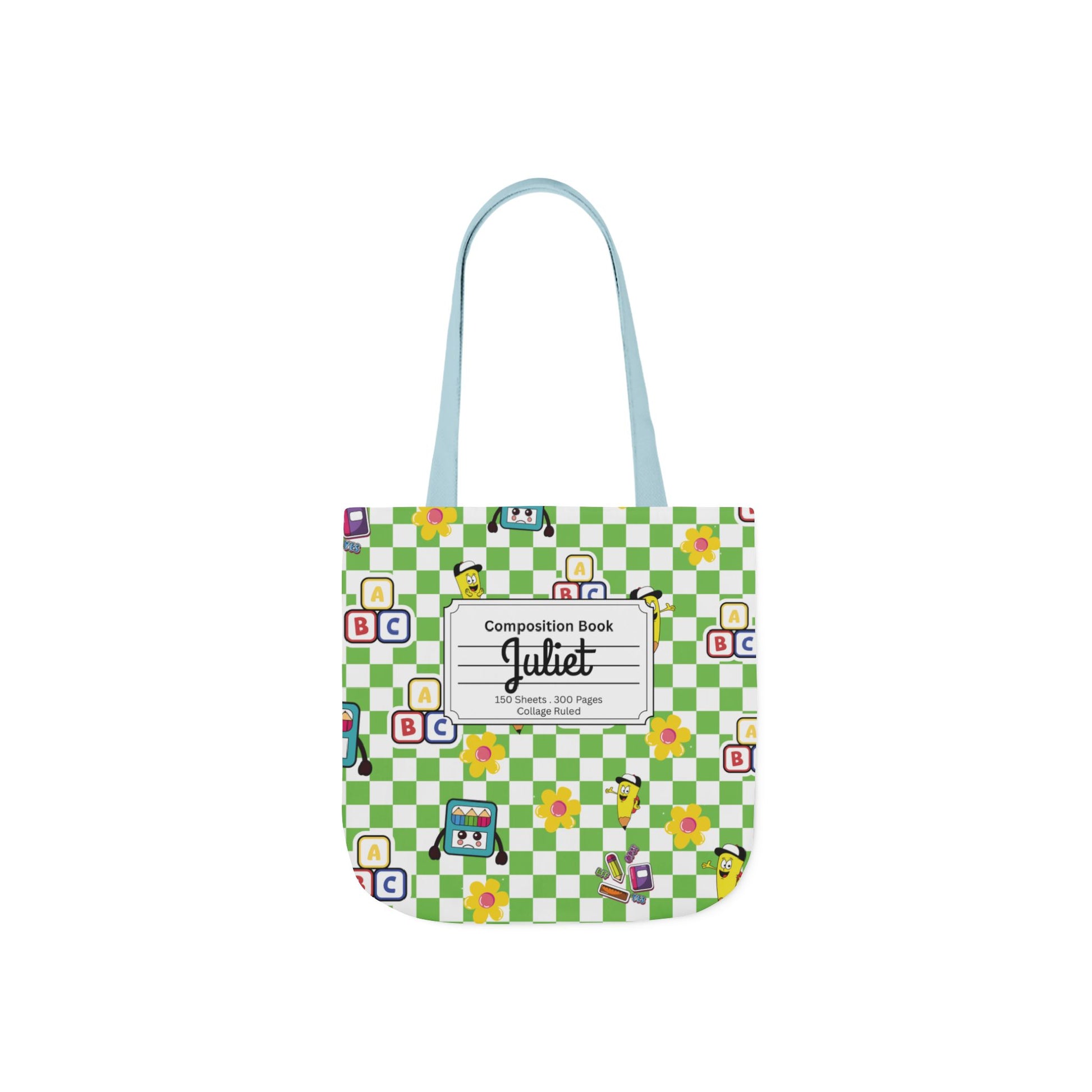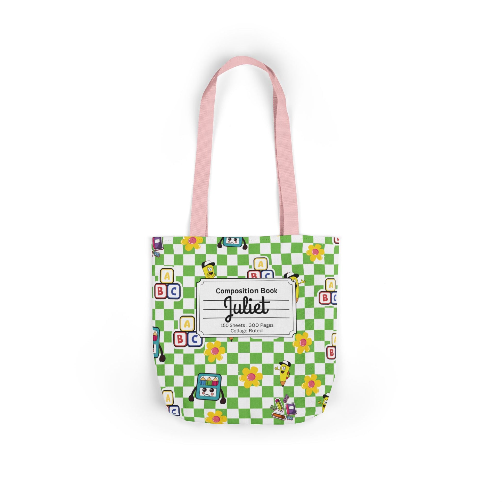 Personalized Green Schoolyard Chic Composition Book Inspired Canvas Tote Bag with Colorful Straps, Cute School Bag, Eco-Friendly Tote, Back to School Shopping Bag, Teacher Gift Idea