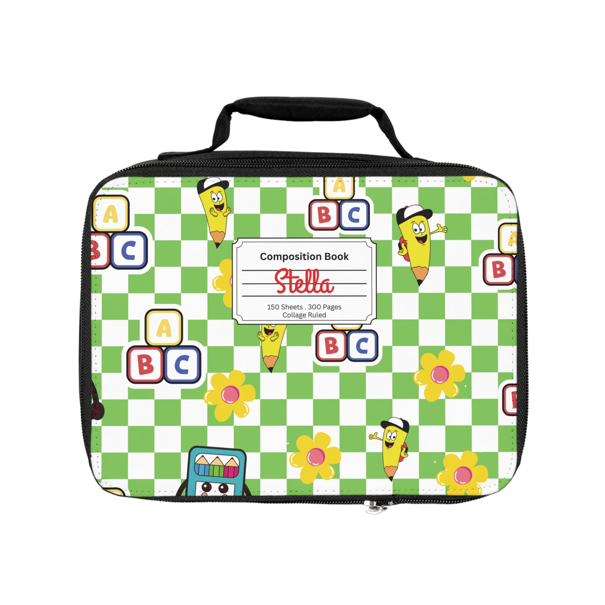 Personalized Green SchoolYard Chic Composition Book Inspired Colorful Kids Lunch Bag for School, Snack Bag, Lunch Tote, Lunchbox, Kids' Bag with Fun Back to School Design
