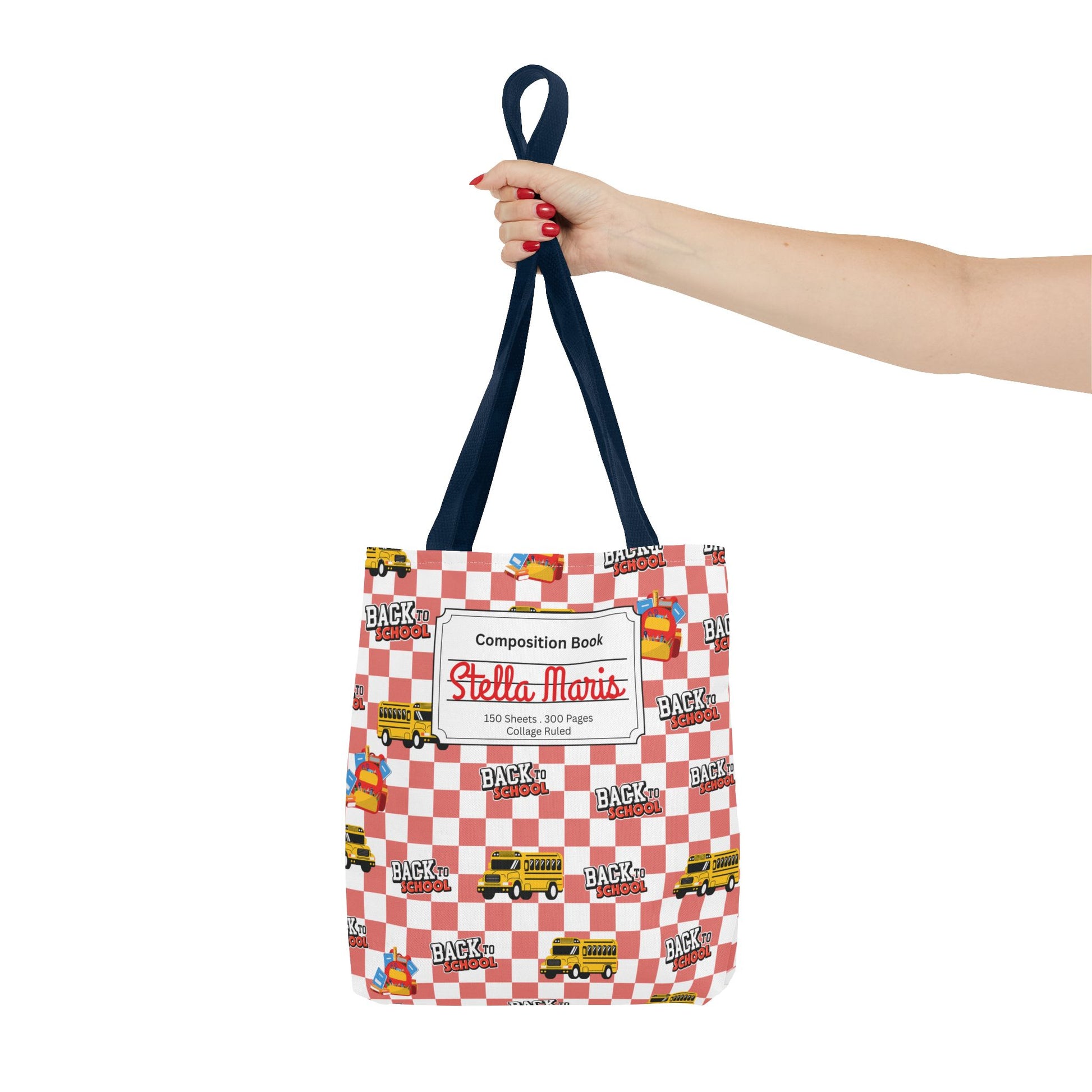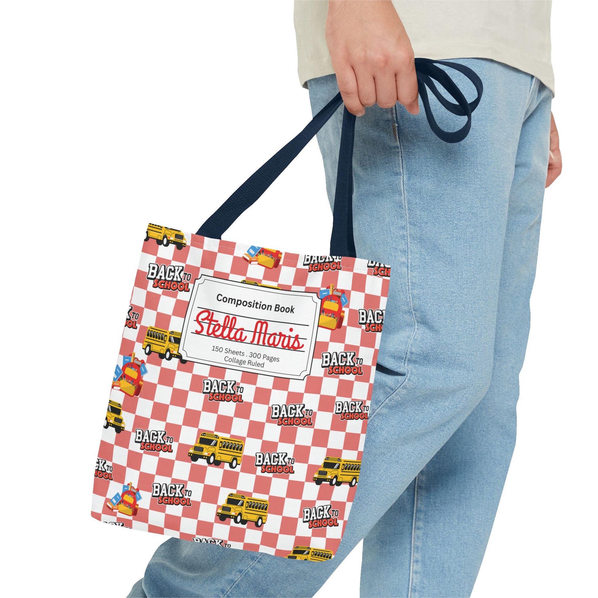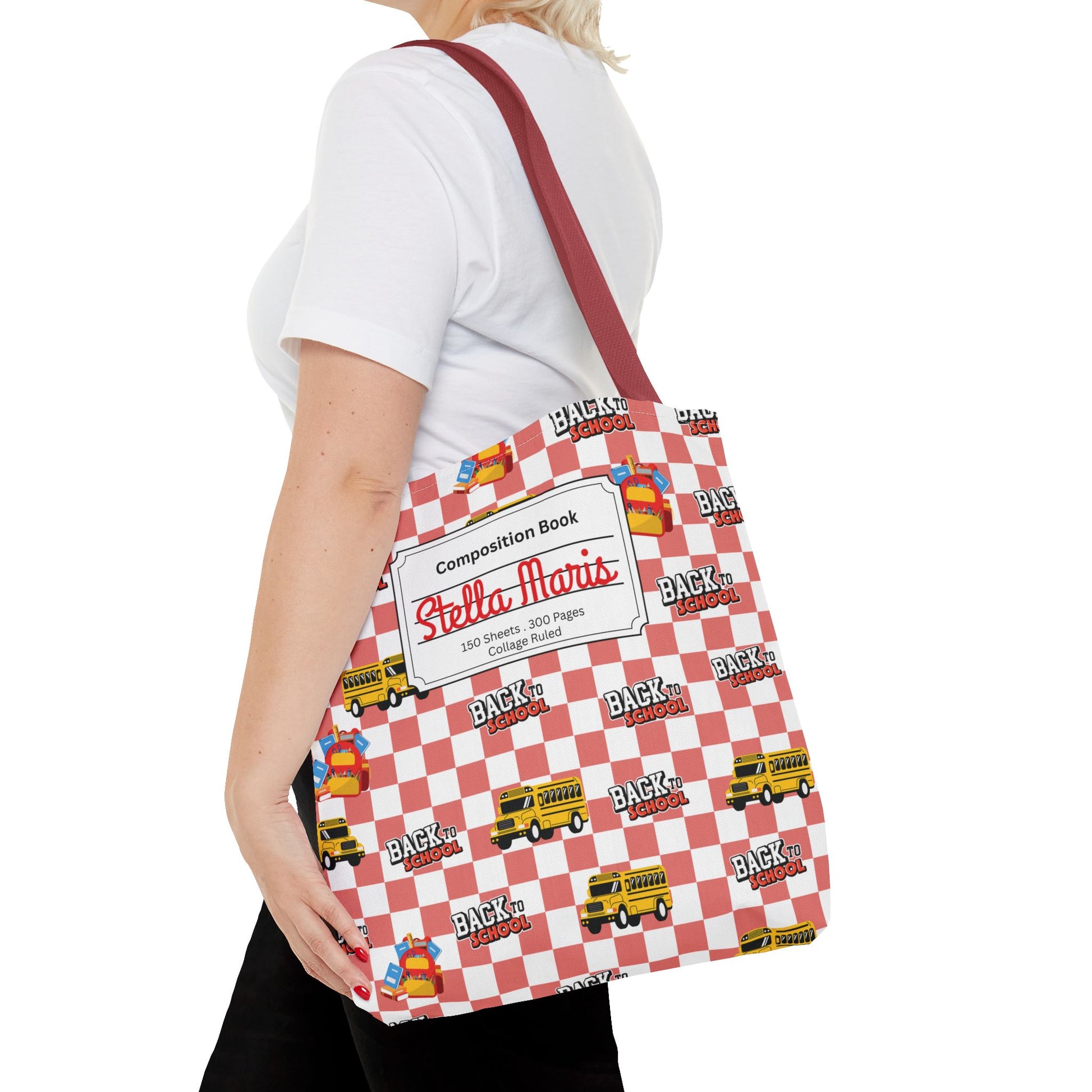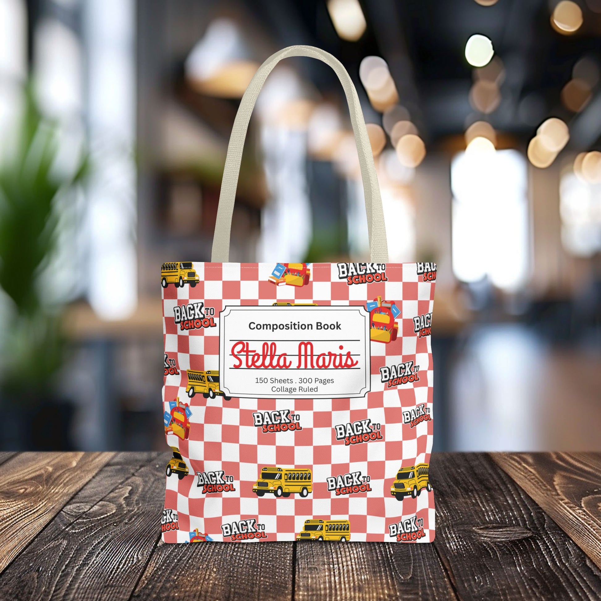 Personalized Red SchoolYard Chic Composition Book Inspired Tote Bag, Back to School Tote, Teacher Gift, Kids Bag, Custom Name Bag, Educational Accessories, Back to School Tote Bag.