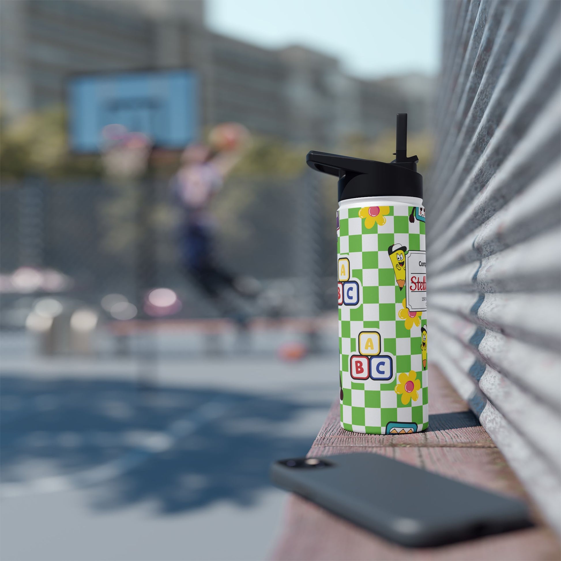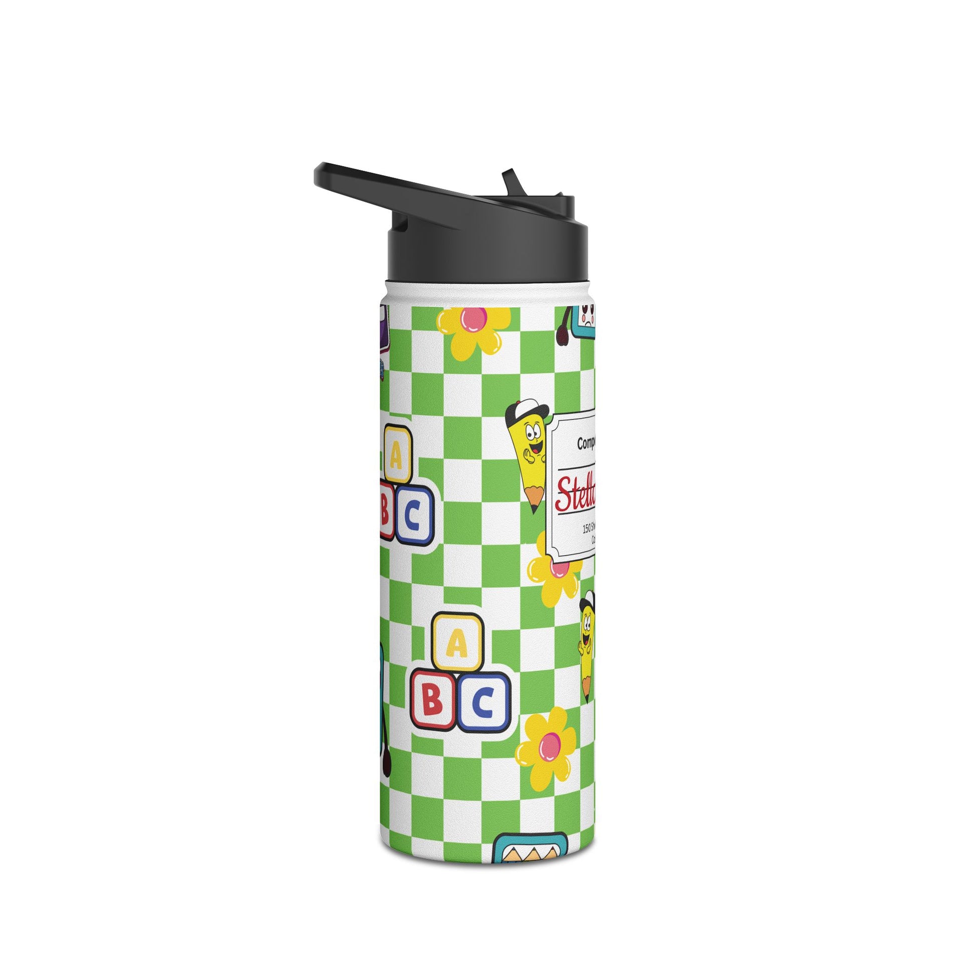 Personalized Green Schoolyard Chic Inspired Stainless Steel Water Bottle for Kids, Eco-Friendly Drinkware, Back to School, Teacher Gifts