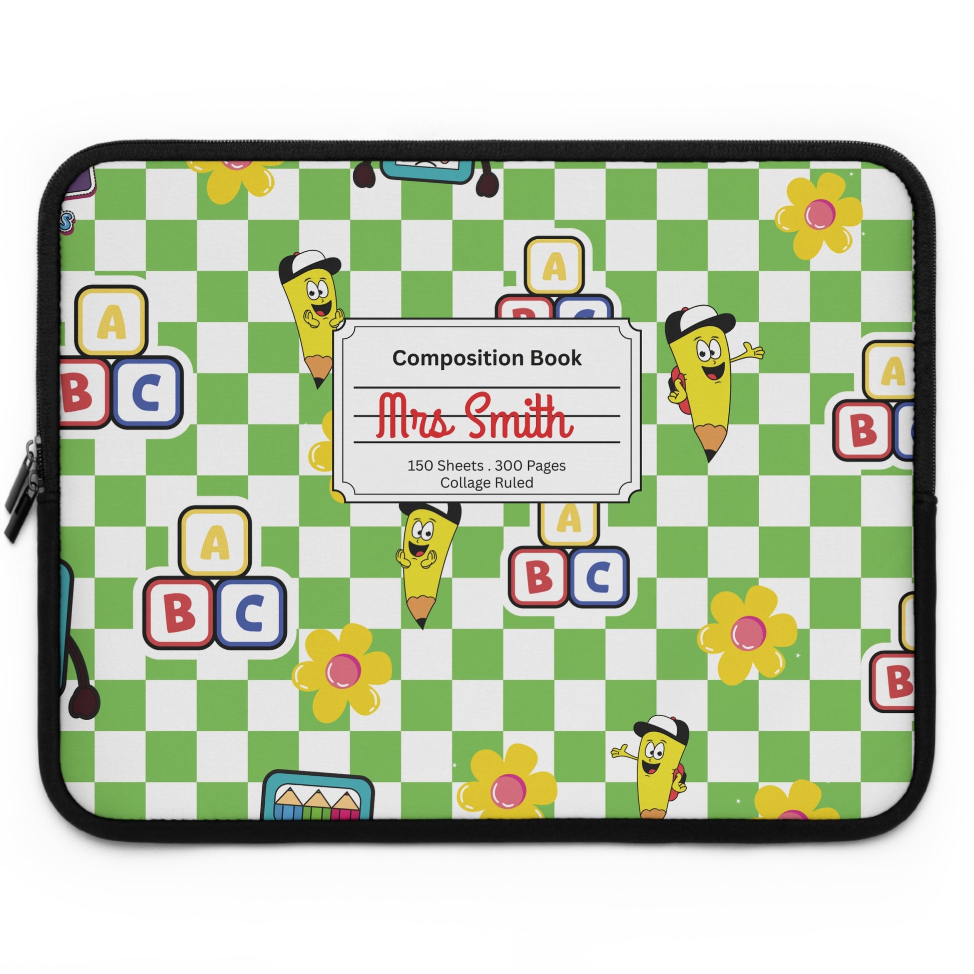 Personalized Green SchoolYard Chic Laptop Sleeve with Composition Book Inspired Design, Customizable Tech Case, School Supplies, Gift for Students, College Essentials, Back to School