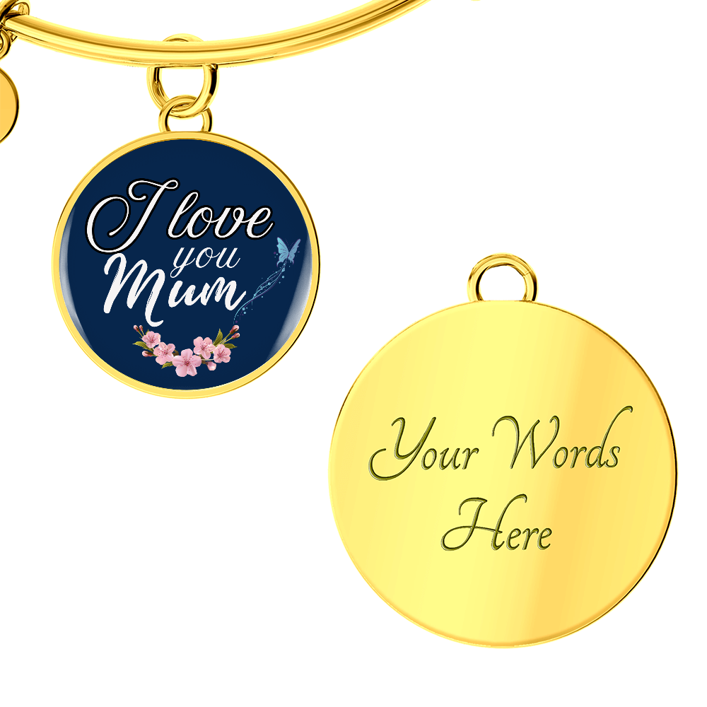 Personalized ''I Love You Mum'' Circle Engraving Bangle- a Gift for Daughter/Wife/Mothers.