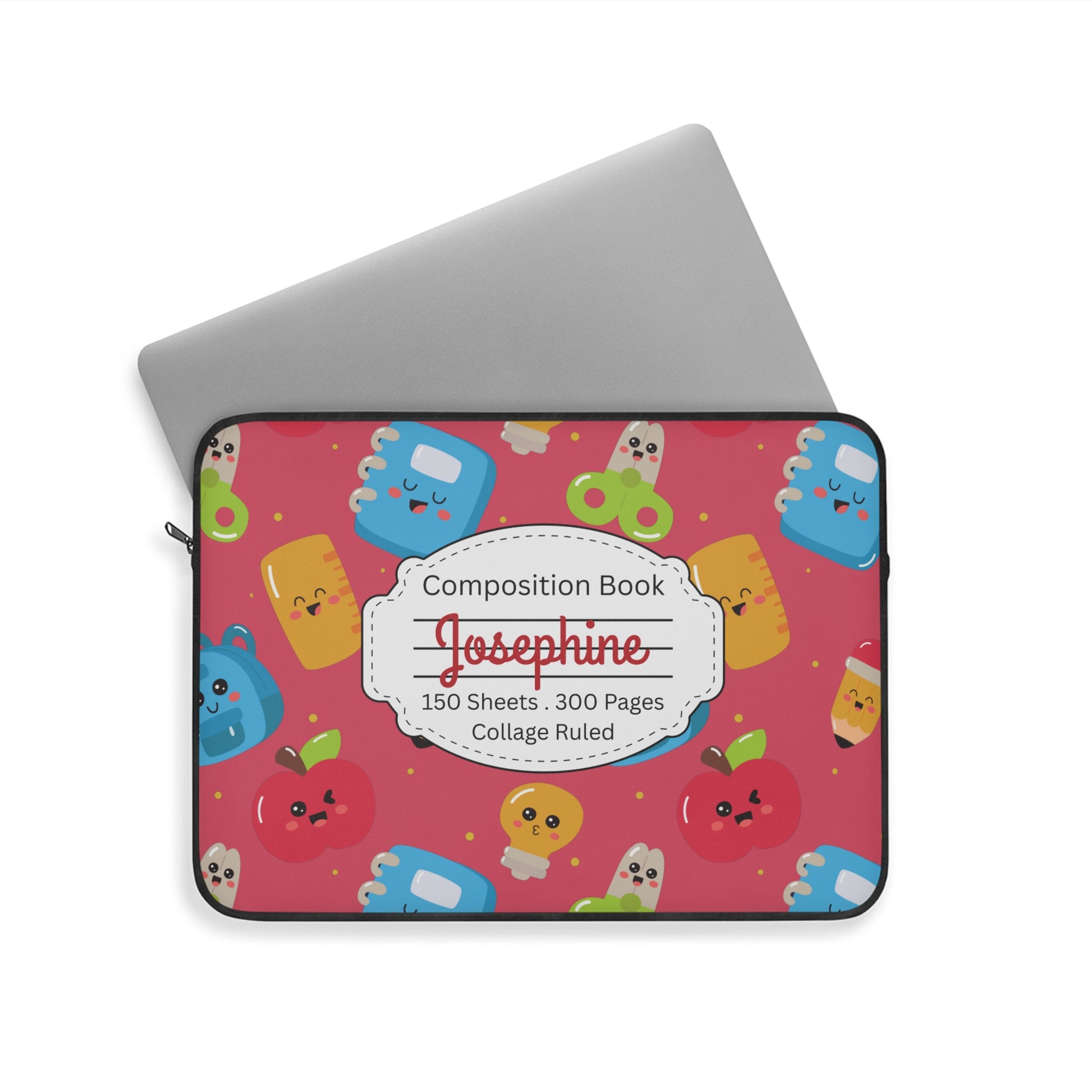 Personalized Kawaii Composition Book Inspired Laptop Sleeve, Educational Gift for Teachers, Classroom Organization, Back to School, Unique Teacher Accessory