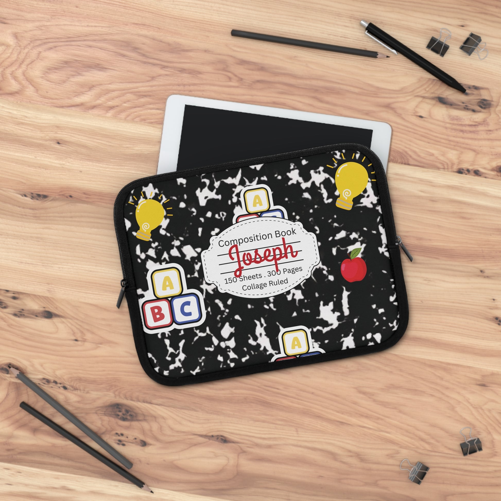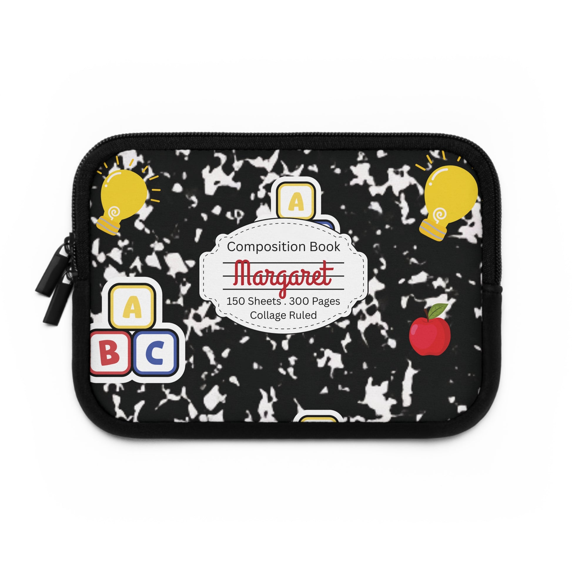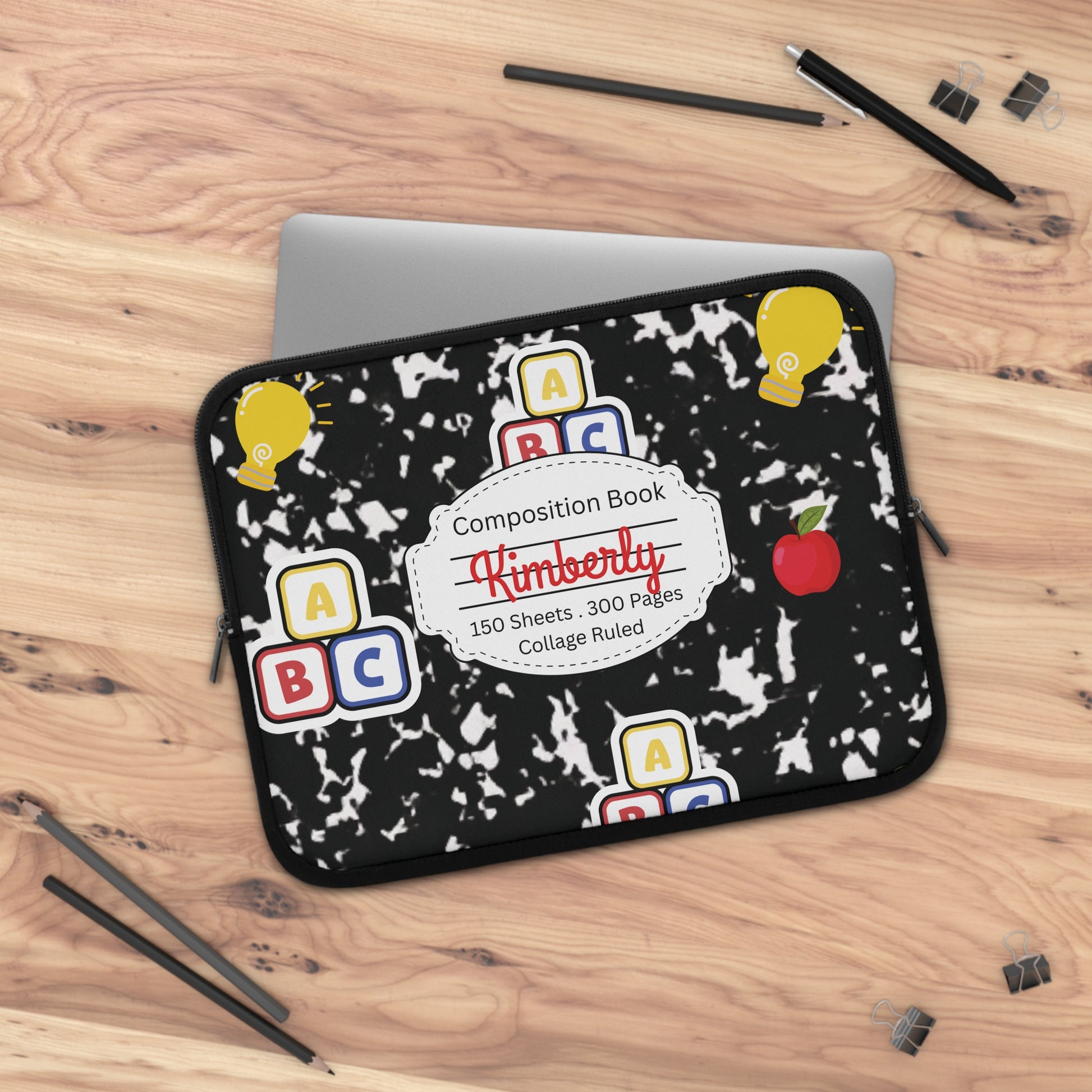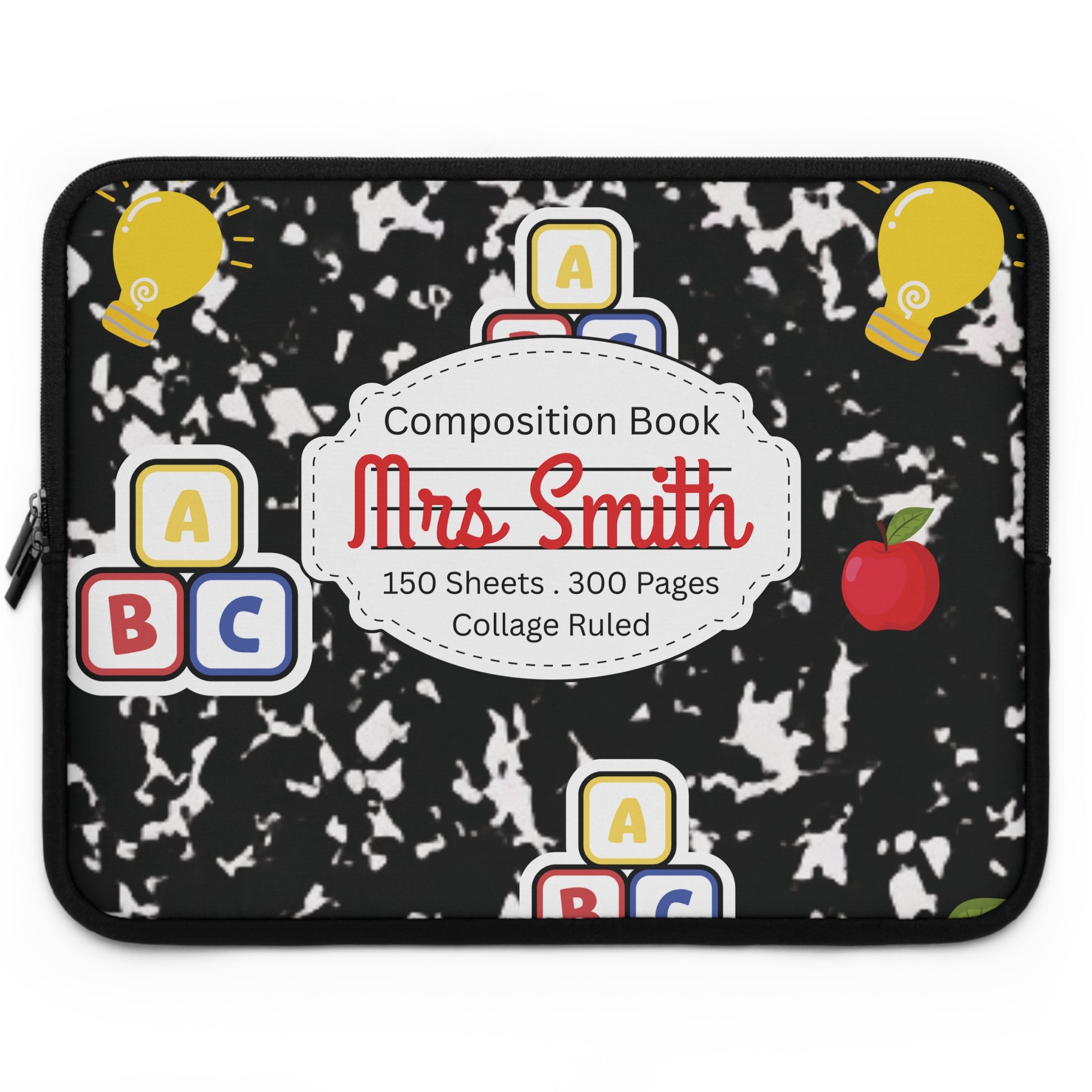 Personalized Laptop Sleeve with Black Composition Book Inspired Design, Customizable Tech Case, School Supplies, Gift for Students, College Essentials, Back to School