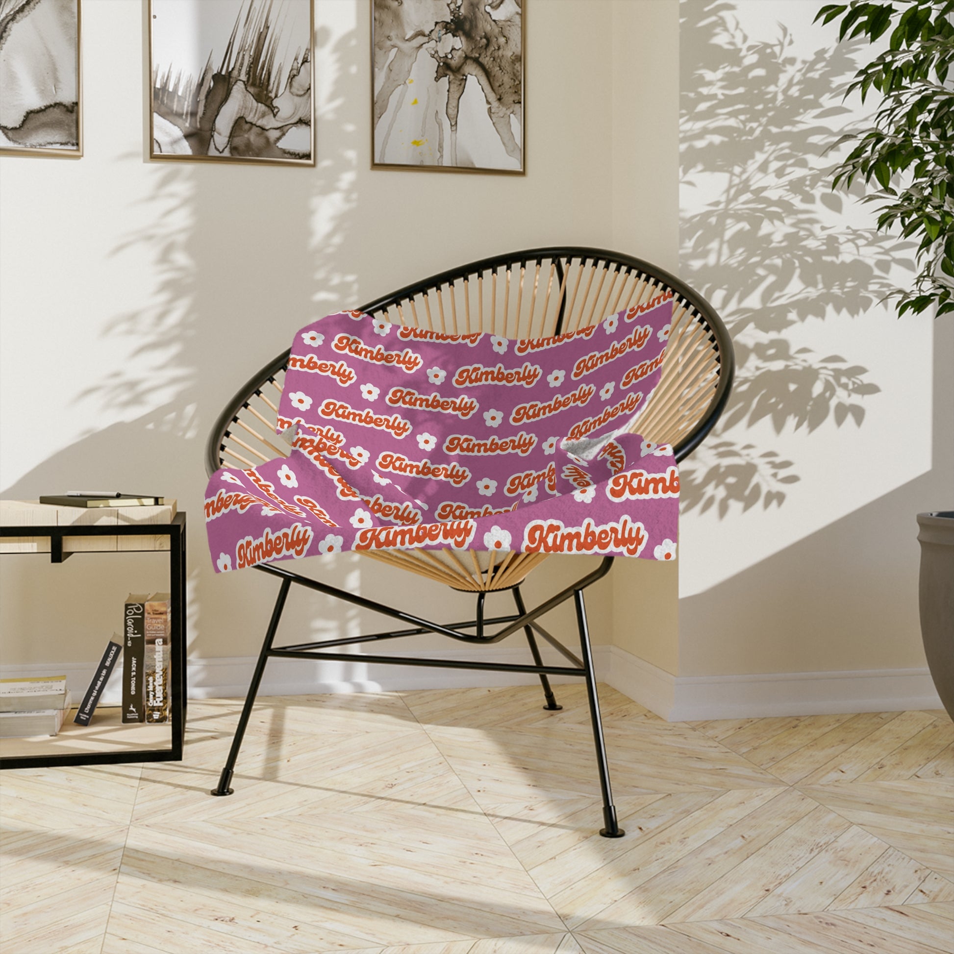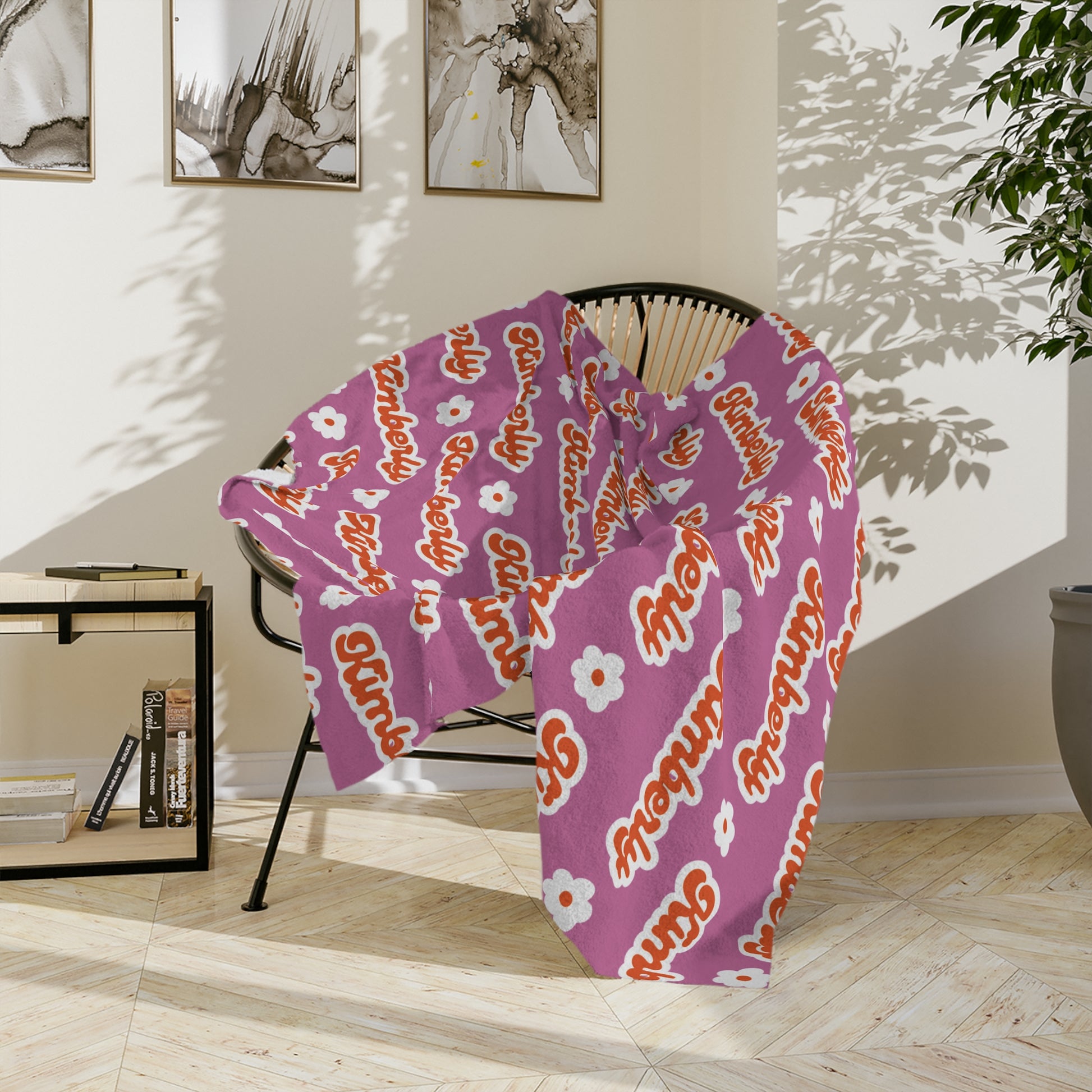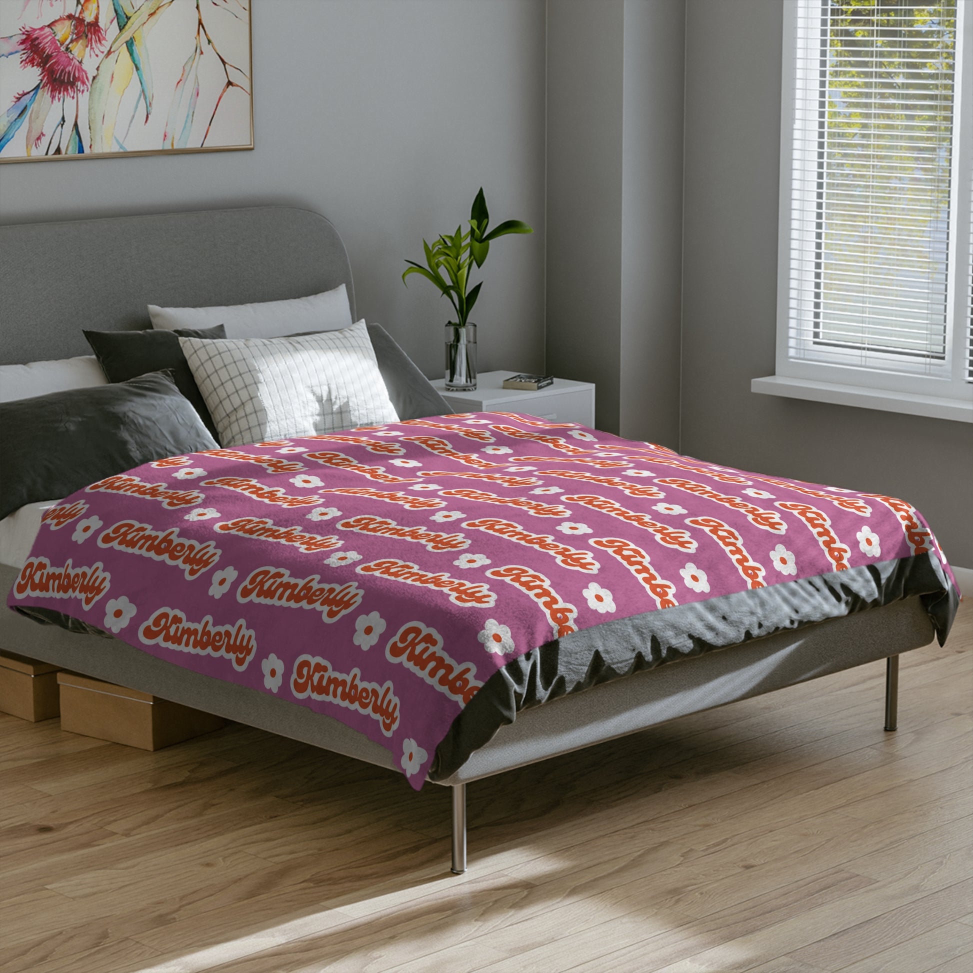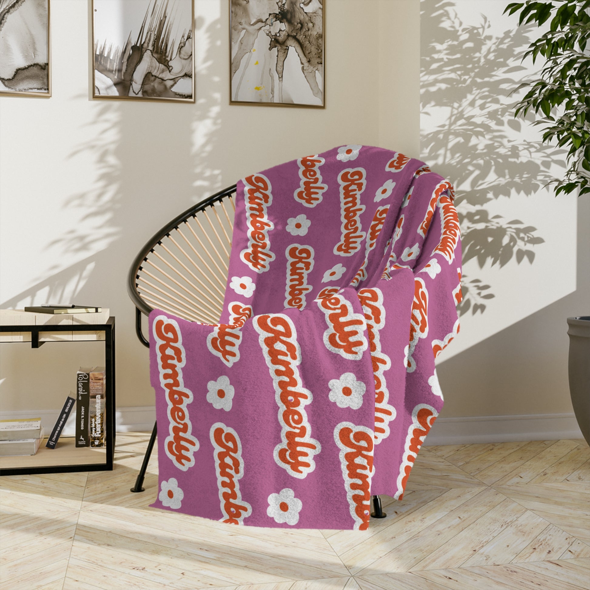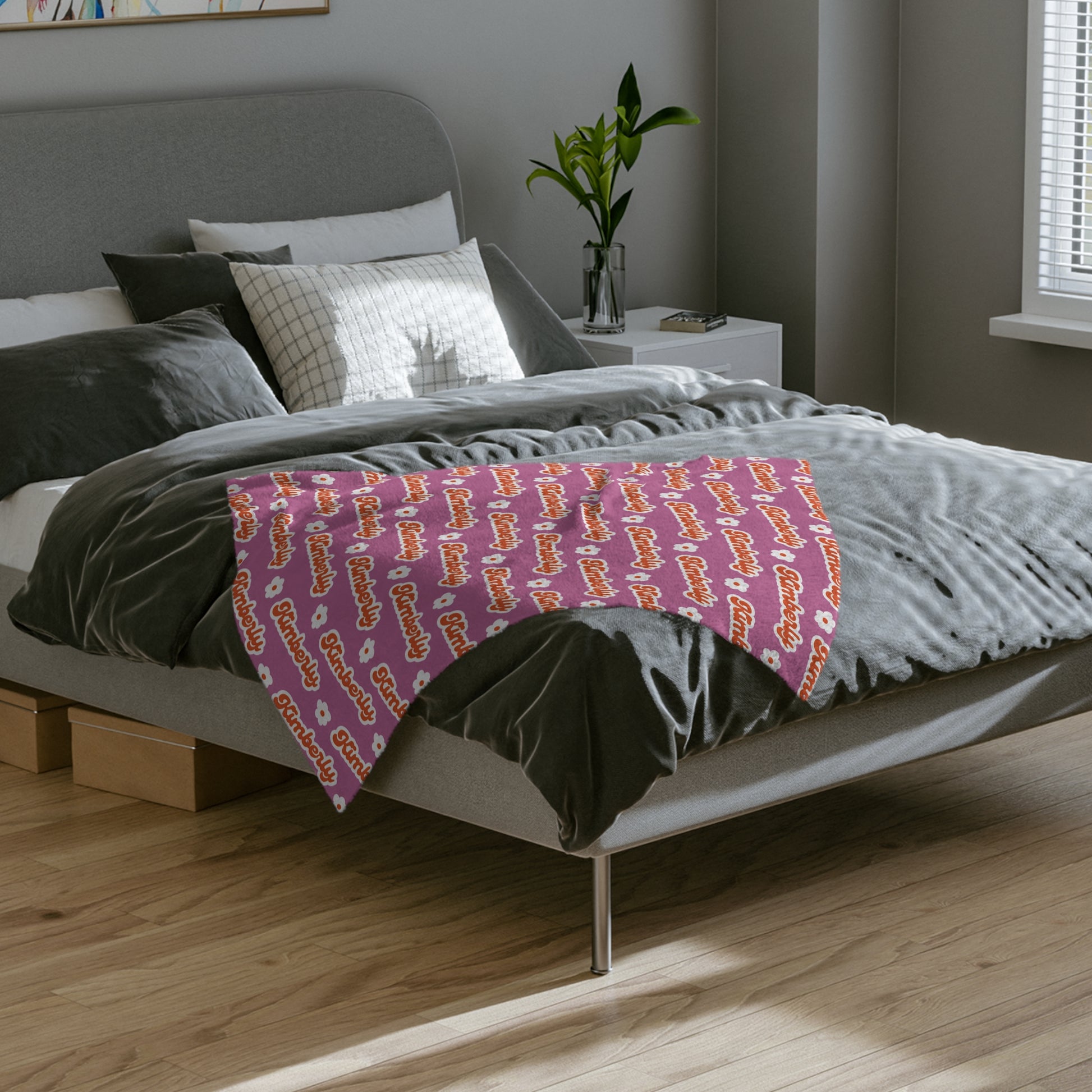 Personalized Name Velveteen Microfiber Blanket — Black Patterned Name Script Cozy Throw