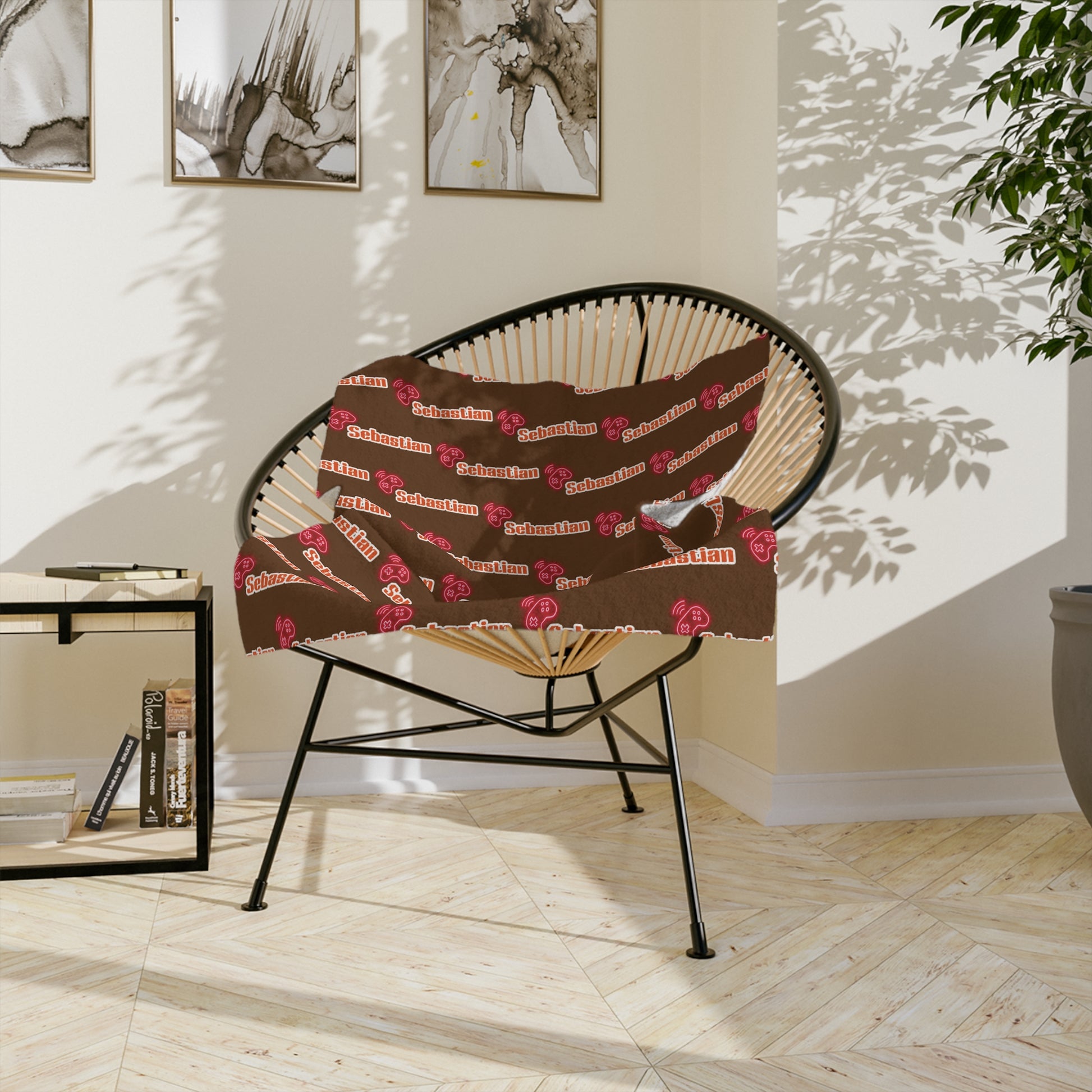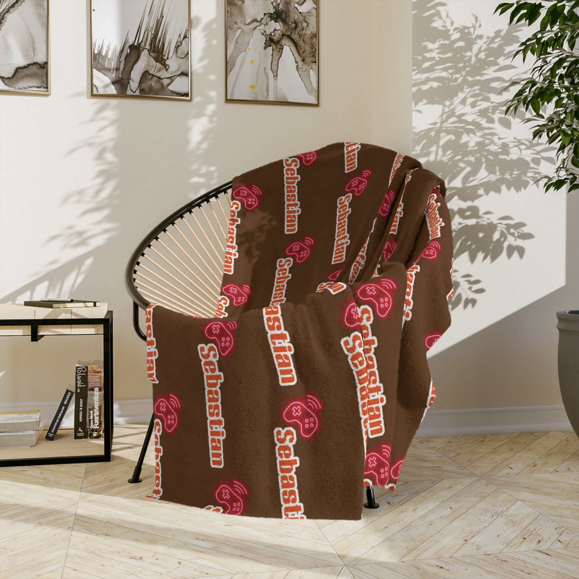Personalized Name Velveteen Microfiber Blanket — Brown Patterned Custom Name Script Cozy Throw