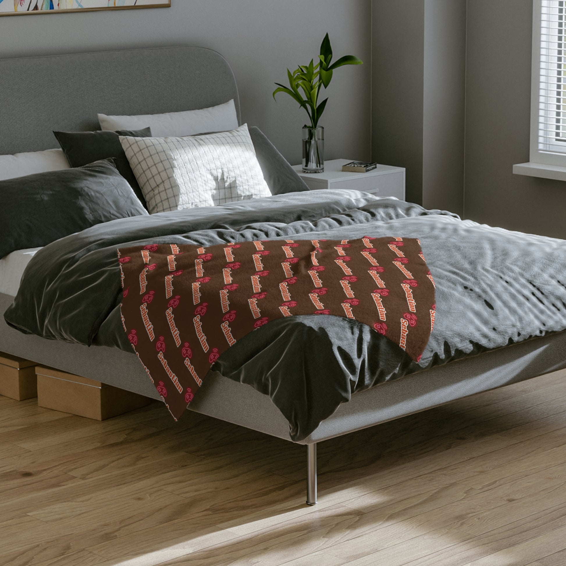 Personalized Name Velveteen Microfiber Blanket — Brown Patterned Name Script Cozy Throw- Gift for Him or Gift for Her.