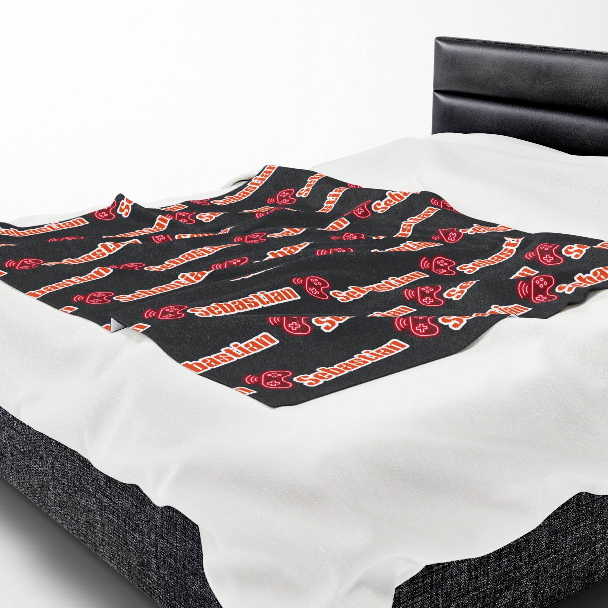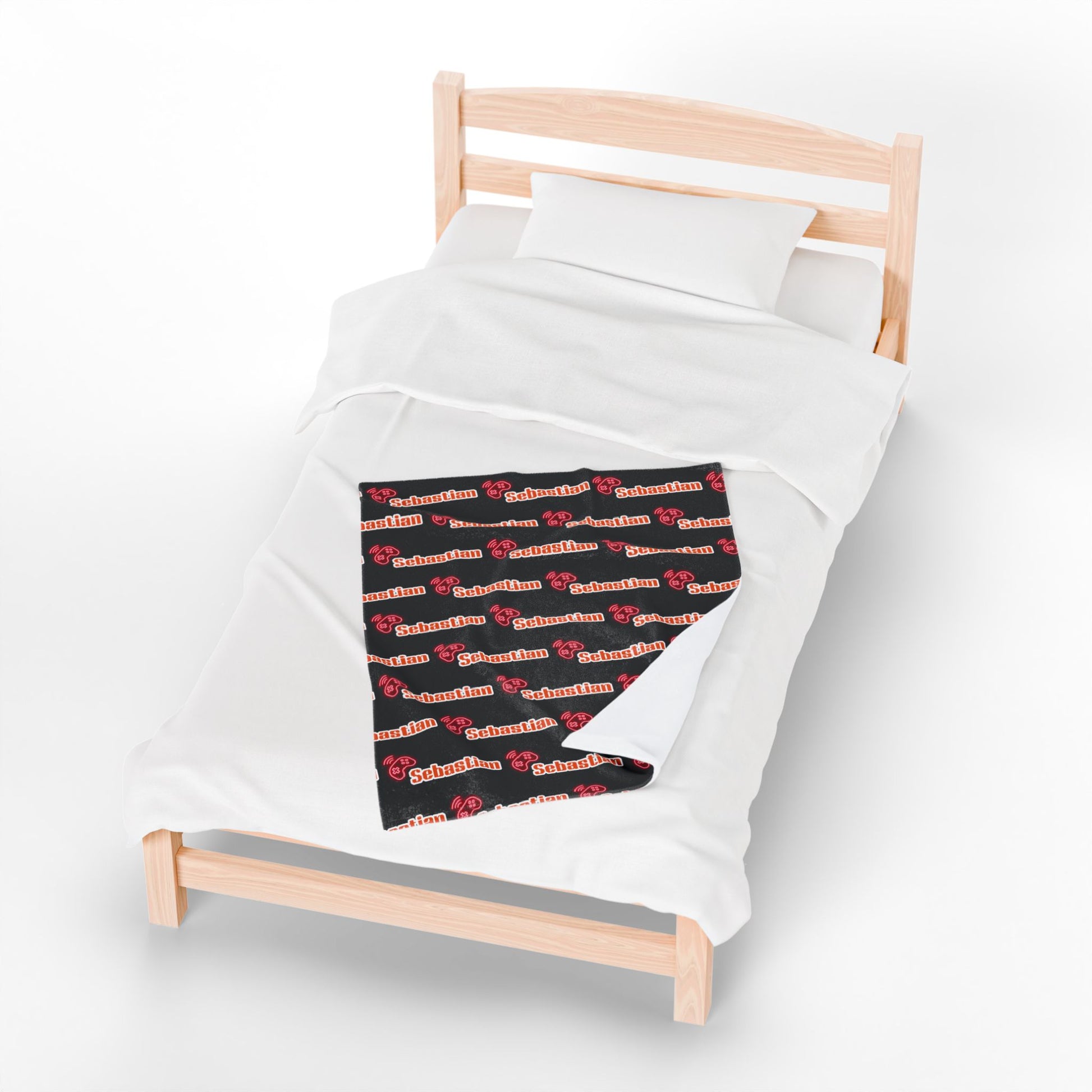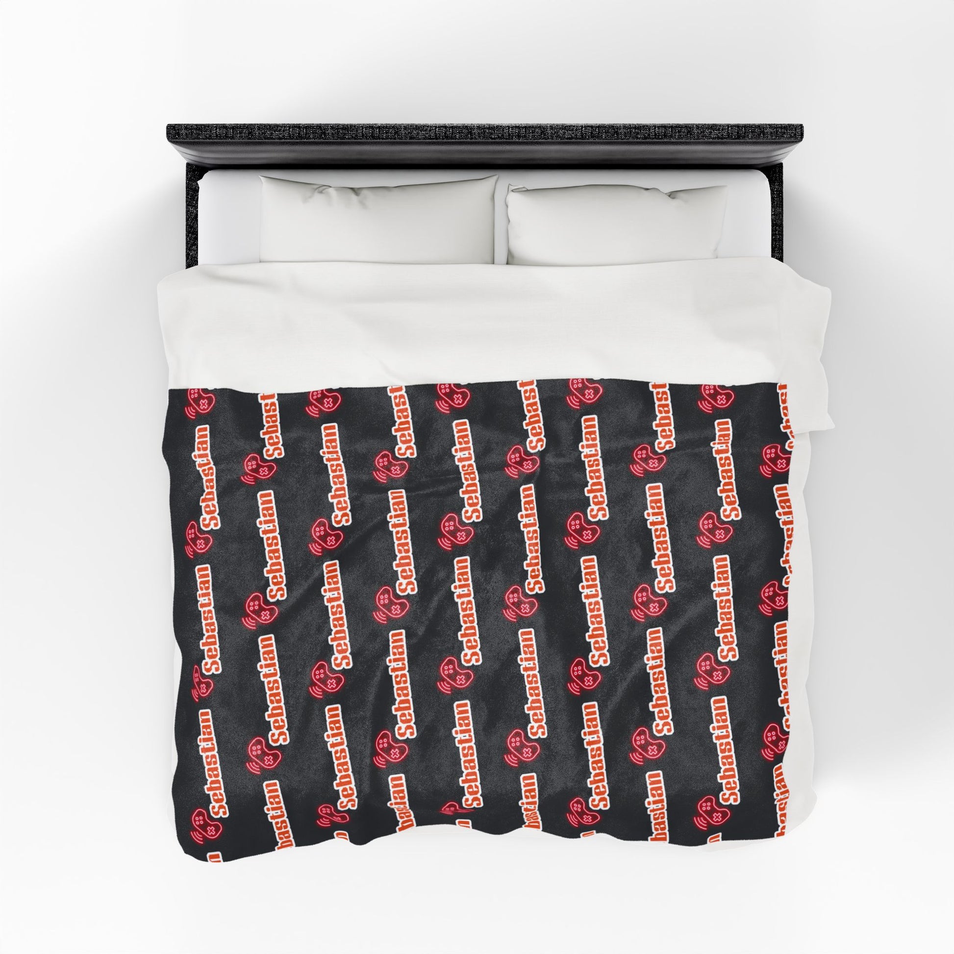 Personalized Name Velveteen Plush Blanket — Retro Script Pattern Cozy Throw, Gift for Her, Gift for Him