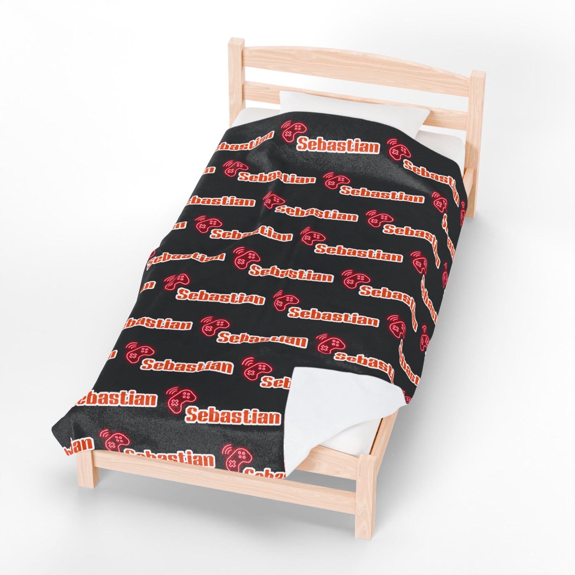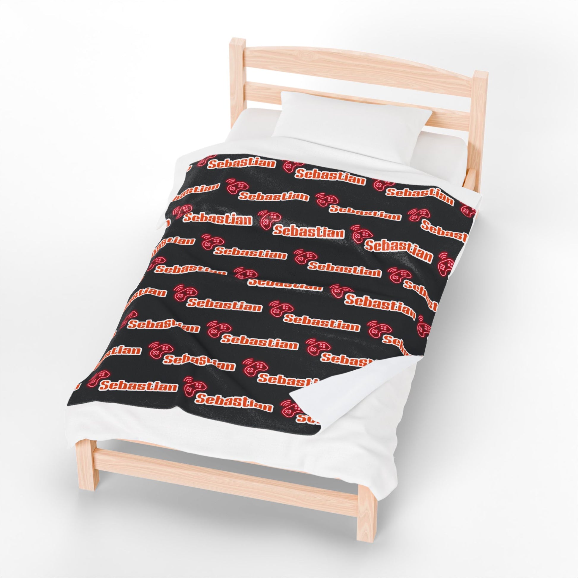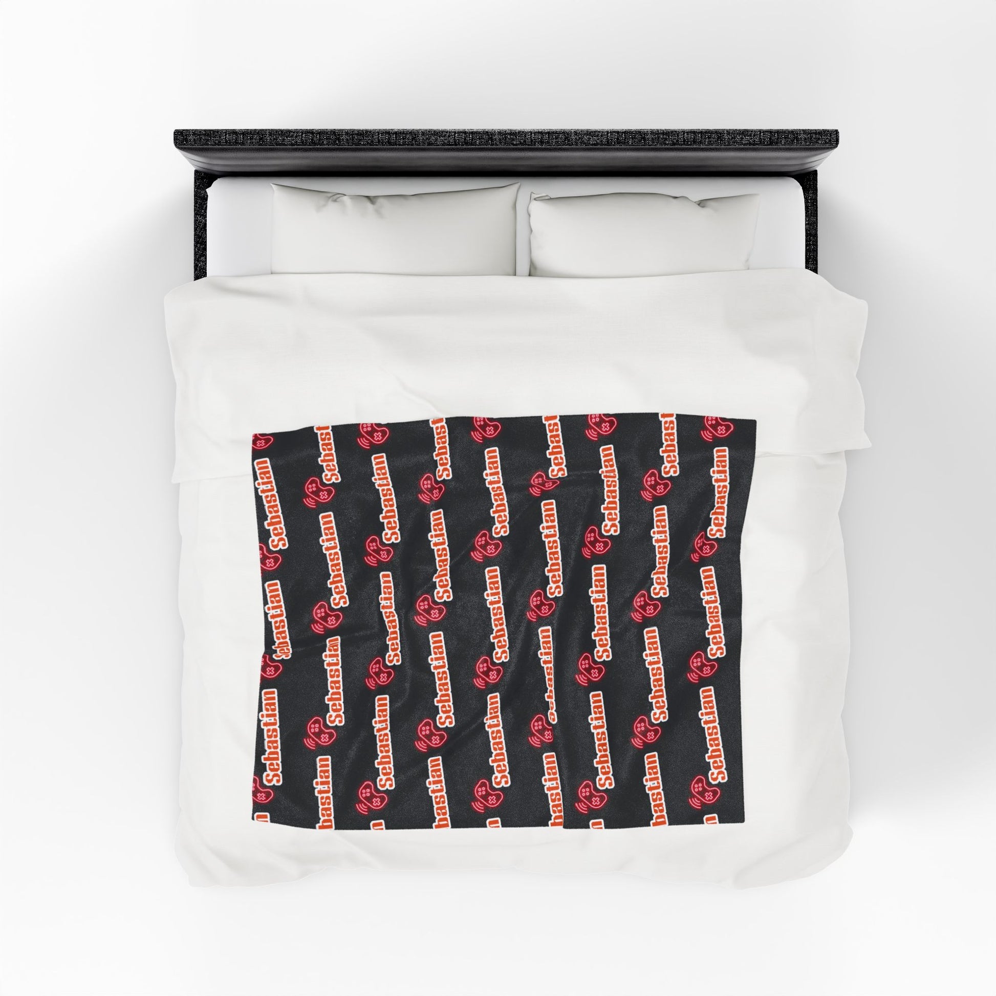 Personalized Name Velveteen Plush Blanket — Retro Script Pattern Cozy Throw, Gift for Her, Gift for Him