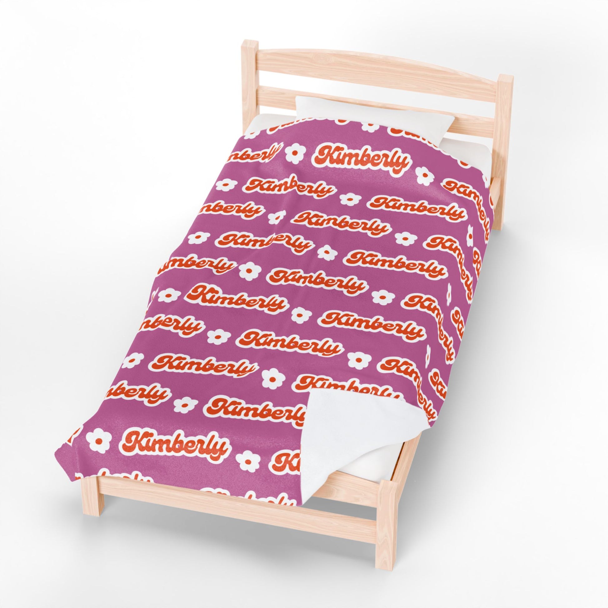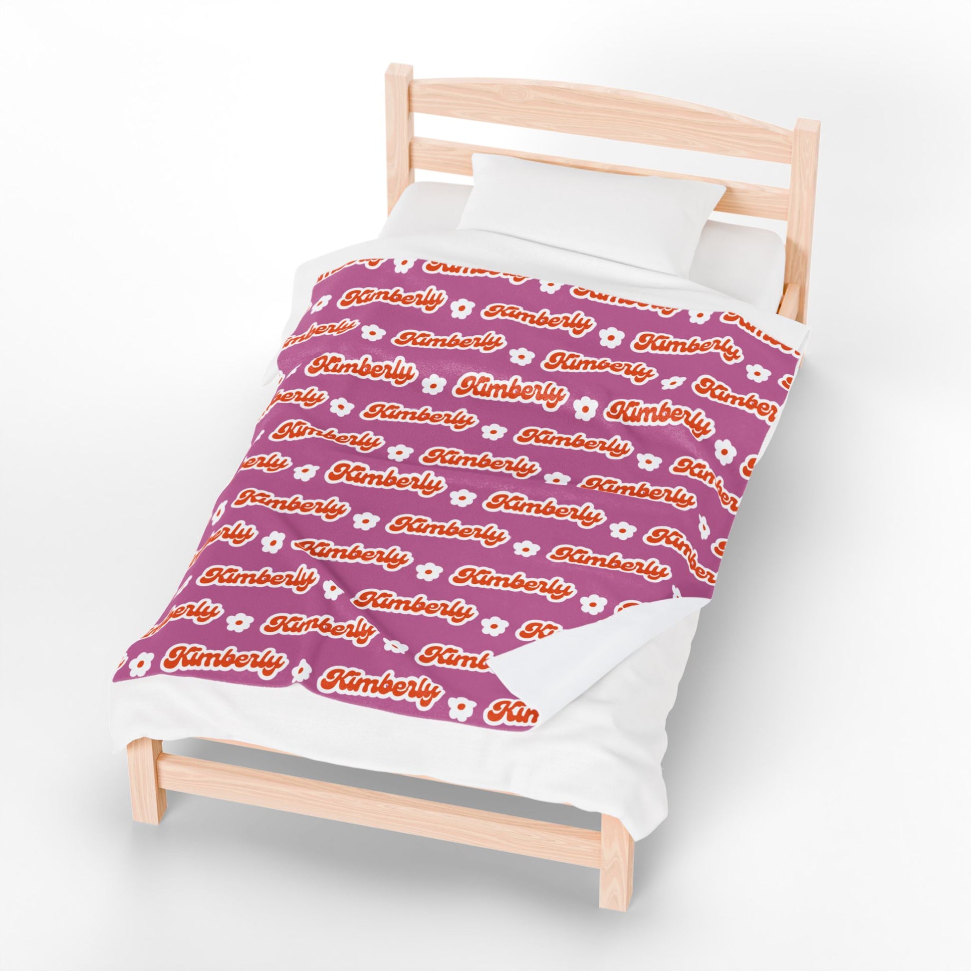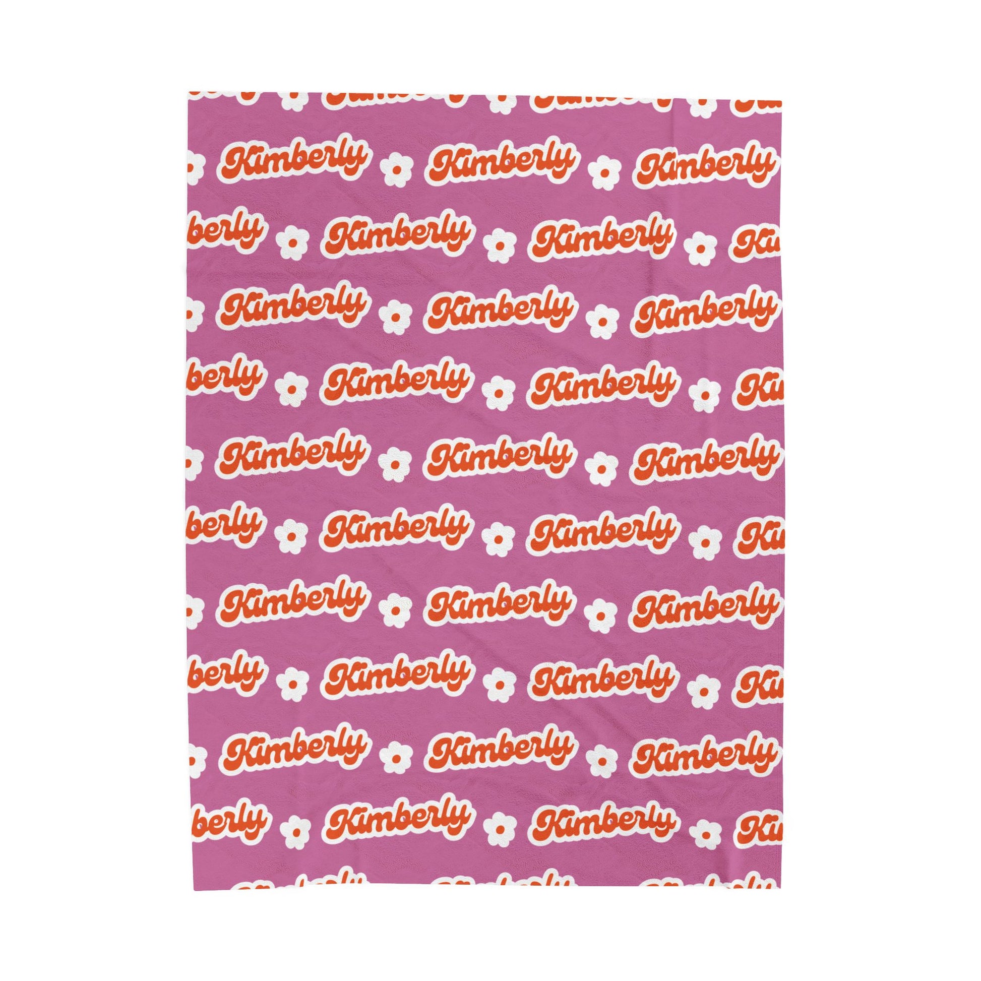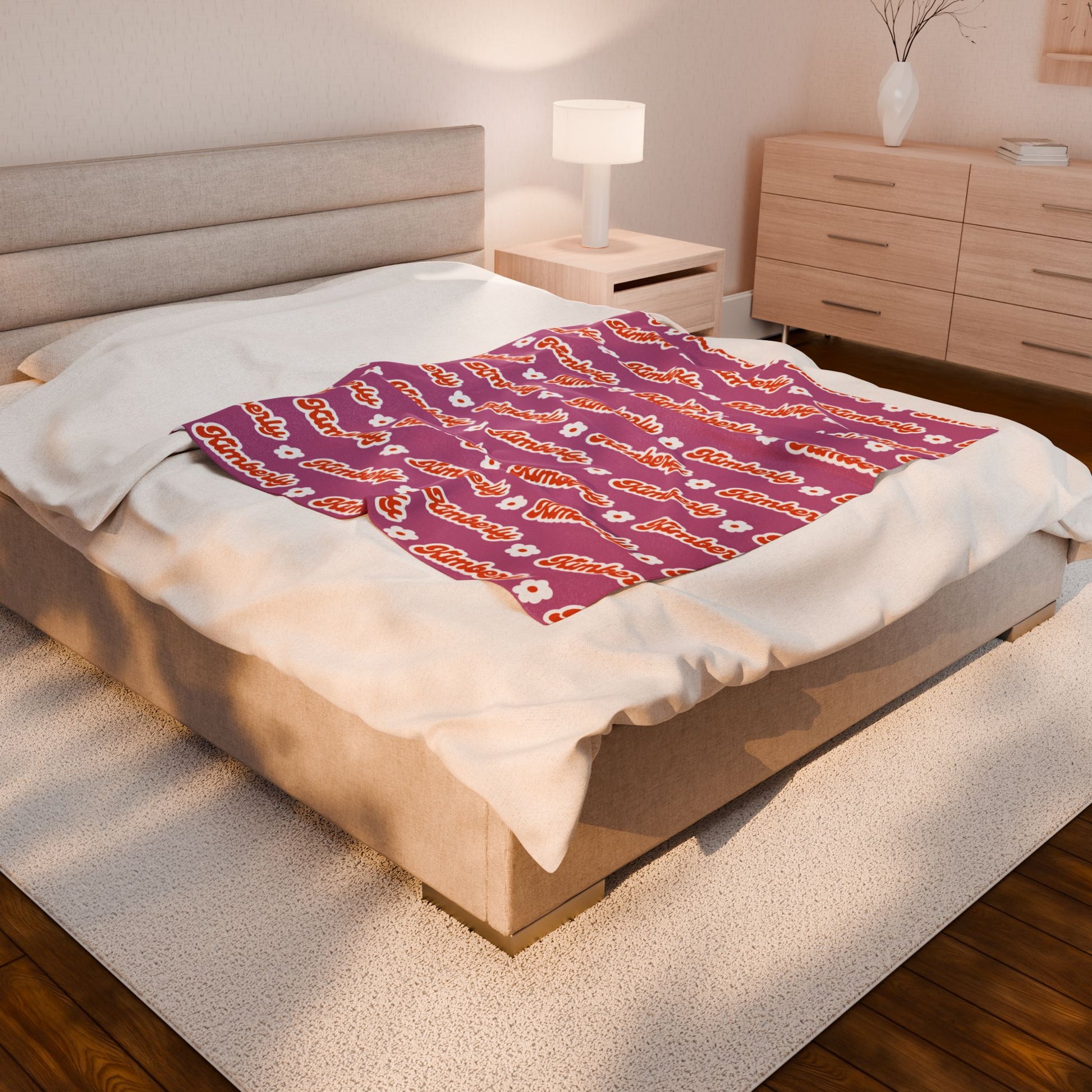 Personalized Name Velveteen Plush Blanket — Retro Script Pattern Cozy Throw, Gift for Her, Gift for Him