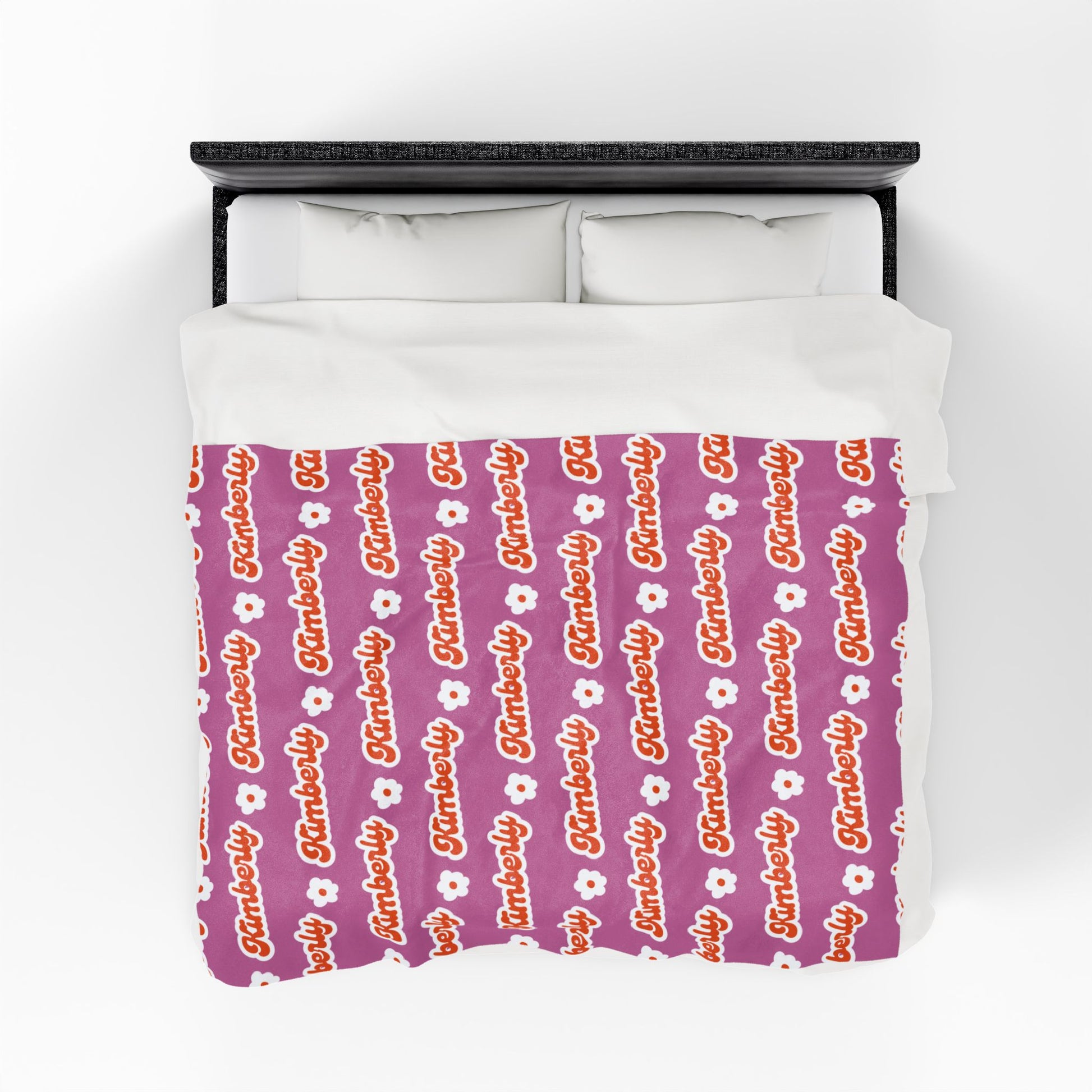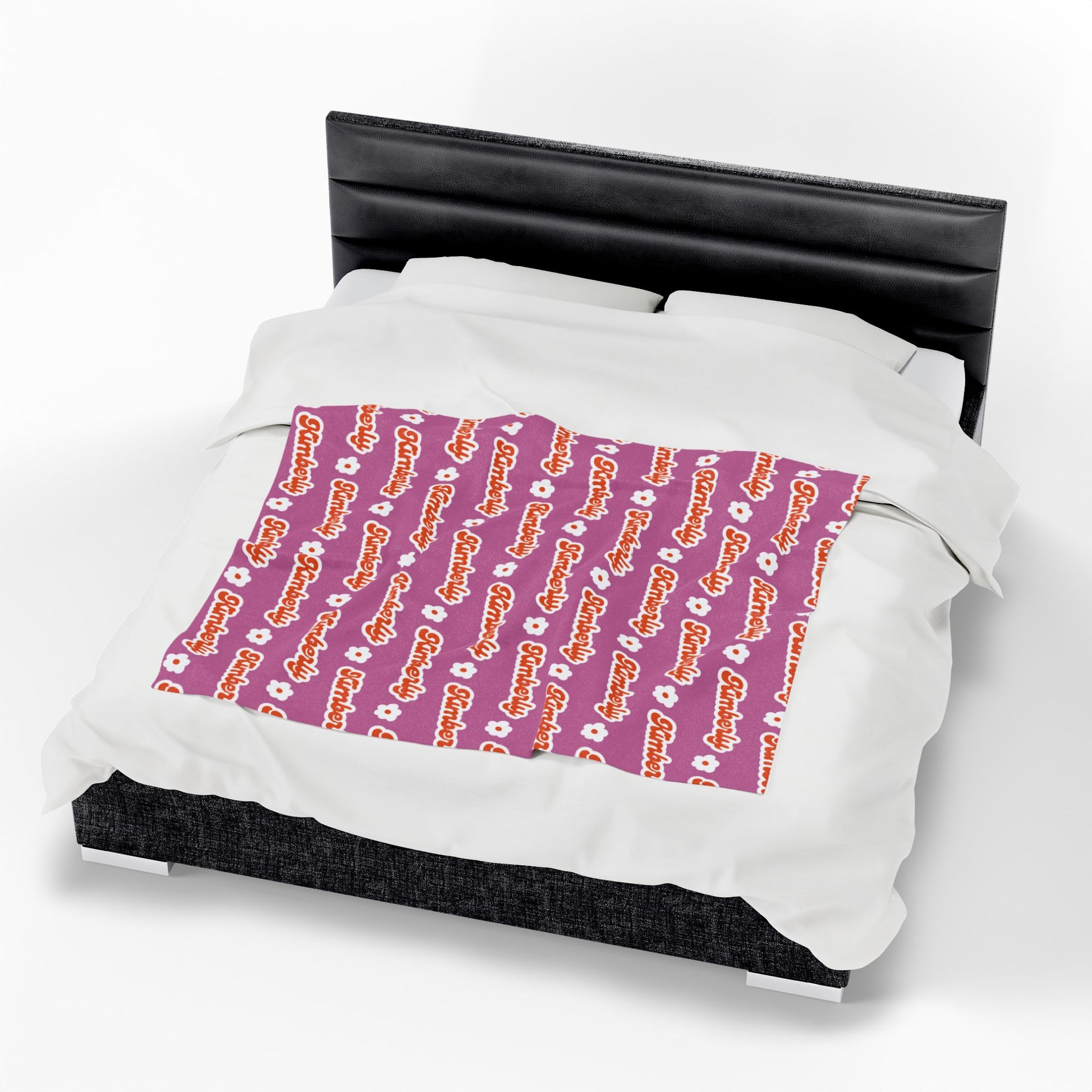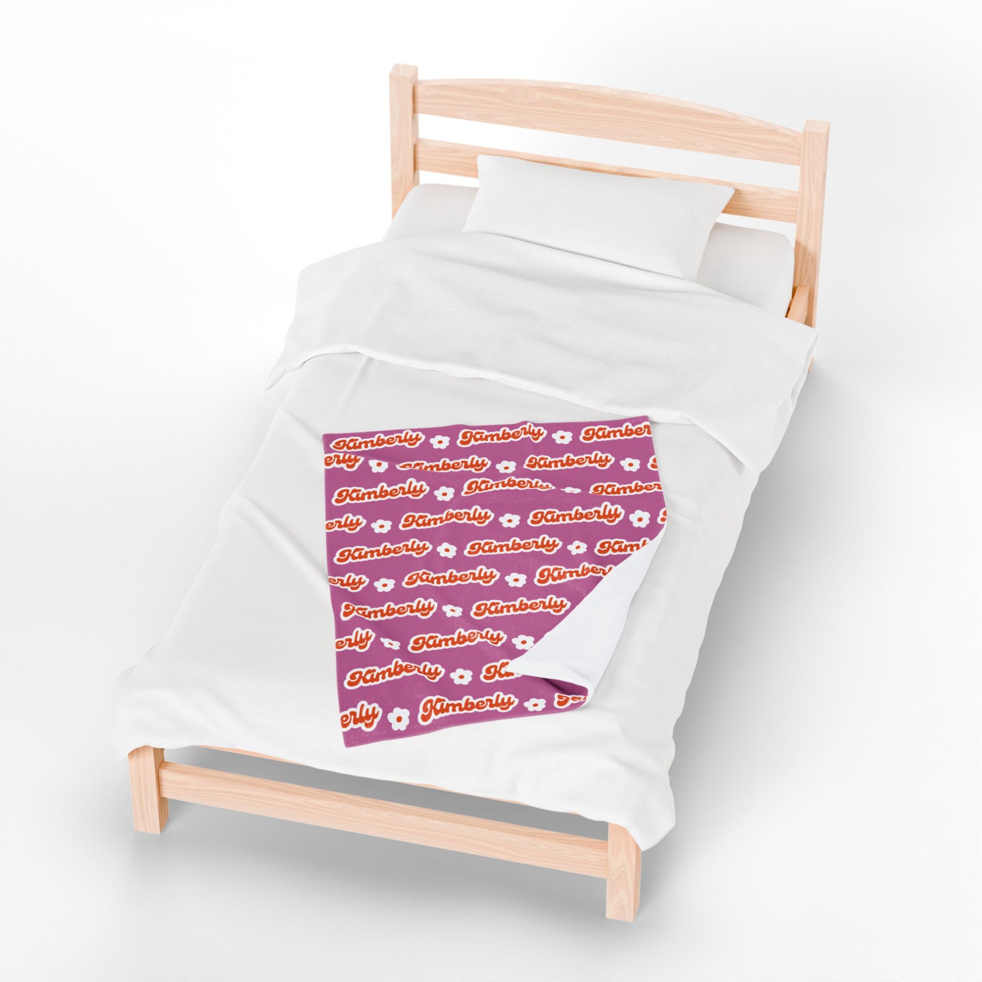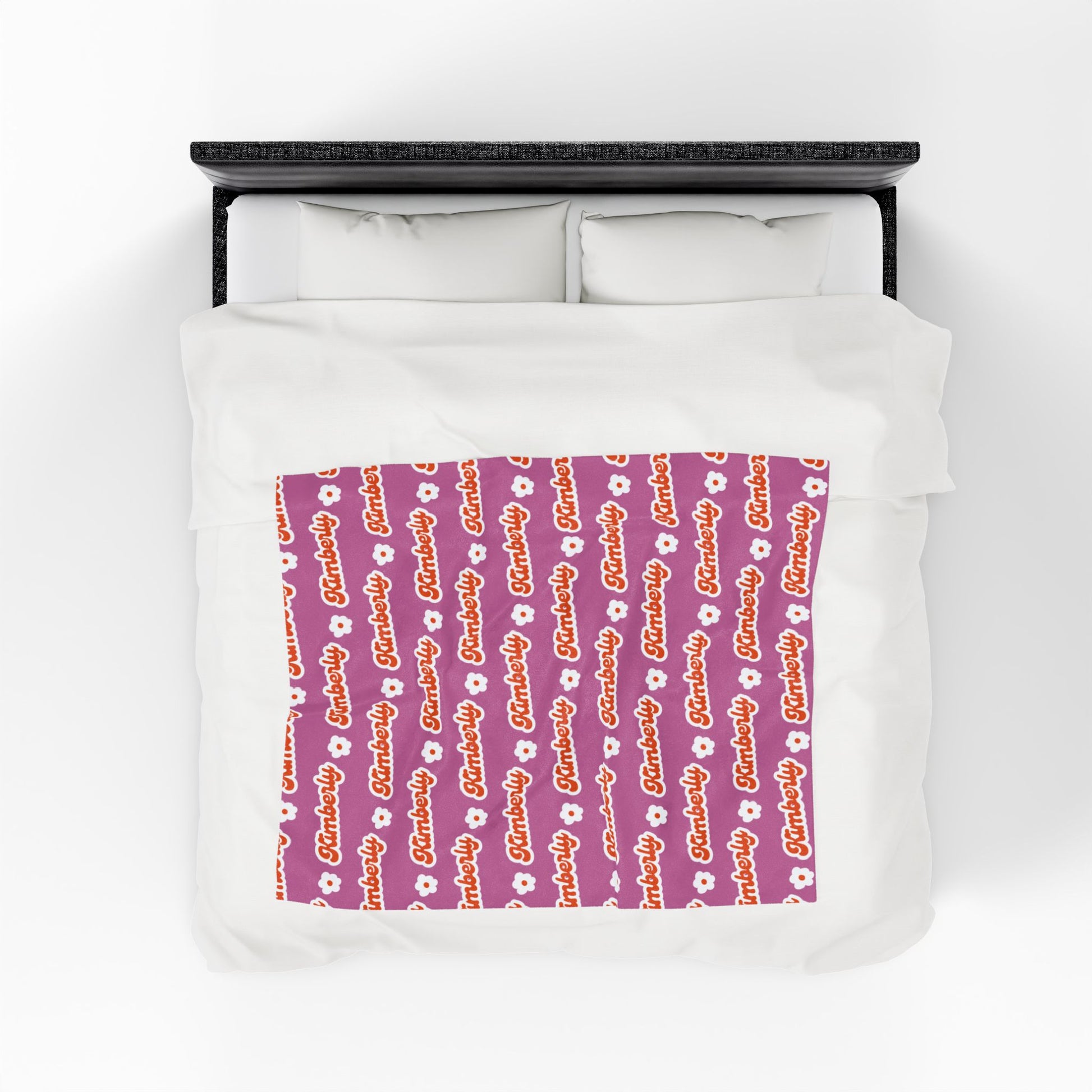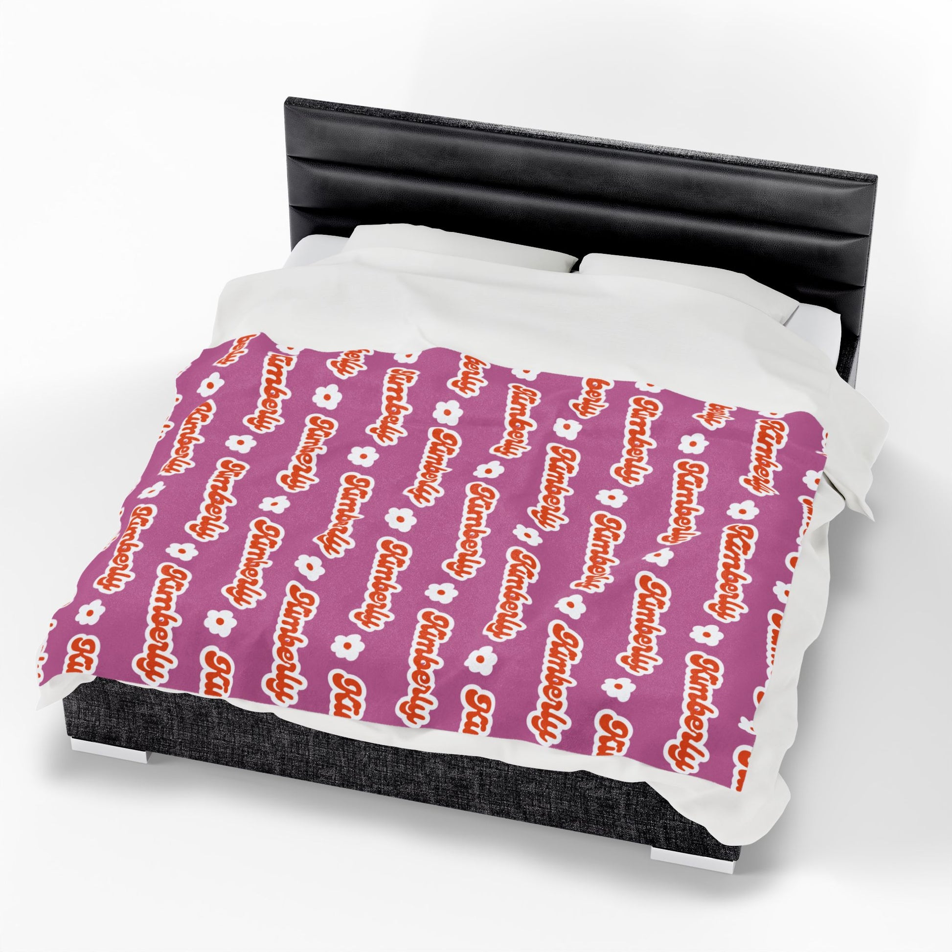 Personalized Name Velveteen Plush Blanket — Retro Script Pattern Cozy Throw, Gift for Her, Gift for Him
