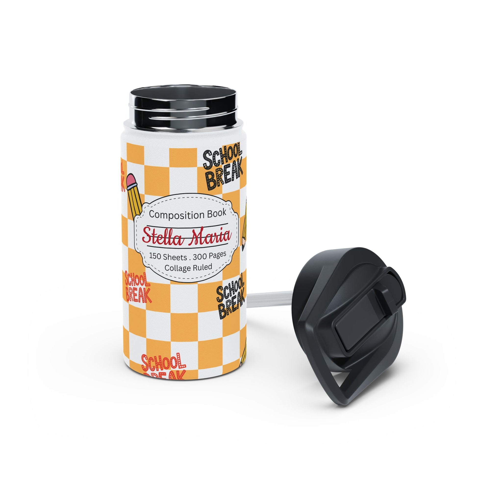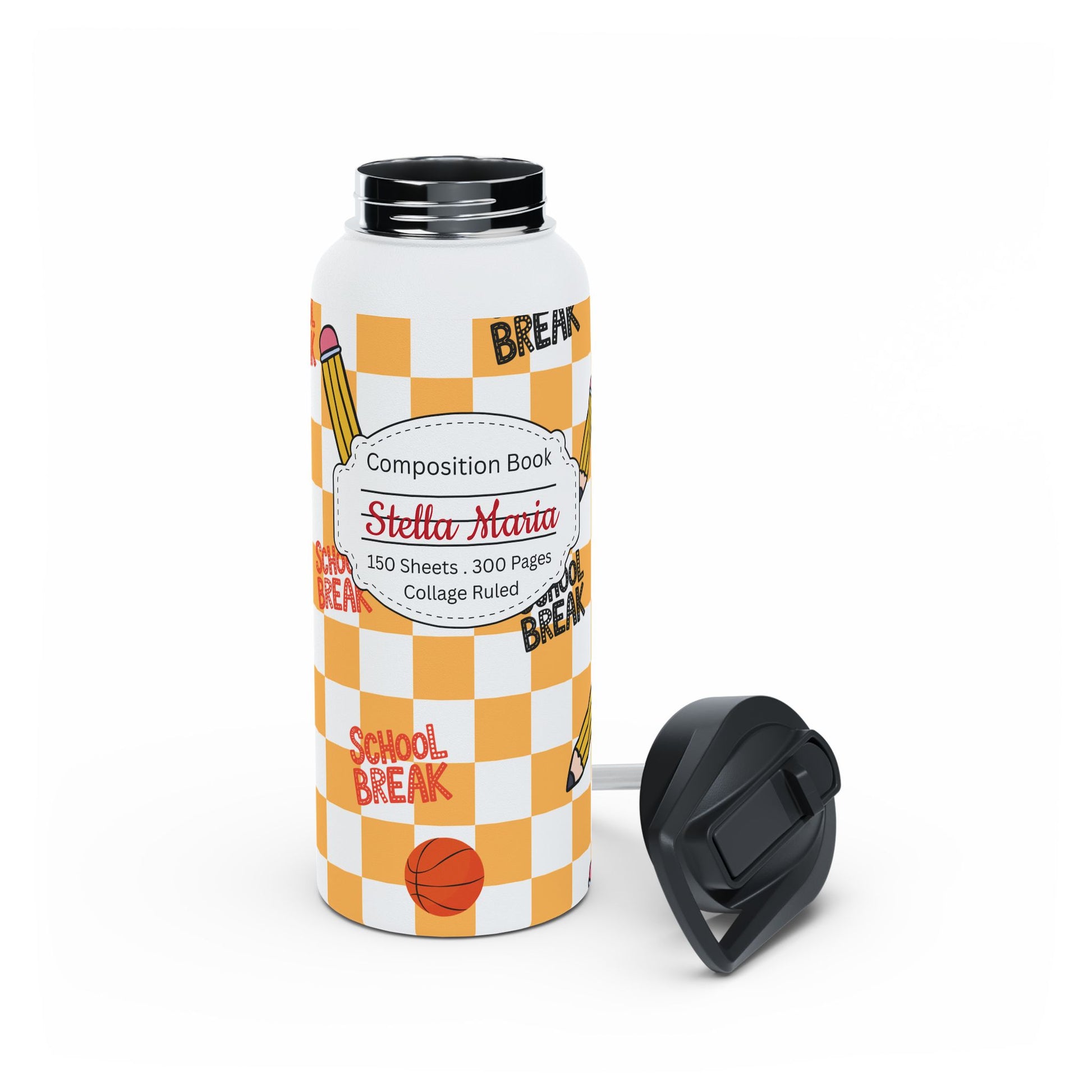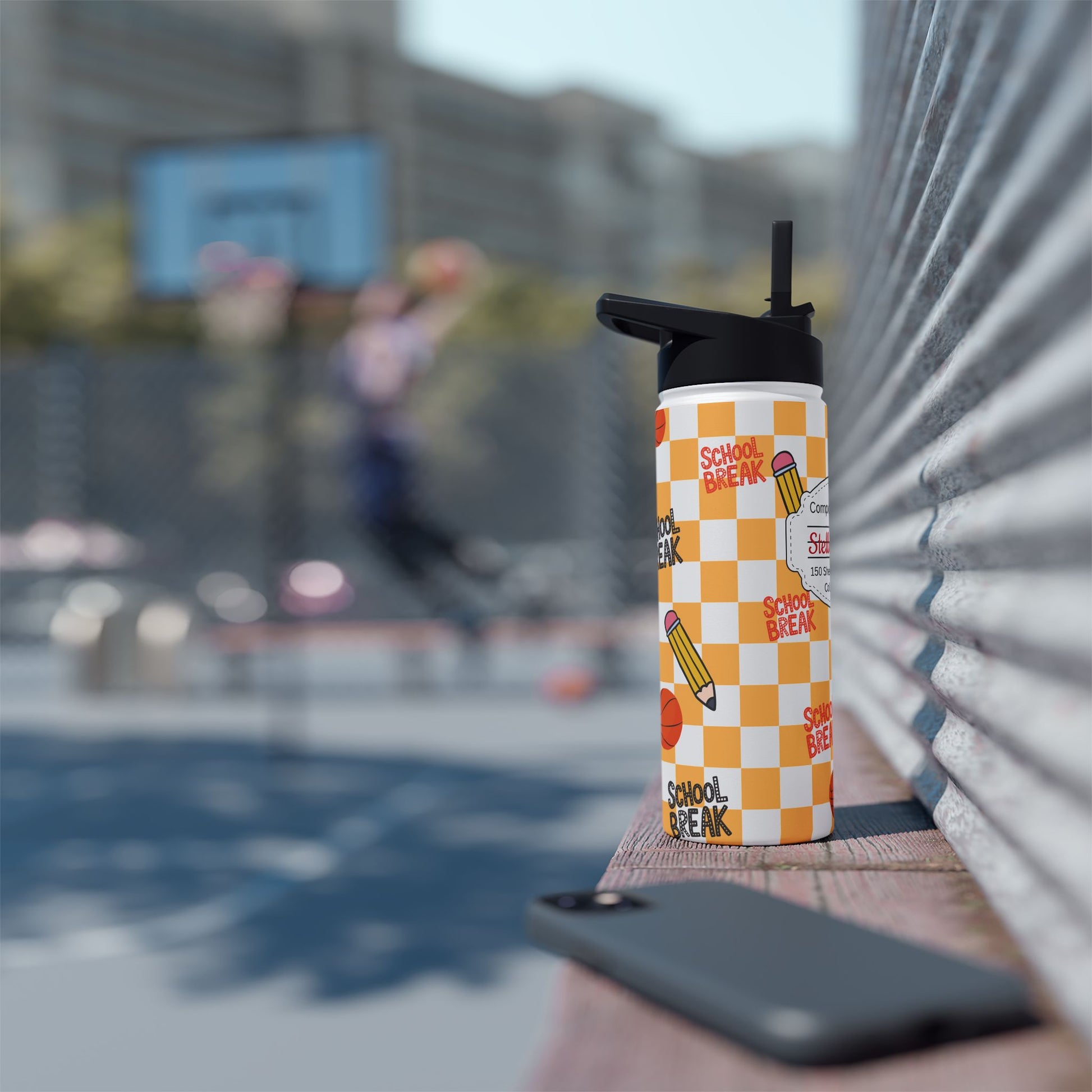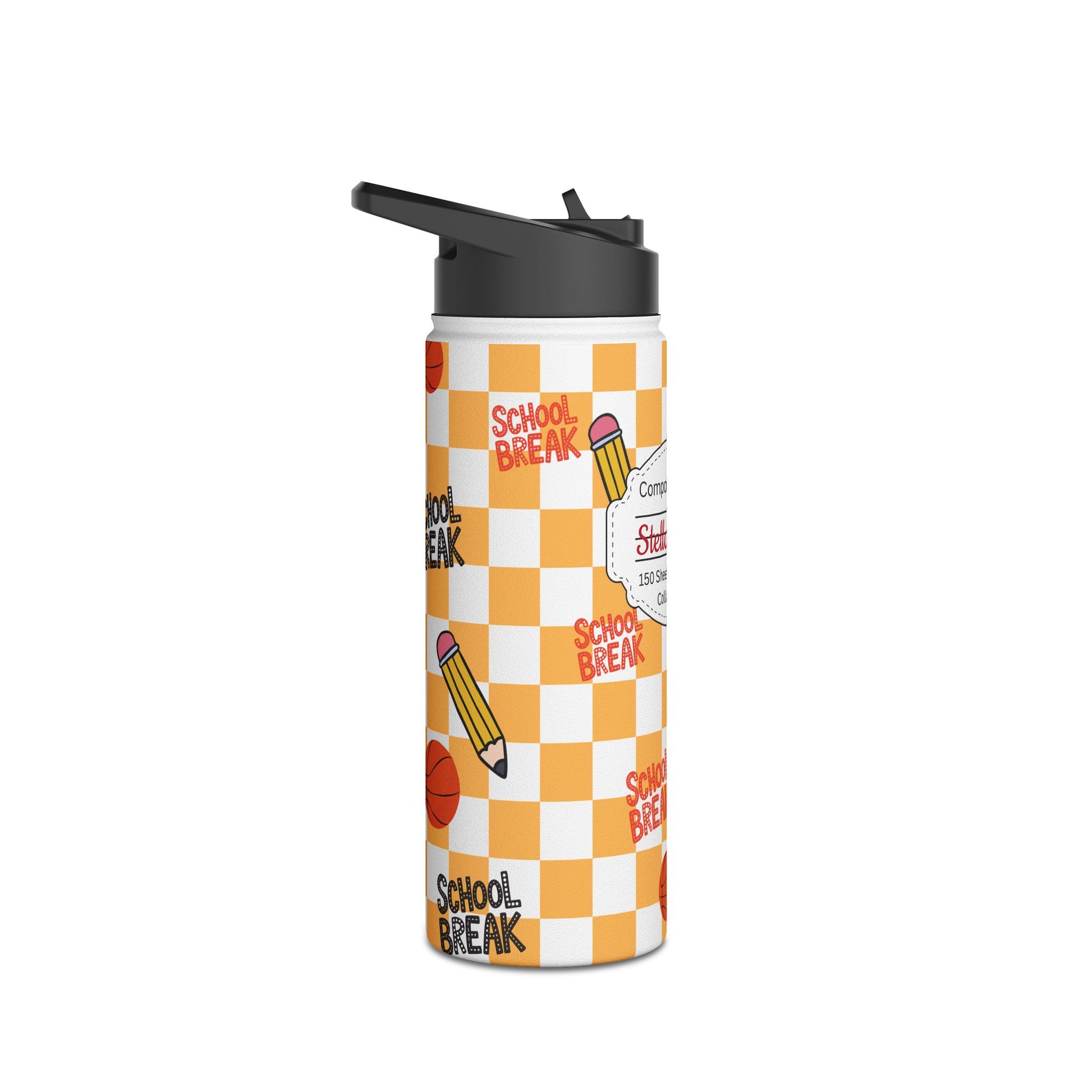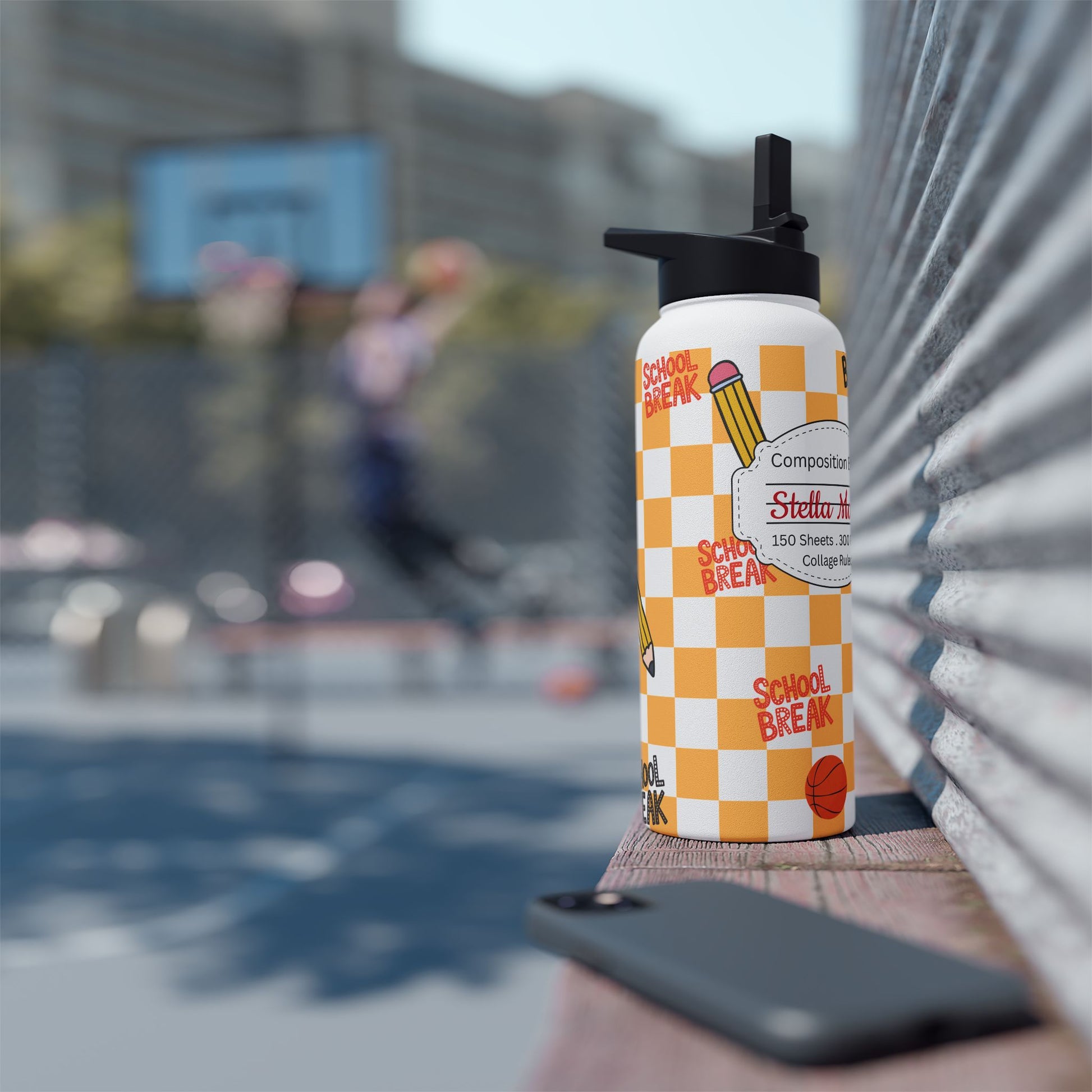Personalized Orange Chalkboard Chic Inspired Stainless Steel Water Bottle for Kids, School Supplies, Eco-Friendly Drinkware, Back to School, Teacher Gifts