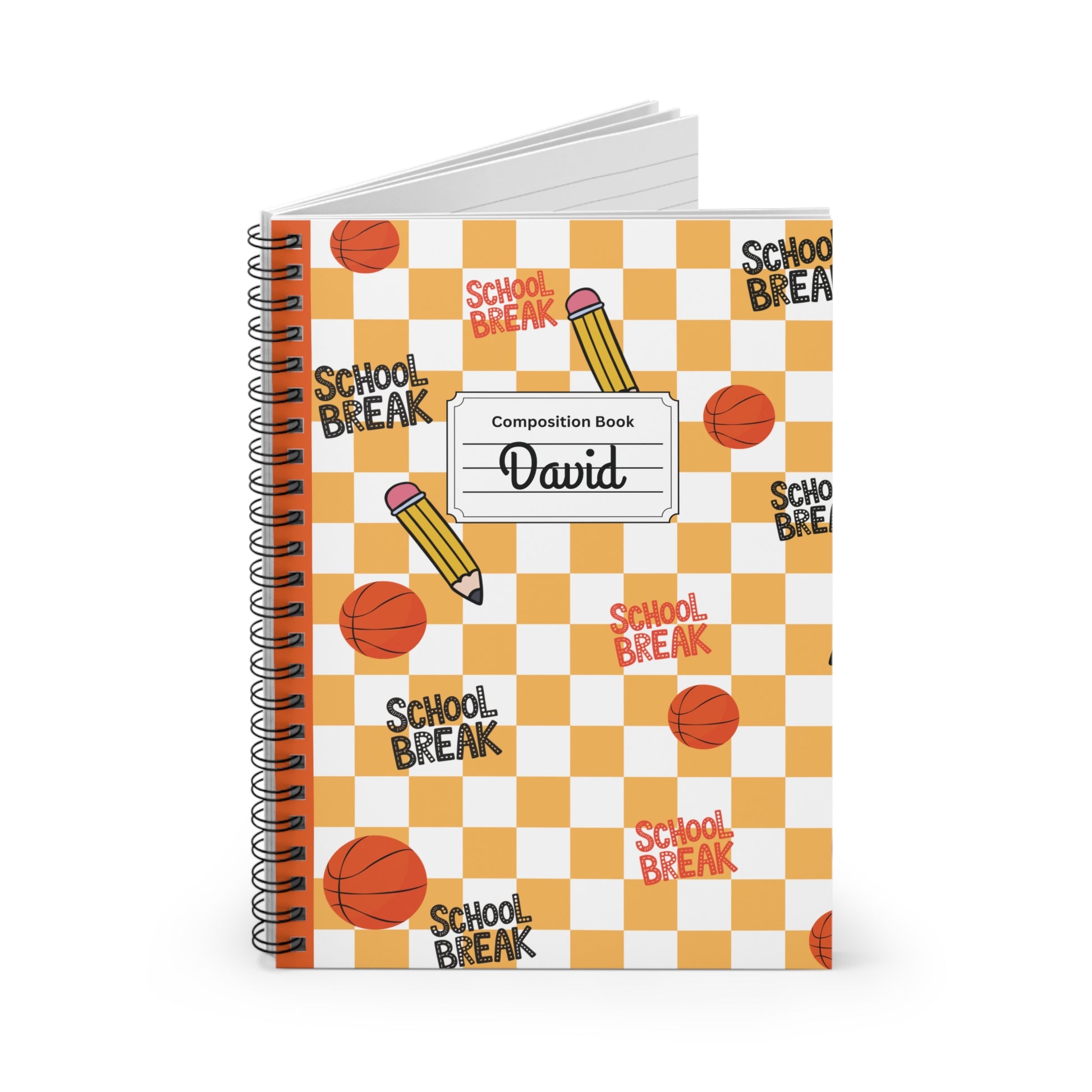 Personalized Orange Schoolyard Chic Composition Book Inspired Playful Spiral Notebook - Perfect for School, Journaling, Kids, Teachers, Back to School Gifts