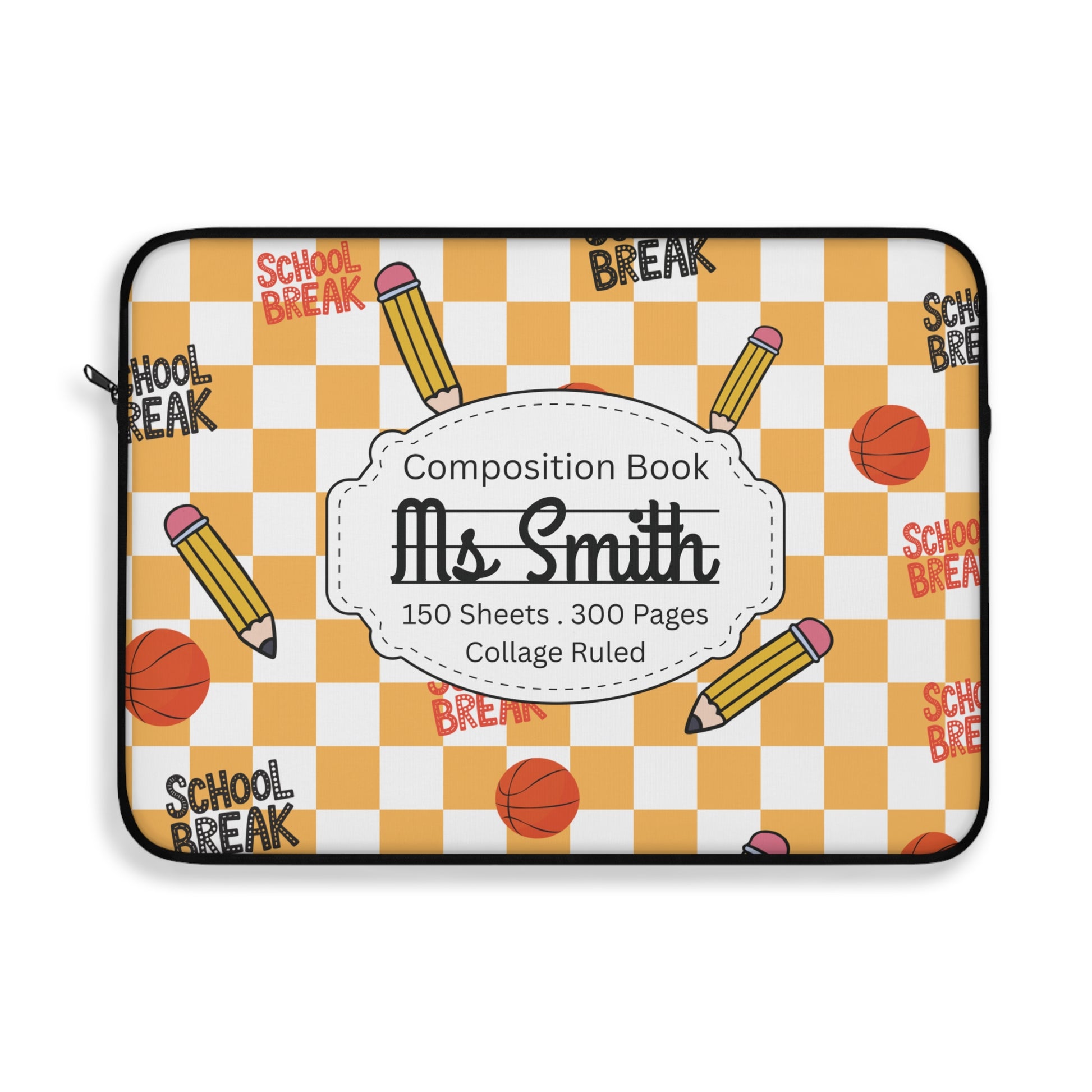 Personalized Orange Schoolyard Chic Laptop Sleeve with Composition Book Inspired Design, Educational Gift for Teachers, Classroom Organization, Back to School, Unique Teacher Accessory