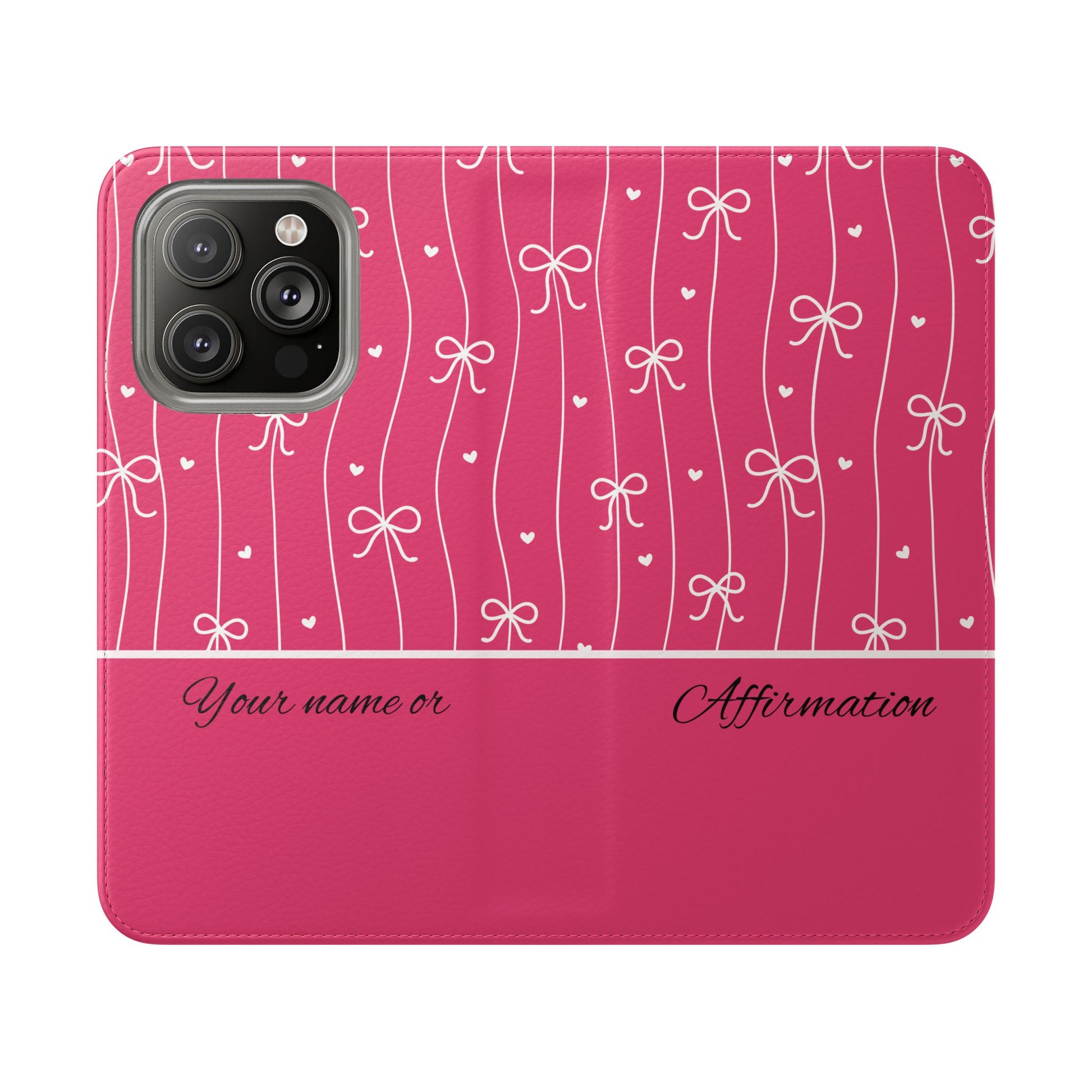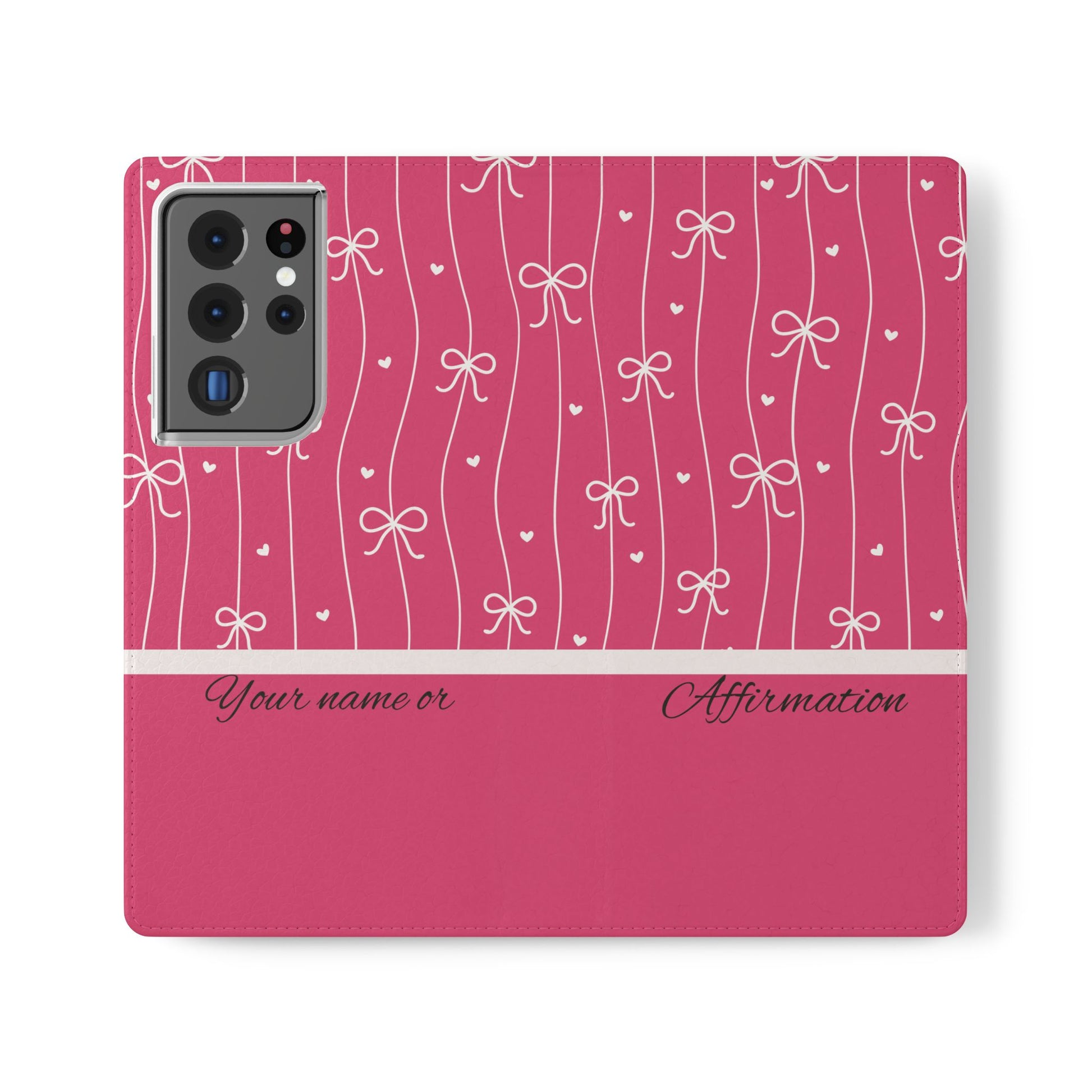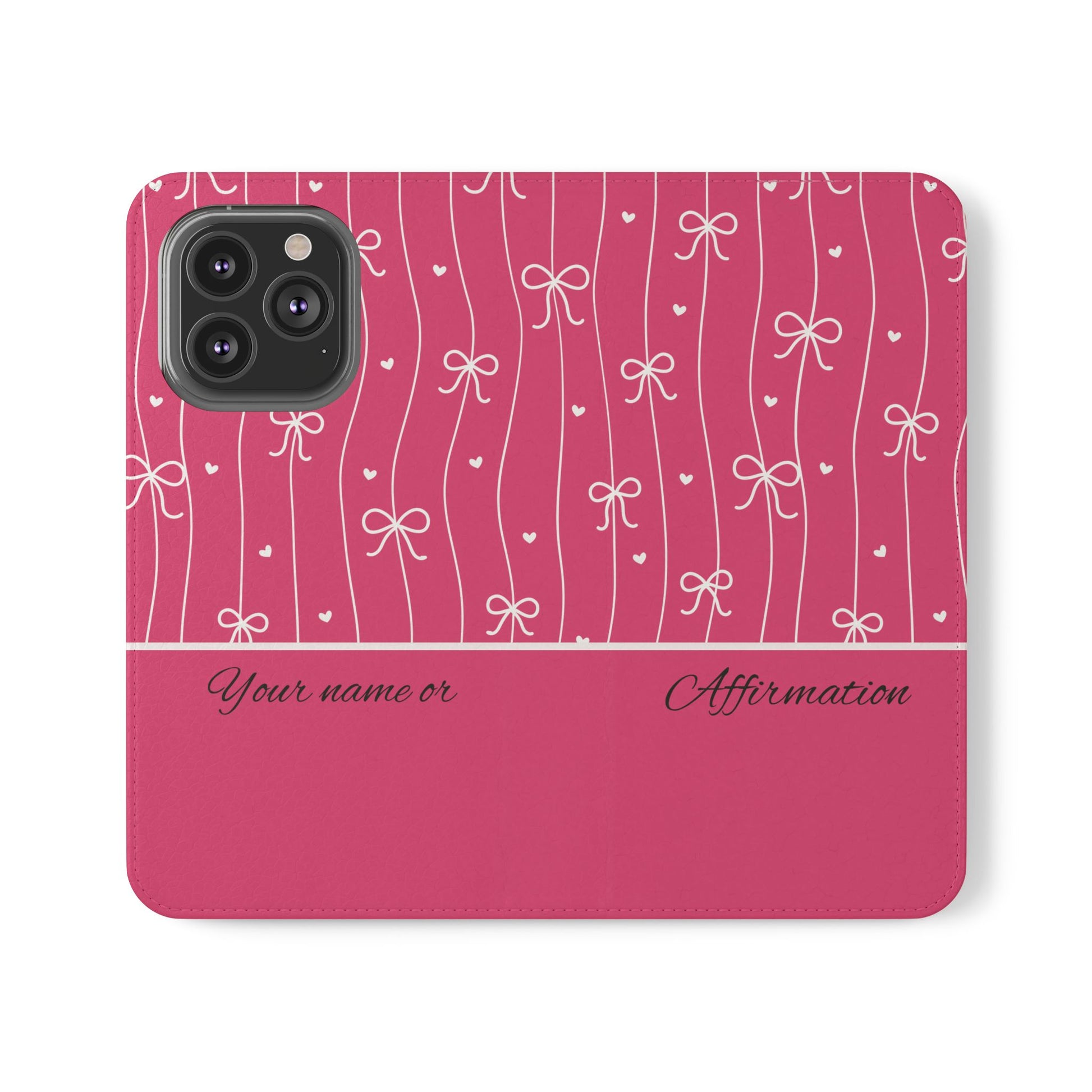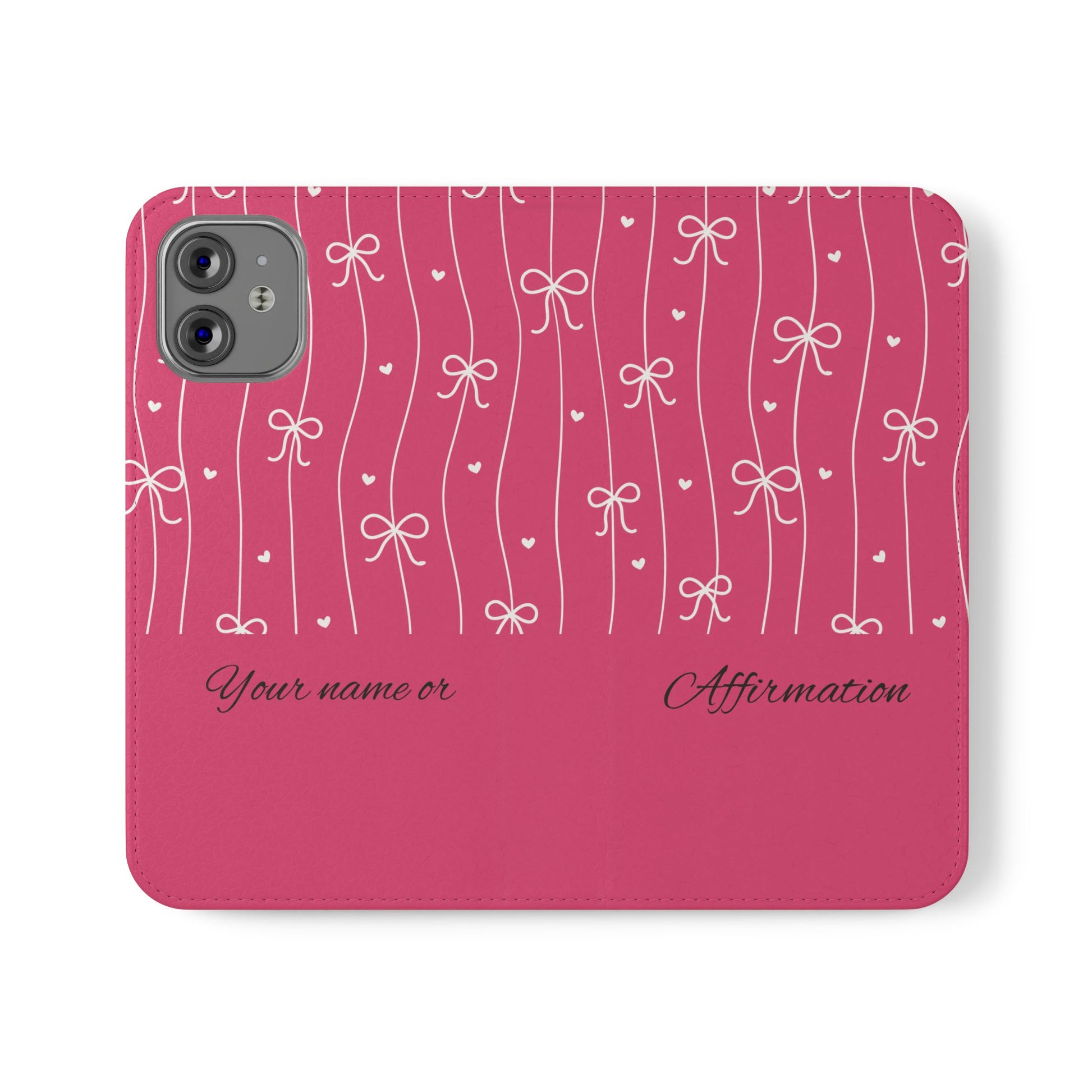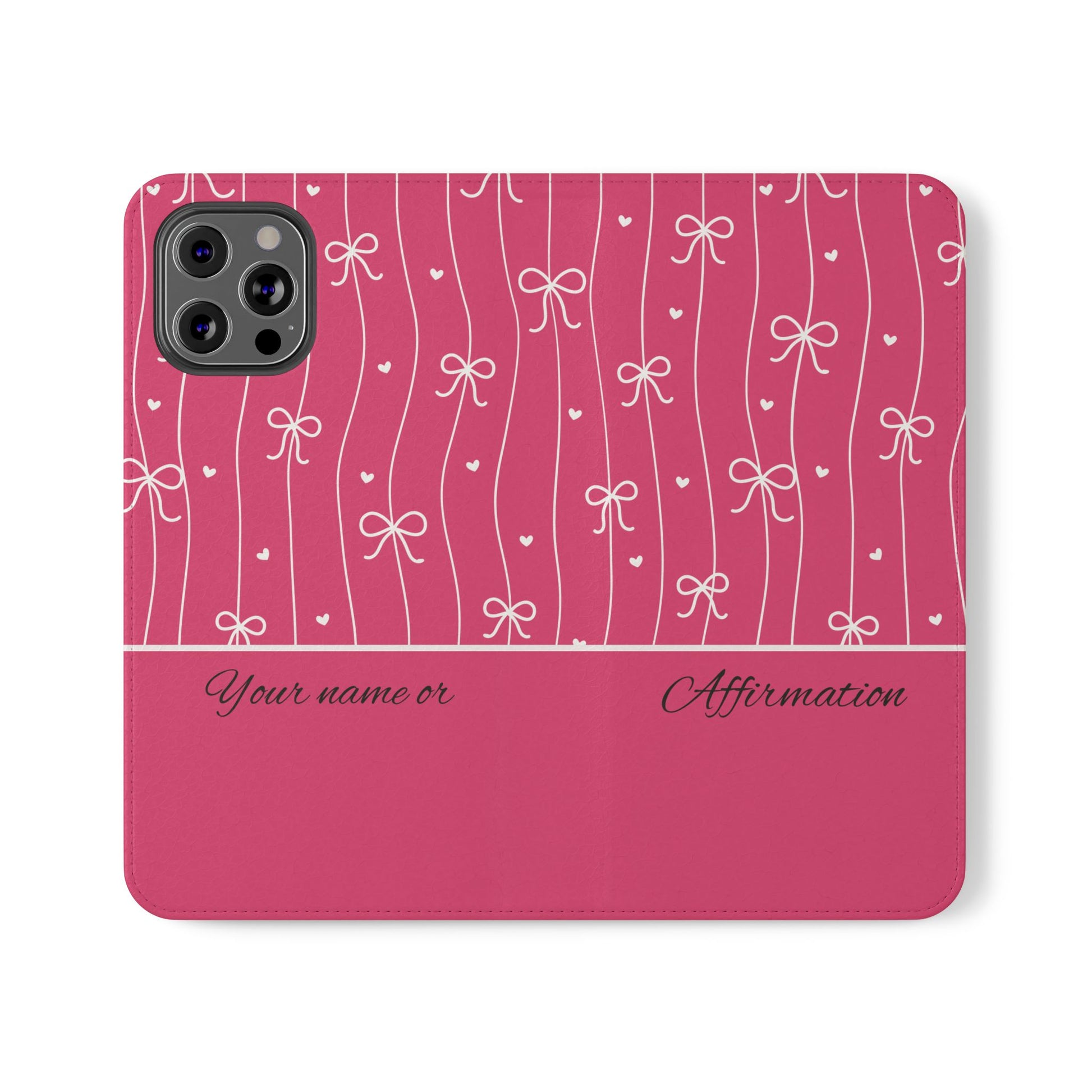 Personalized Pink Bow Coquette Flip iPhone and Samsumg Case — Custom Name or Affirmation Wallet Cover