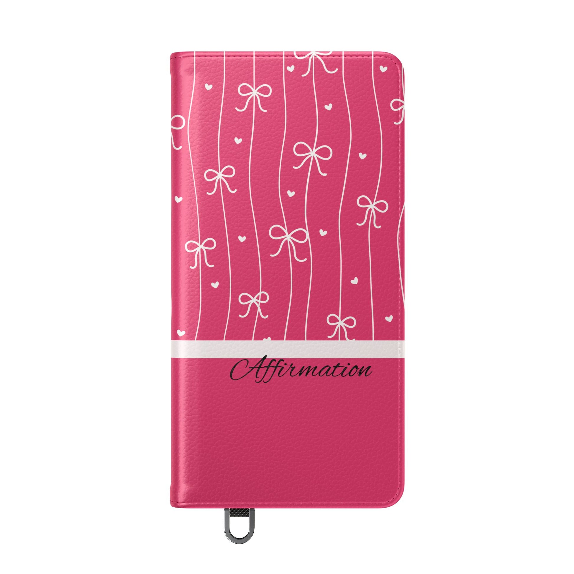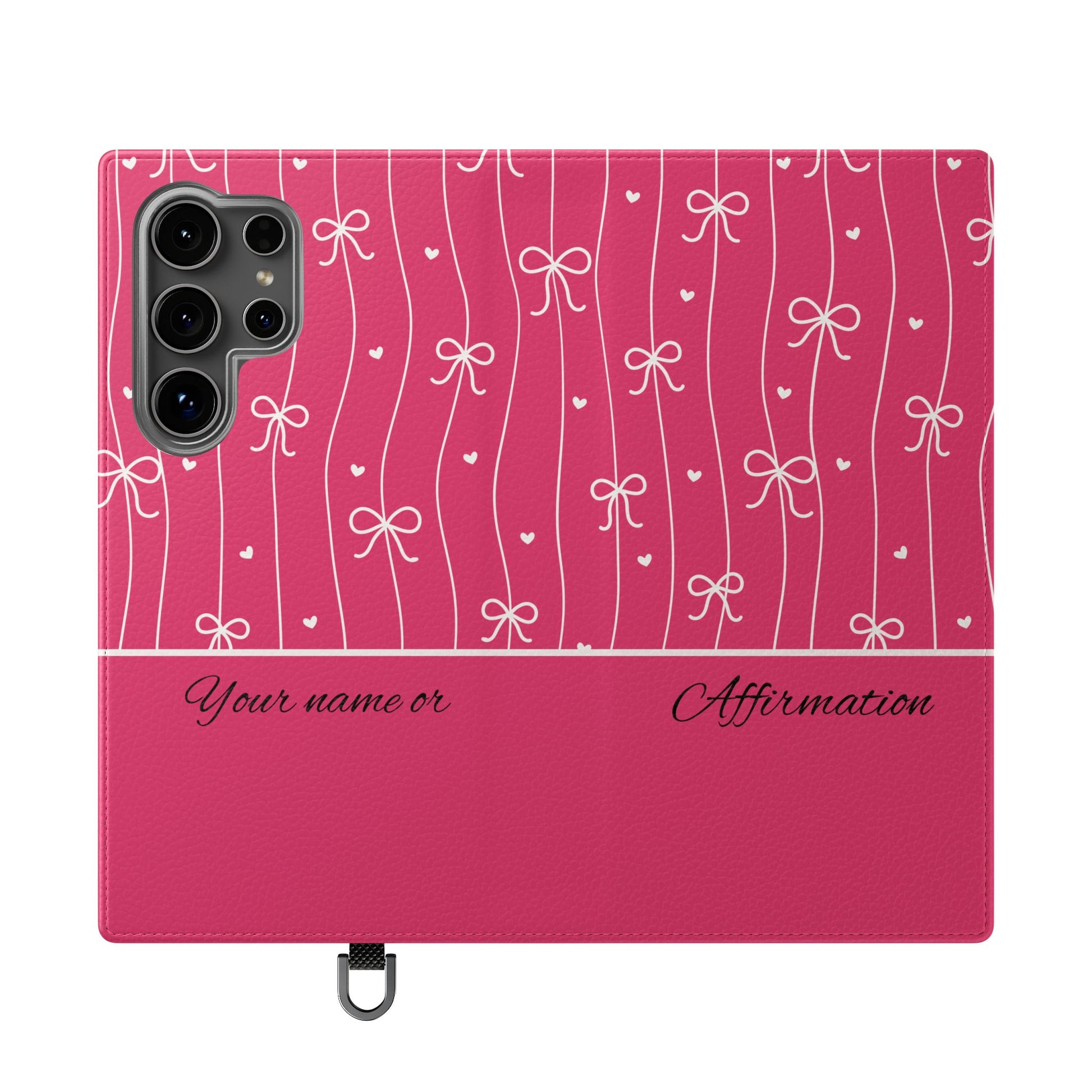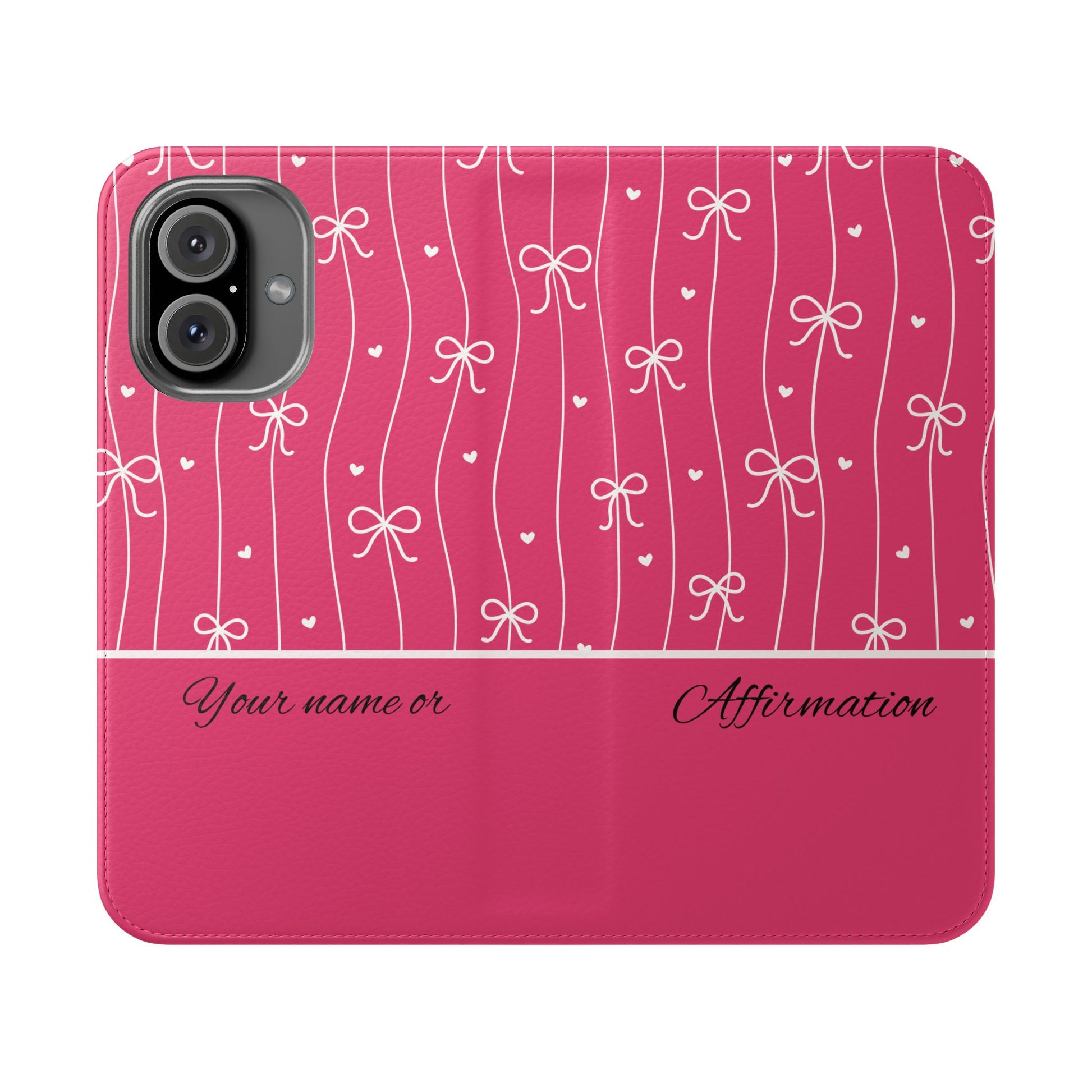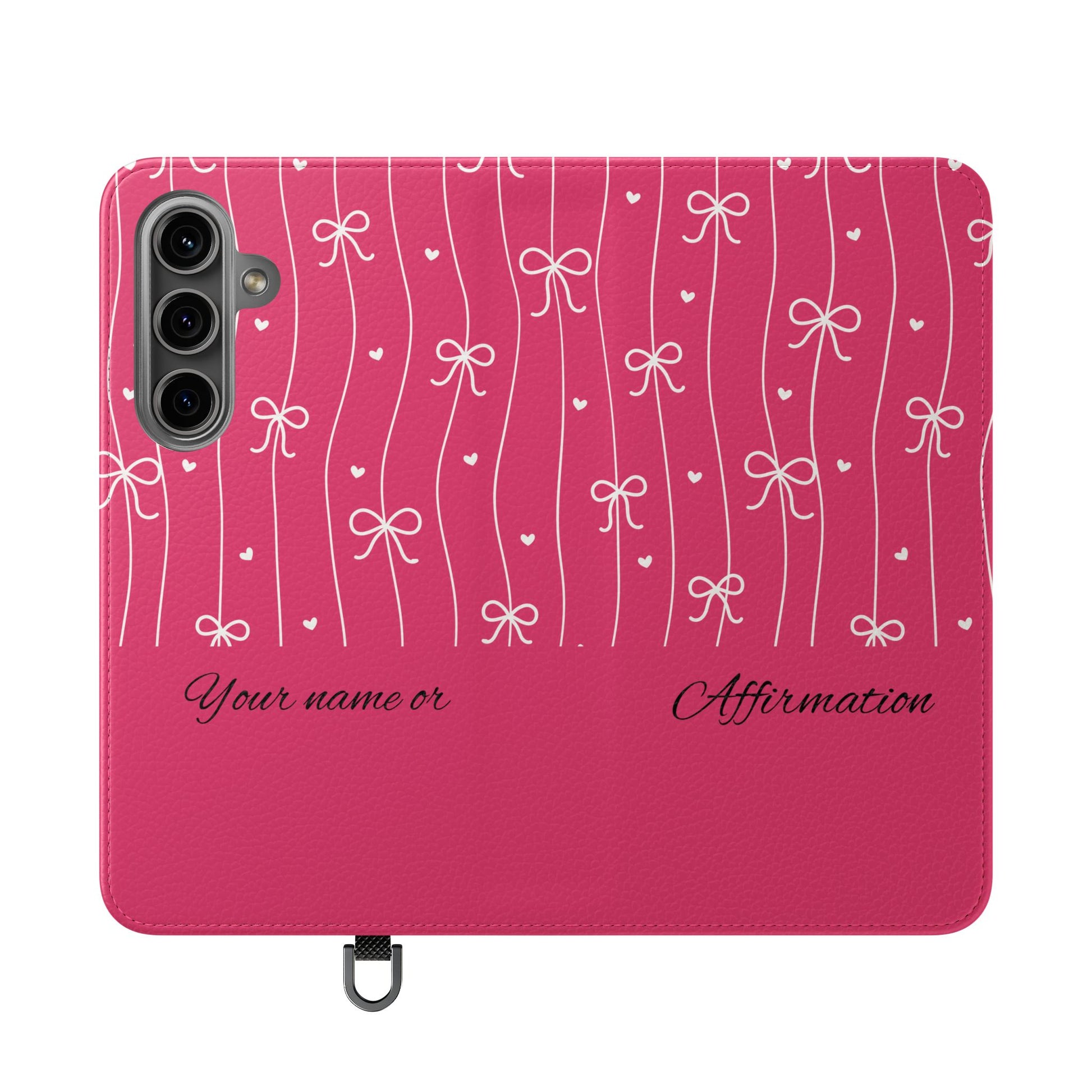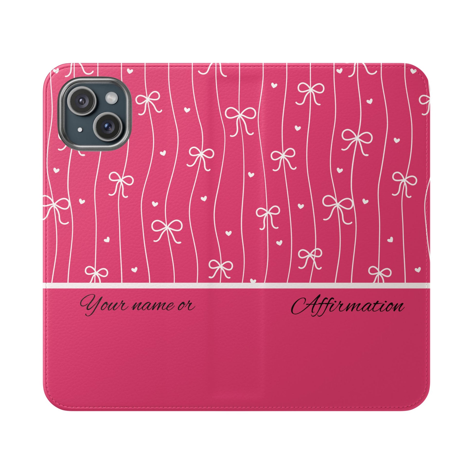 Personalized Pink Bow Coquette Flip iPhone and Samsumg Case — Custom Name or Affirmation Wallet Cover