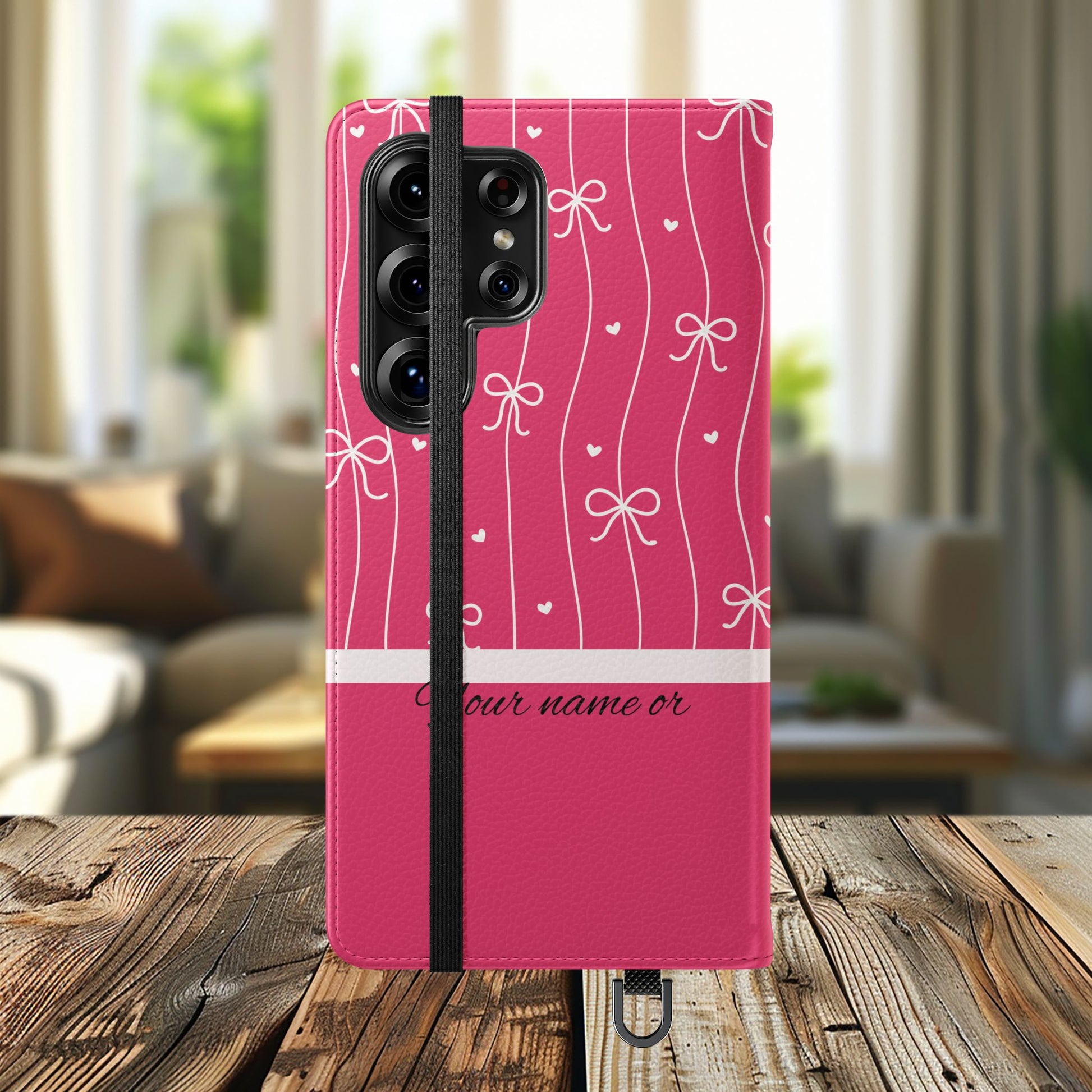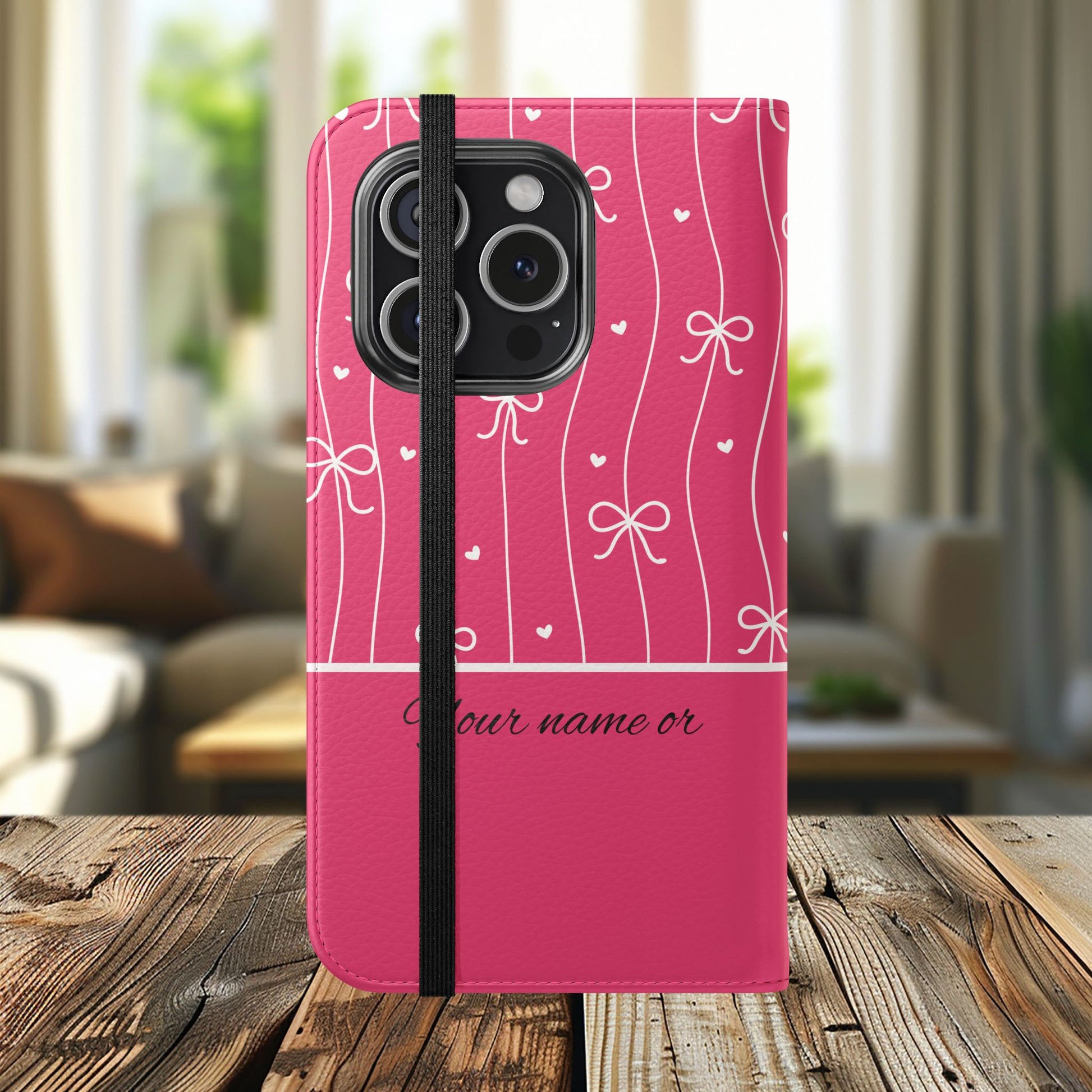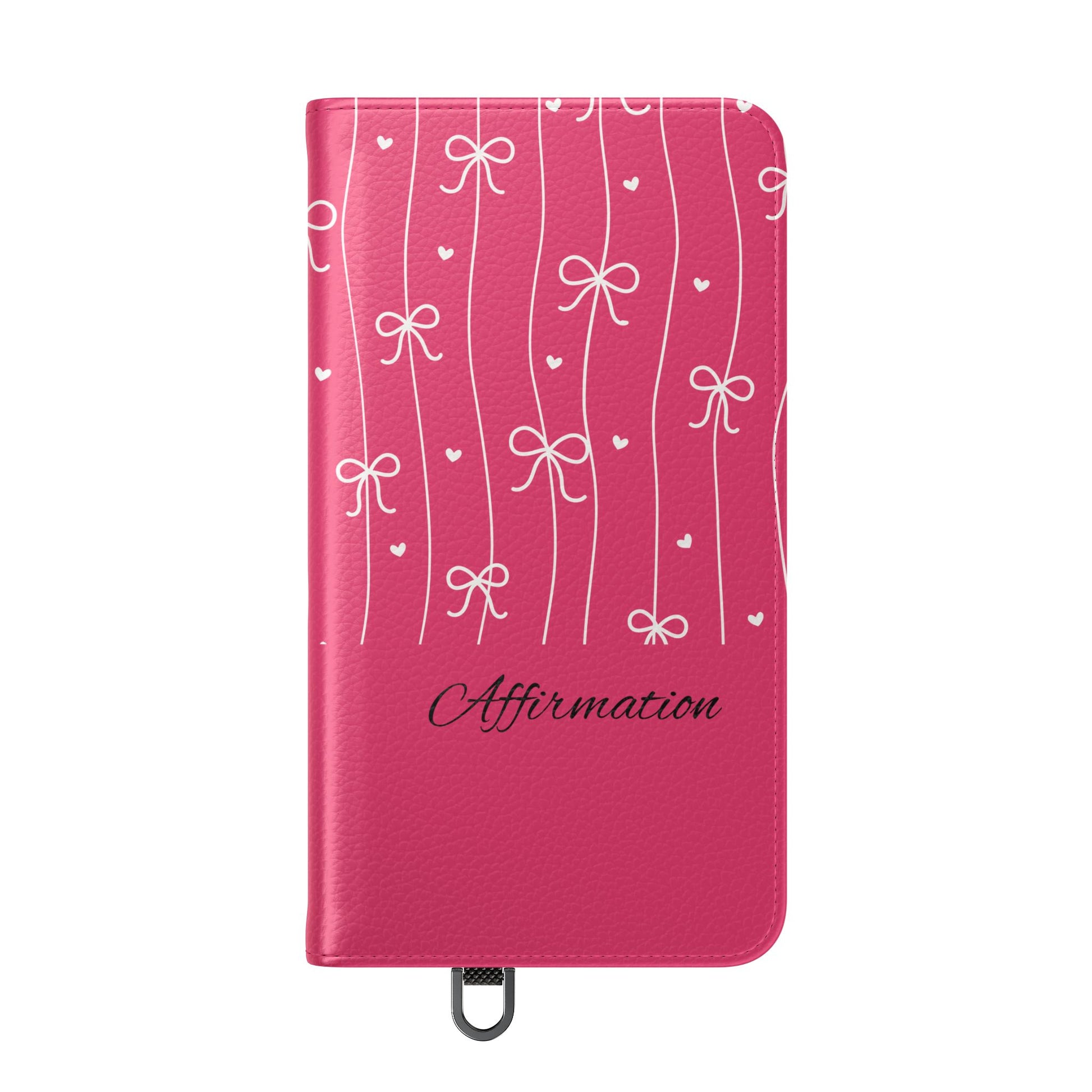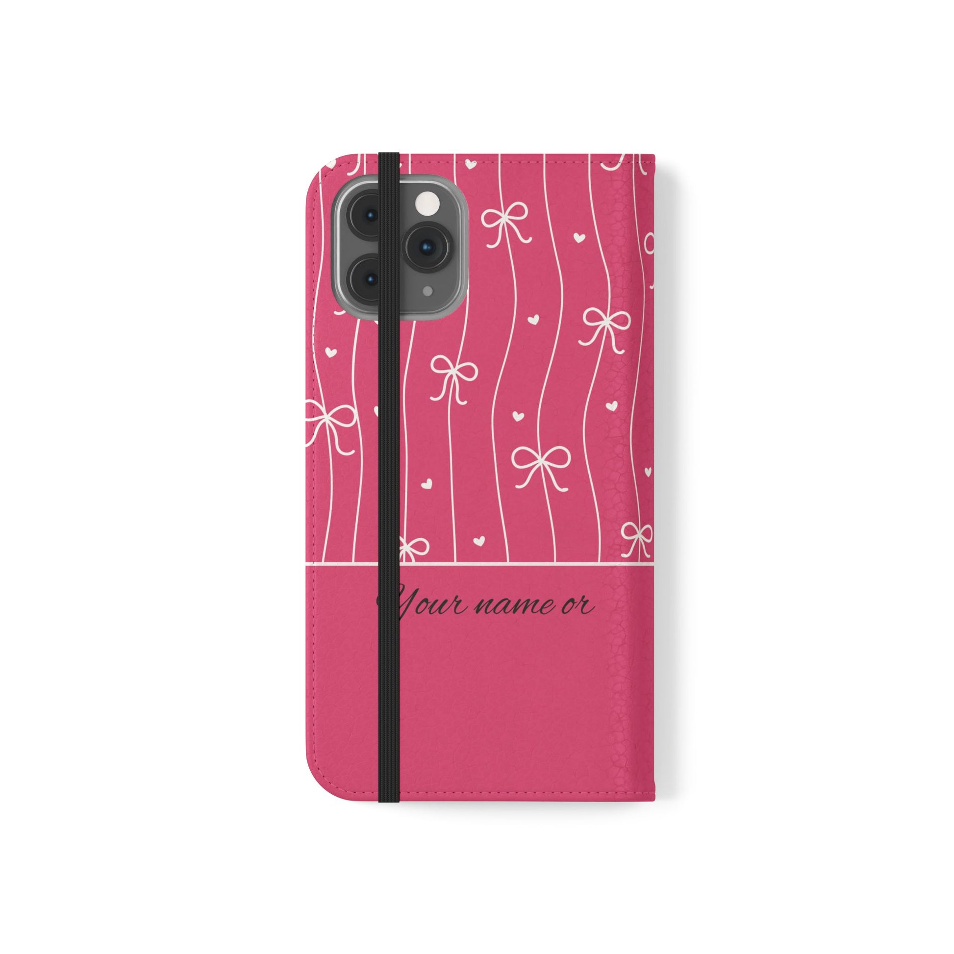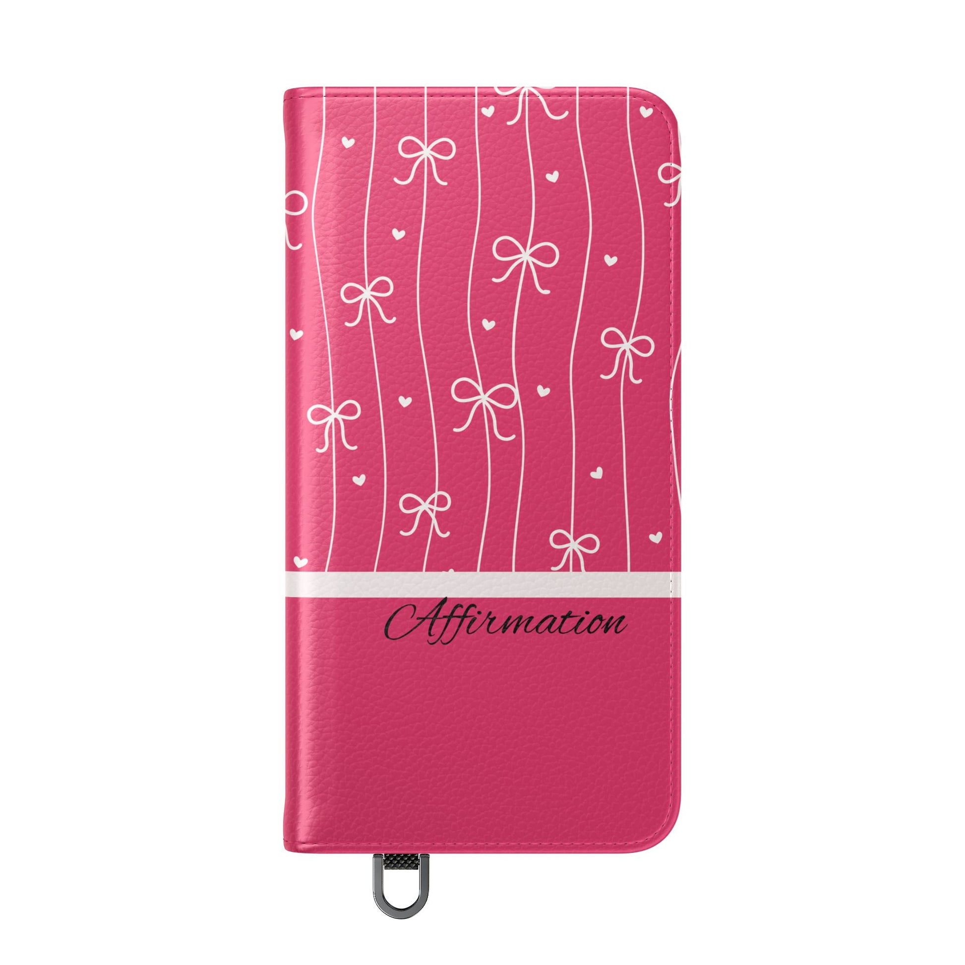 Personalized Pink Bow Coquette Flip iPhone and Samsumg Case — Custom Name or Affirmation Wallet Cover
