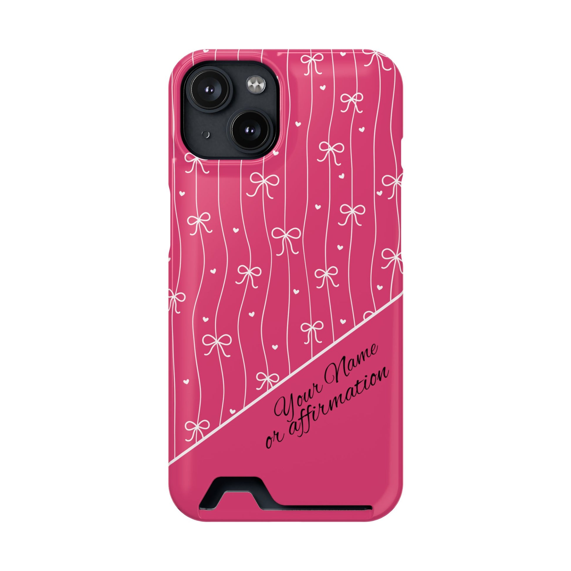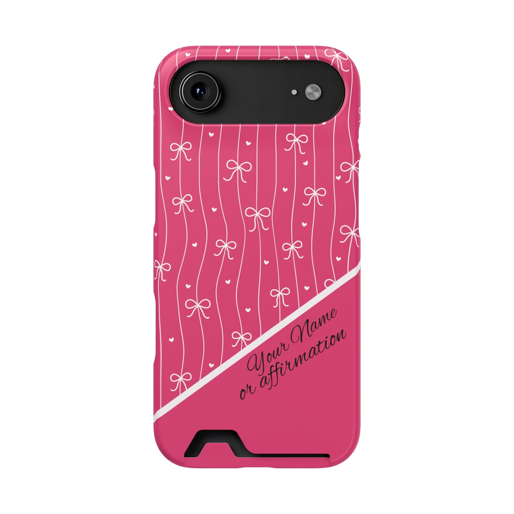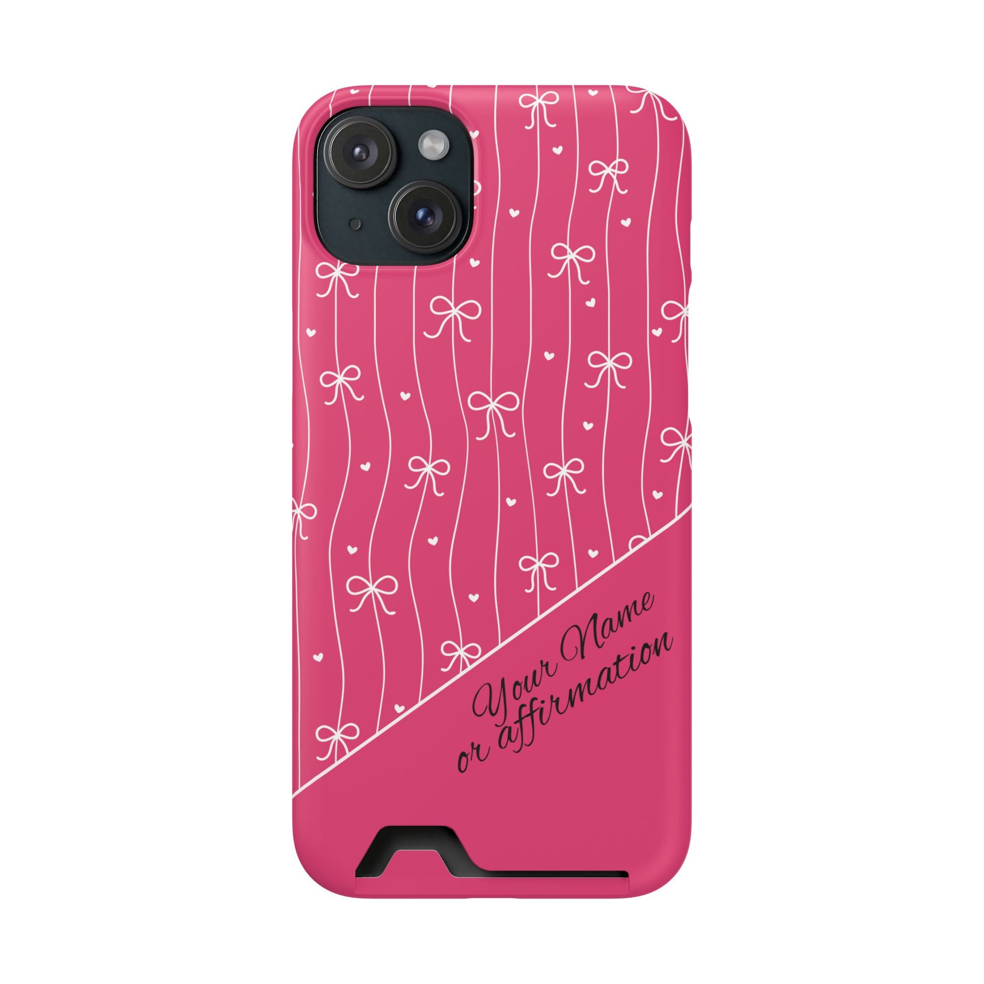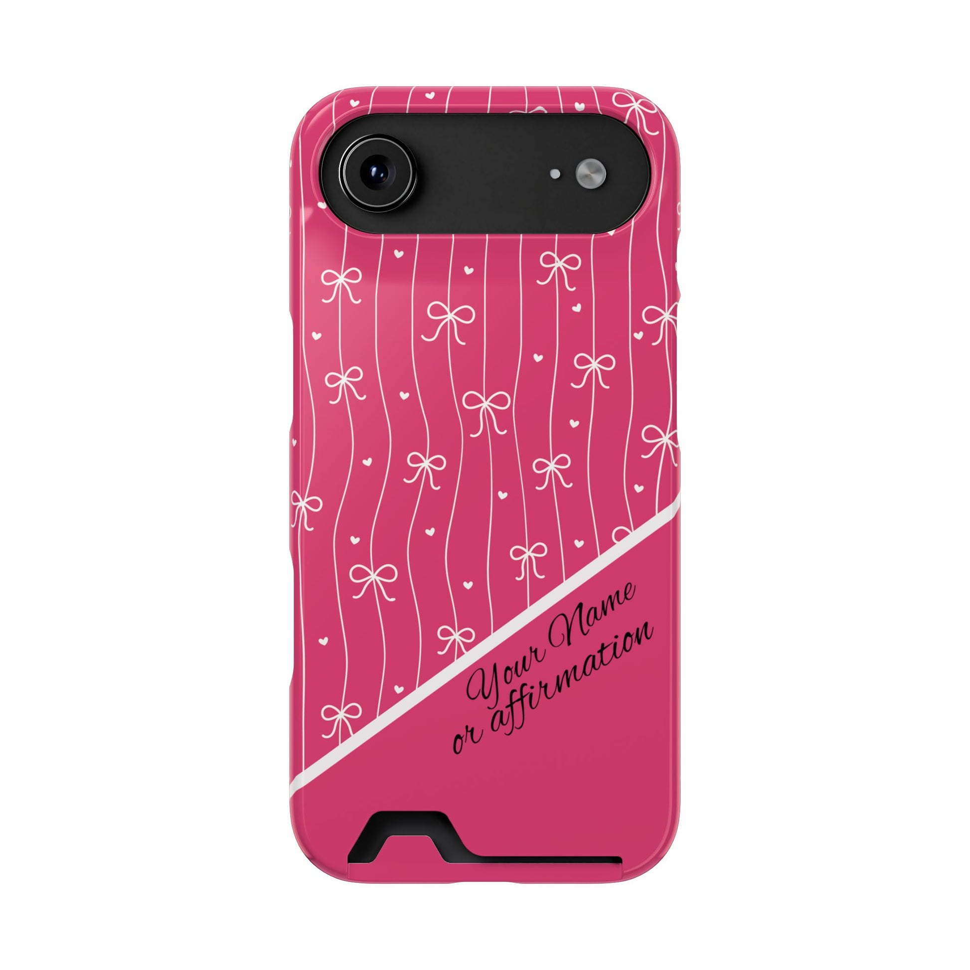 Personalized Pink Bow Coquette iPhone and Samsung Card Case — Custom Name or Affirmation