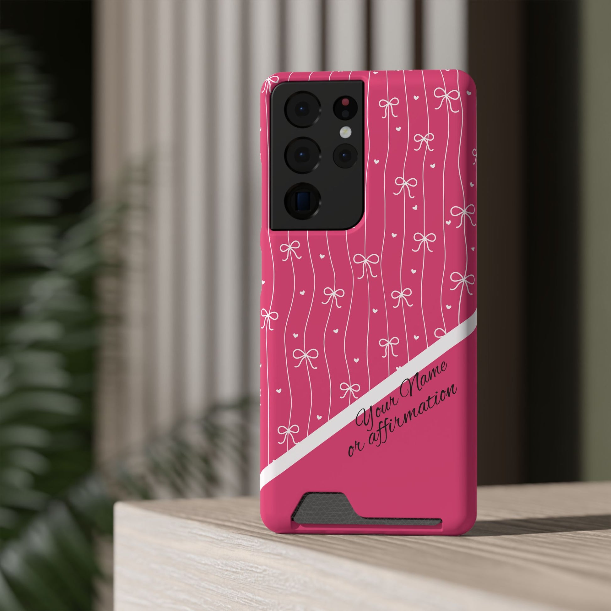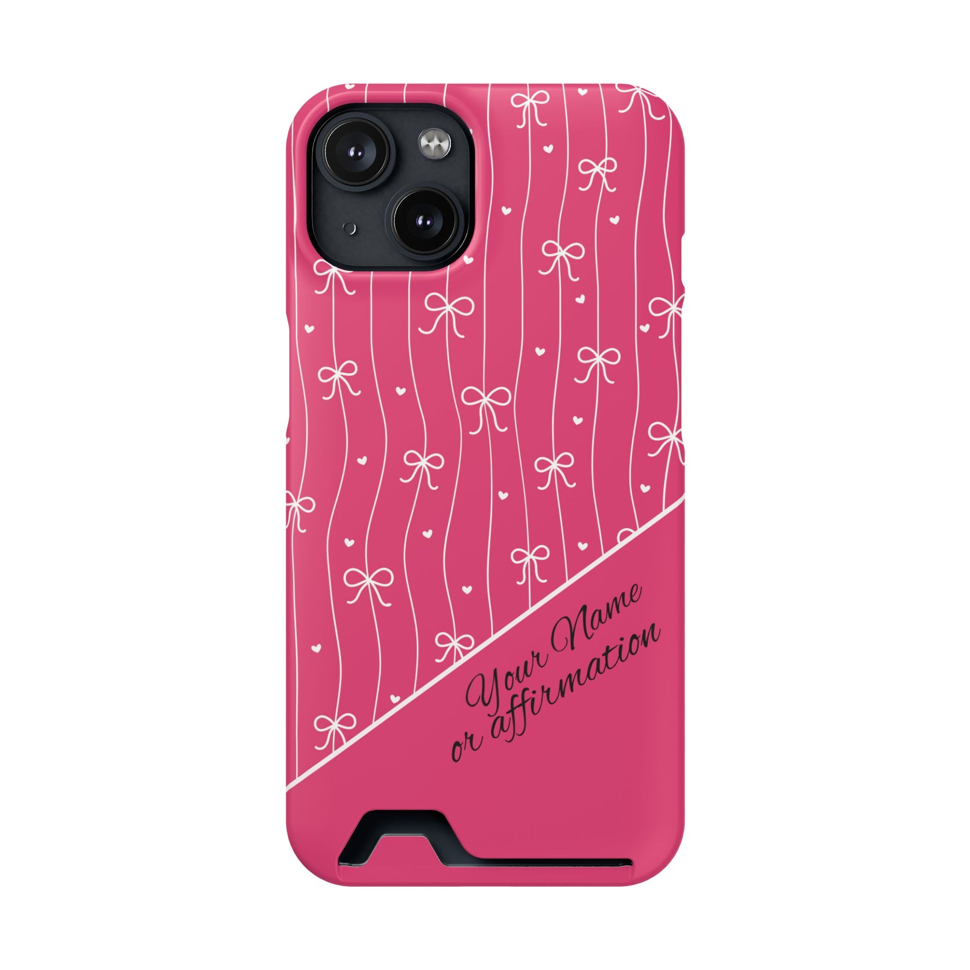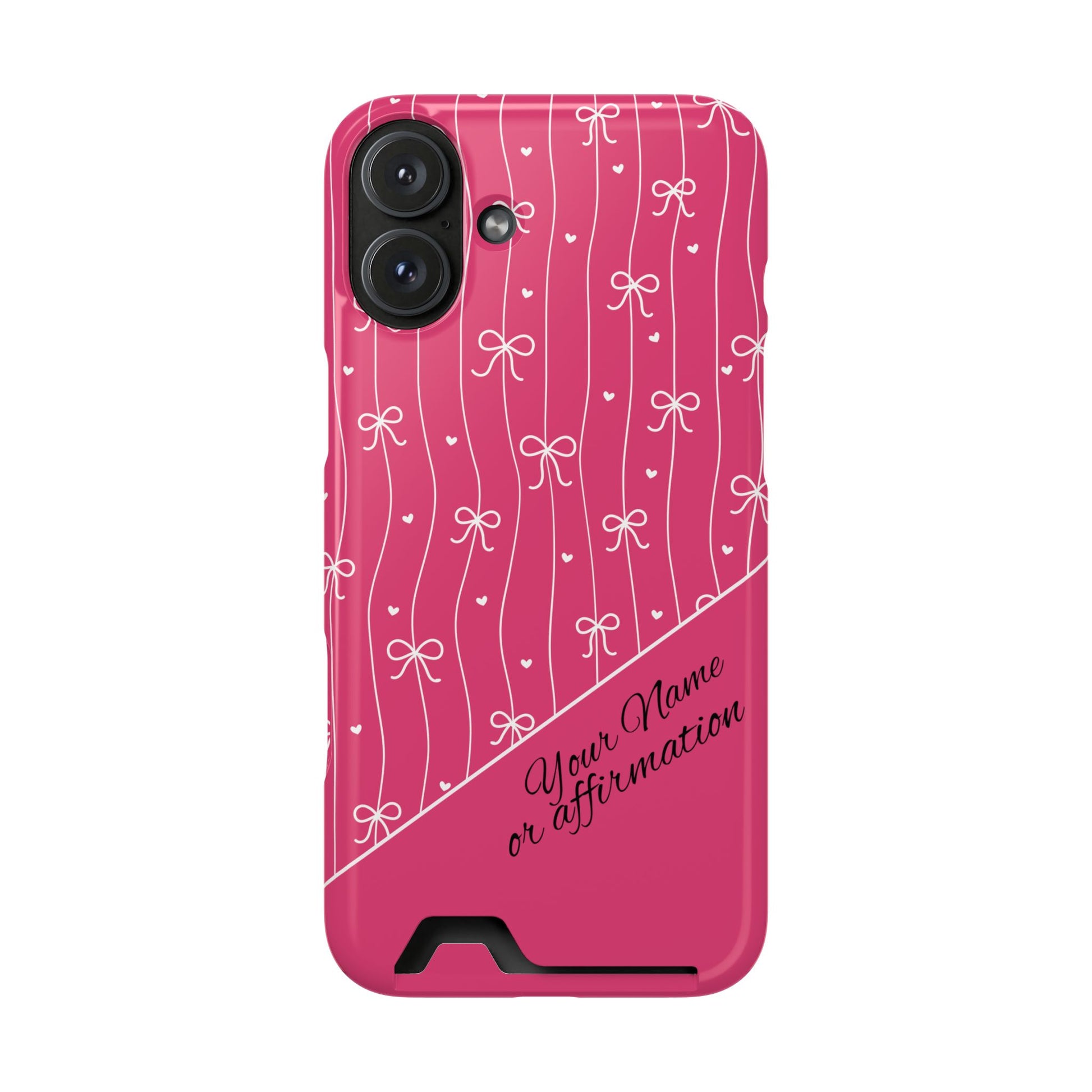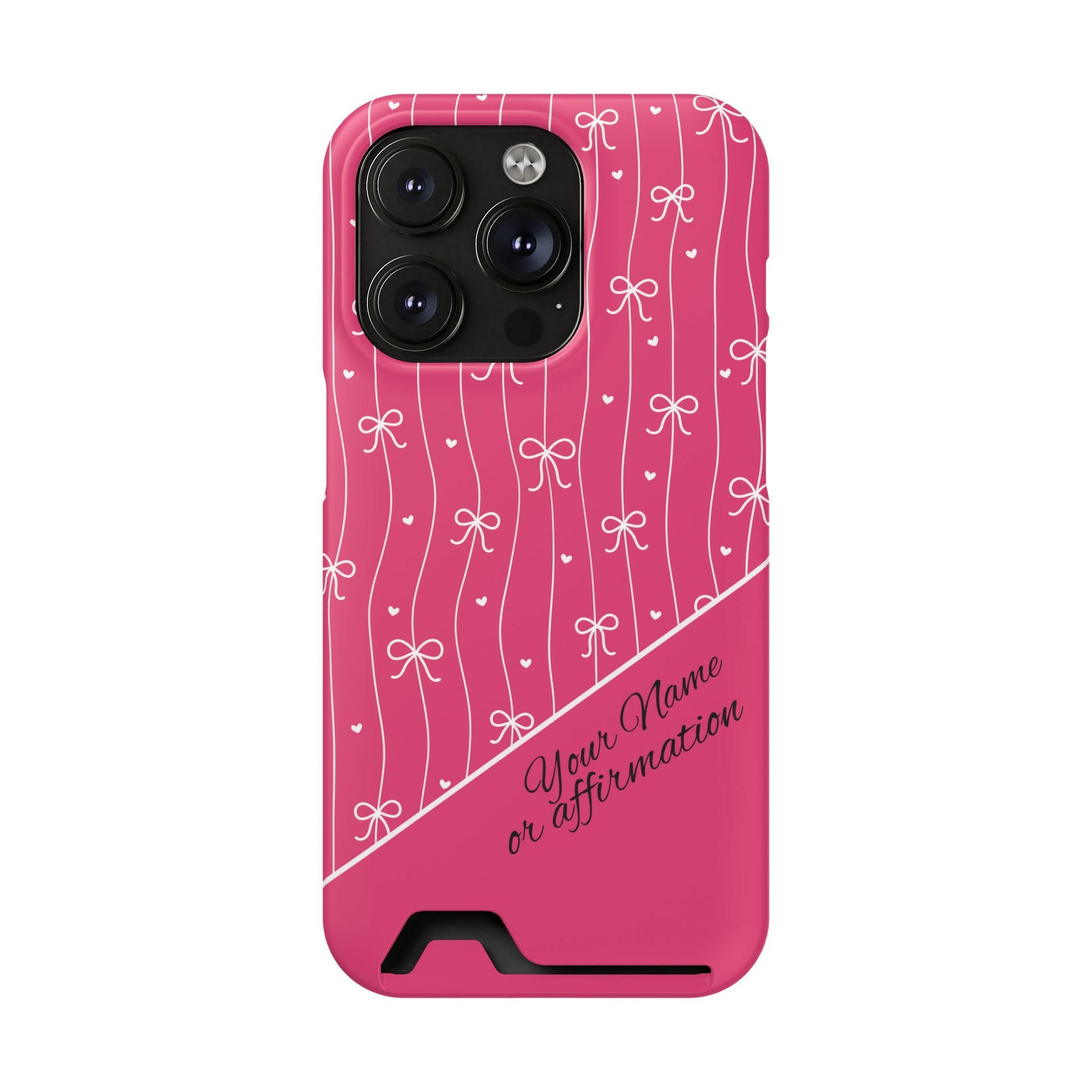 Personalized Pink Bow Coquette iPhone and Samsung Card Case — Custom Name or Affirmation