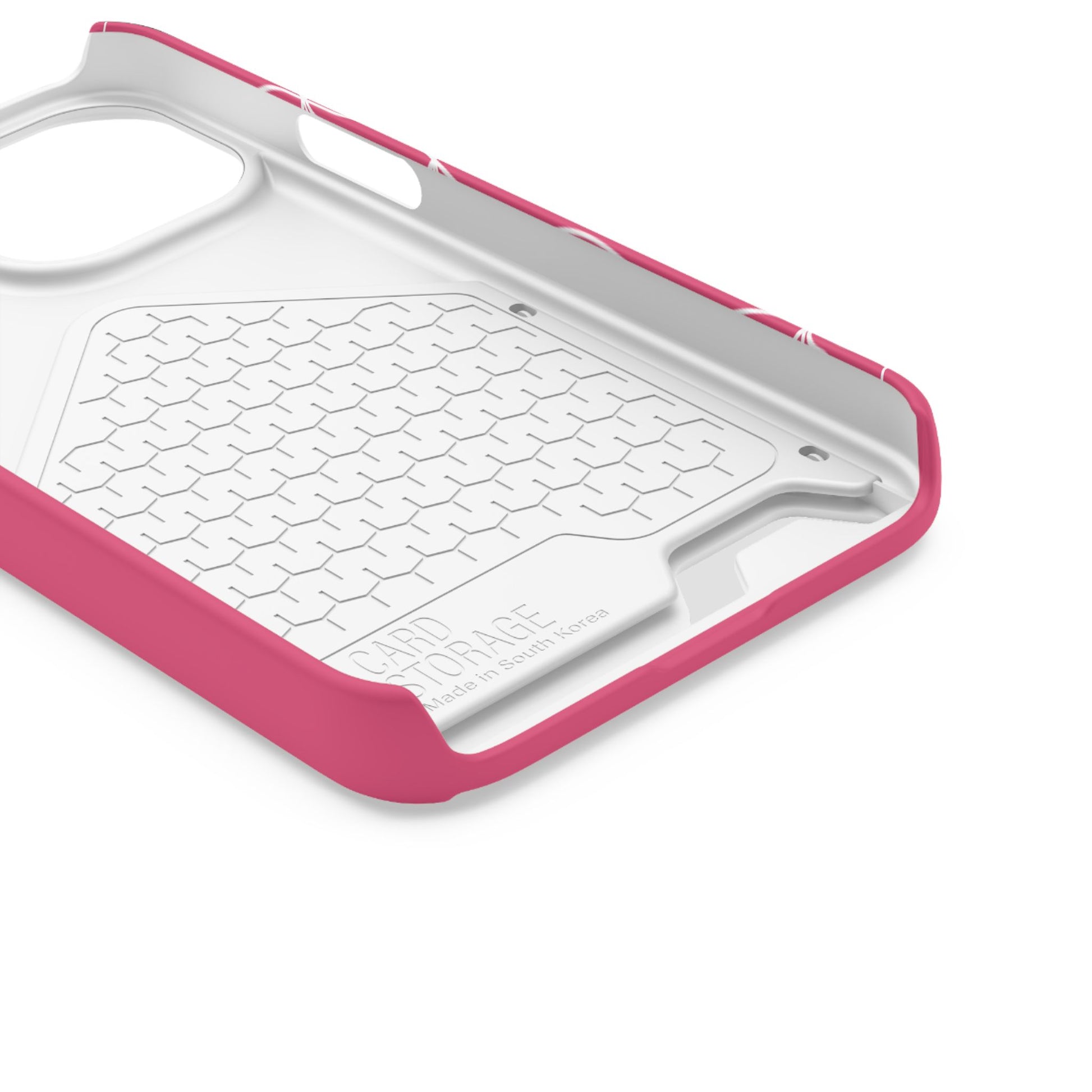 A slim, protective phone case built for everyday life — bright, lightweight, and ready to carry one essential card. The impact-resistant polycarbonate shell absorbs knocks and keeps your phone safe while the glossy or matte finish lets the bold pink color and delicate bow-line pattern stay crisp. A discreet rear card slot holds a transit card or ID so you can move hands-free. MagSafe compatibility and clear port openings keep your phone fully functional, while full-wrap printing preserves the design across every edge. Thoughtful details like precise cutouts and optional gift packaging make this a confident choice for someone who wants style and convenience in one sleek package.