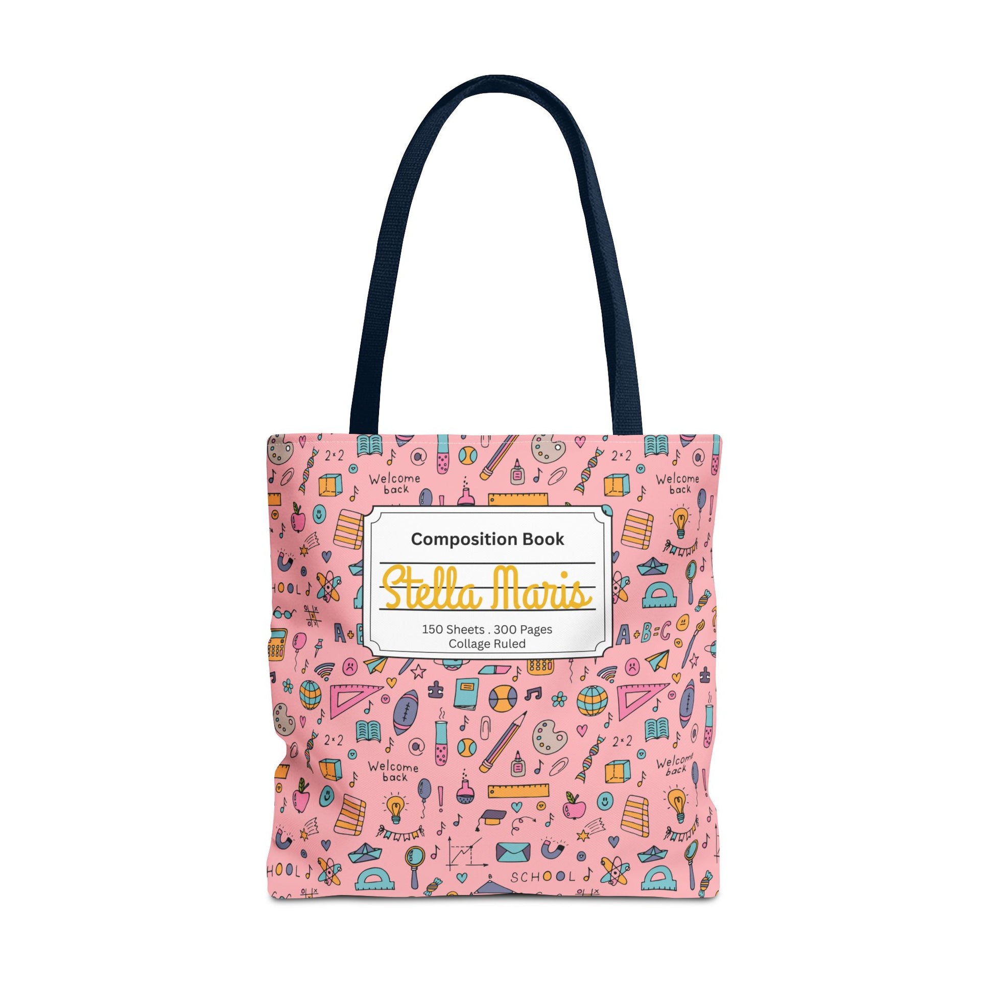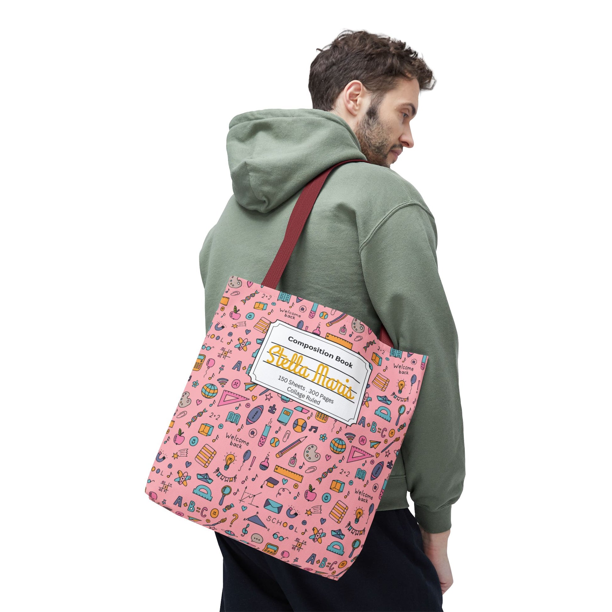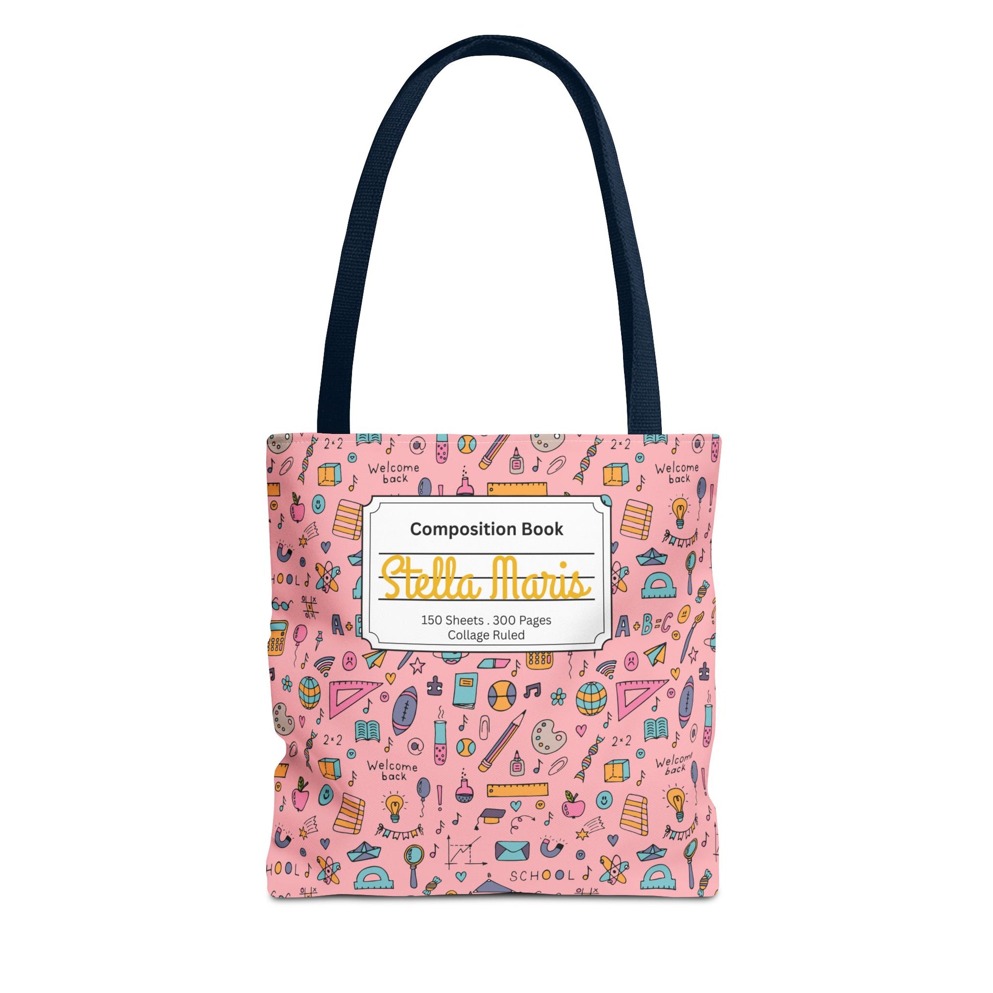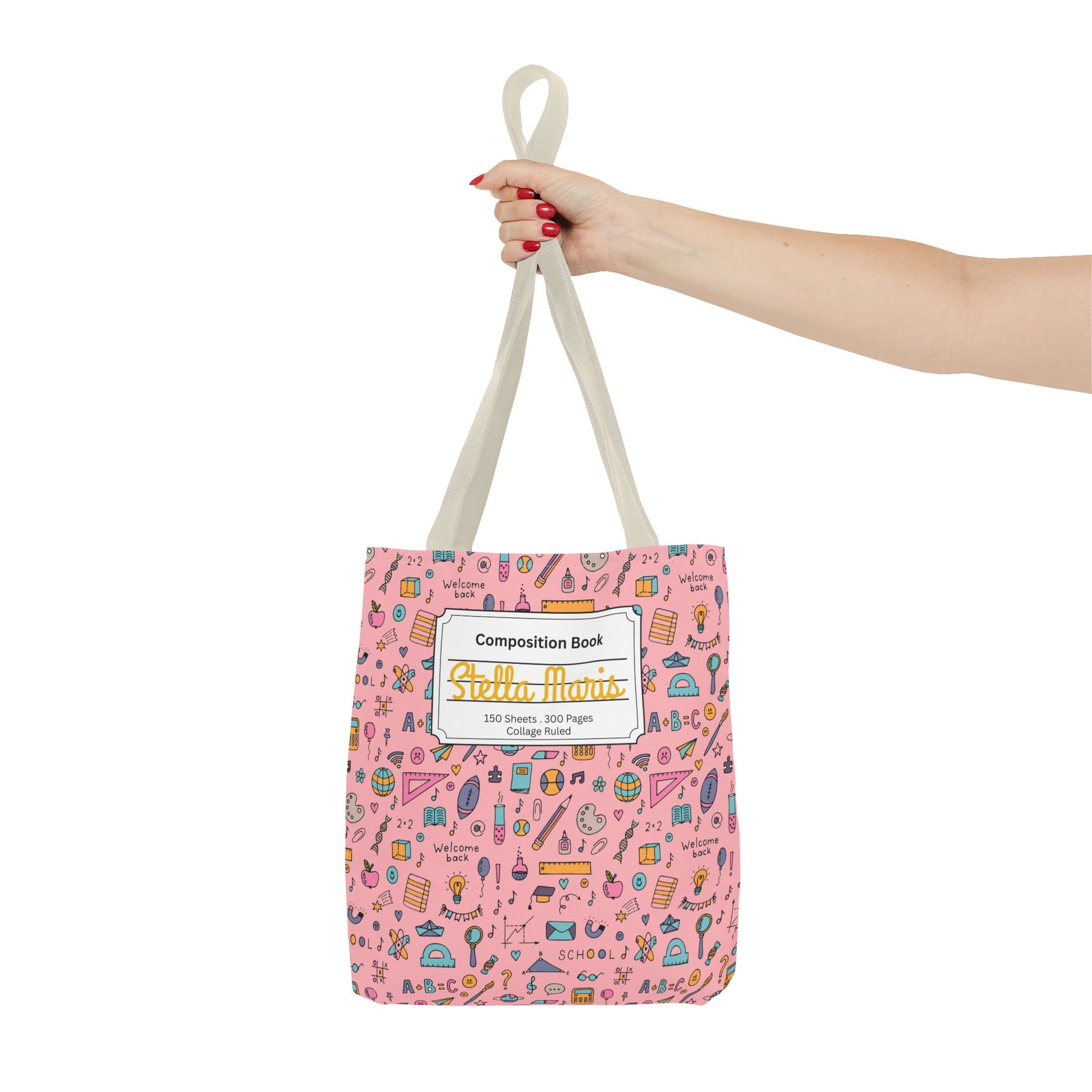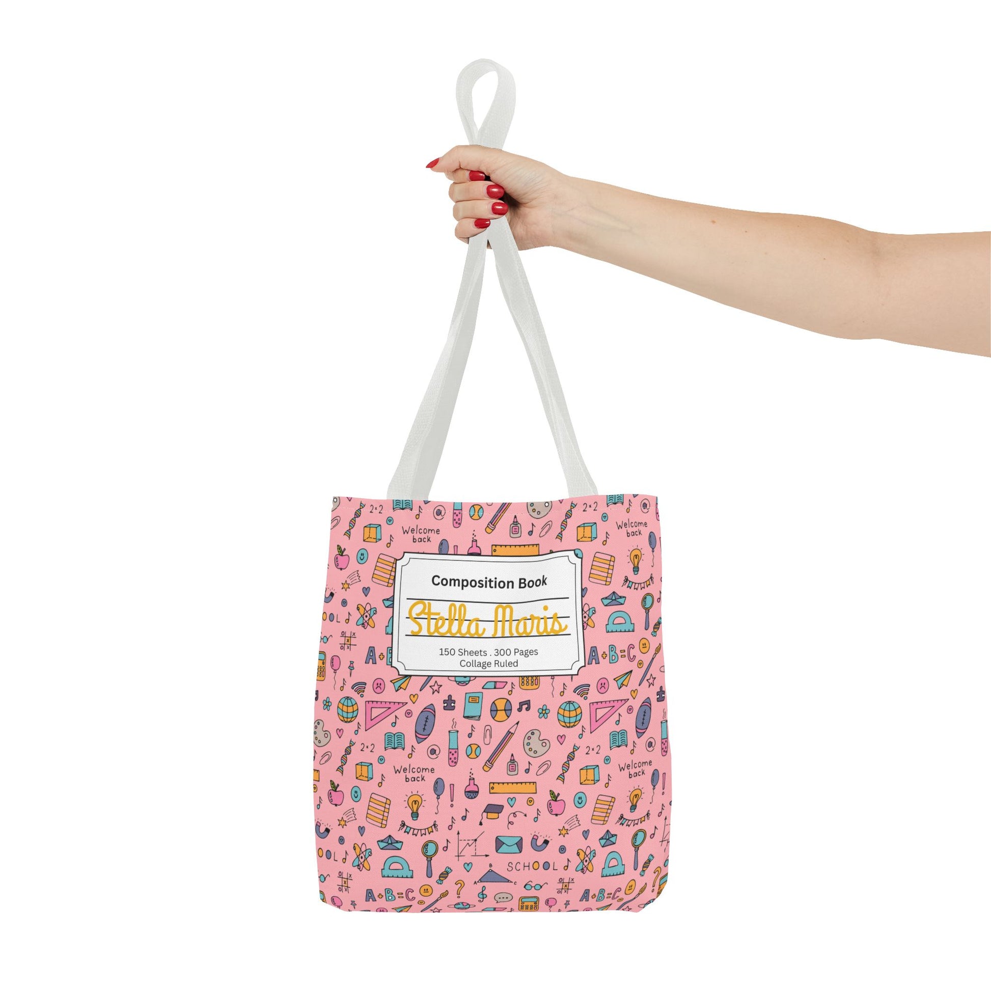 Personalized Pink Chalkboard Chic Composition Book Inspired Tote Bag, Back to School Tote, Teacher Gift, Kids Bag, Custom Name Bag, Educational Accessories, Back to School Tote Bag.