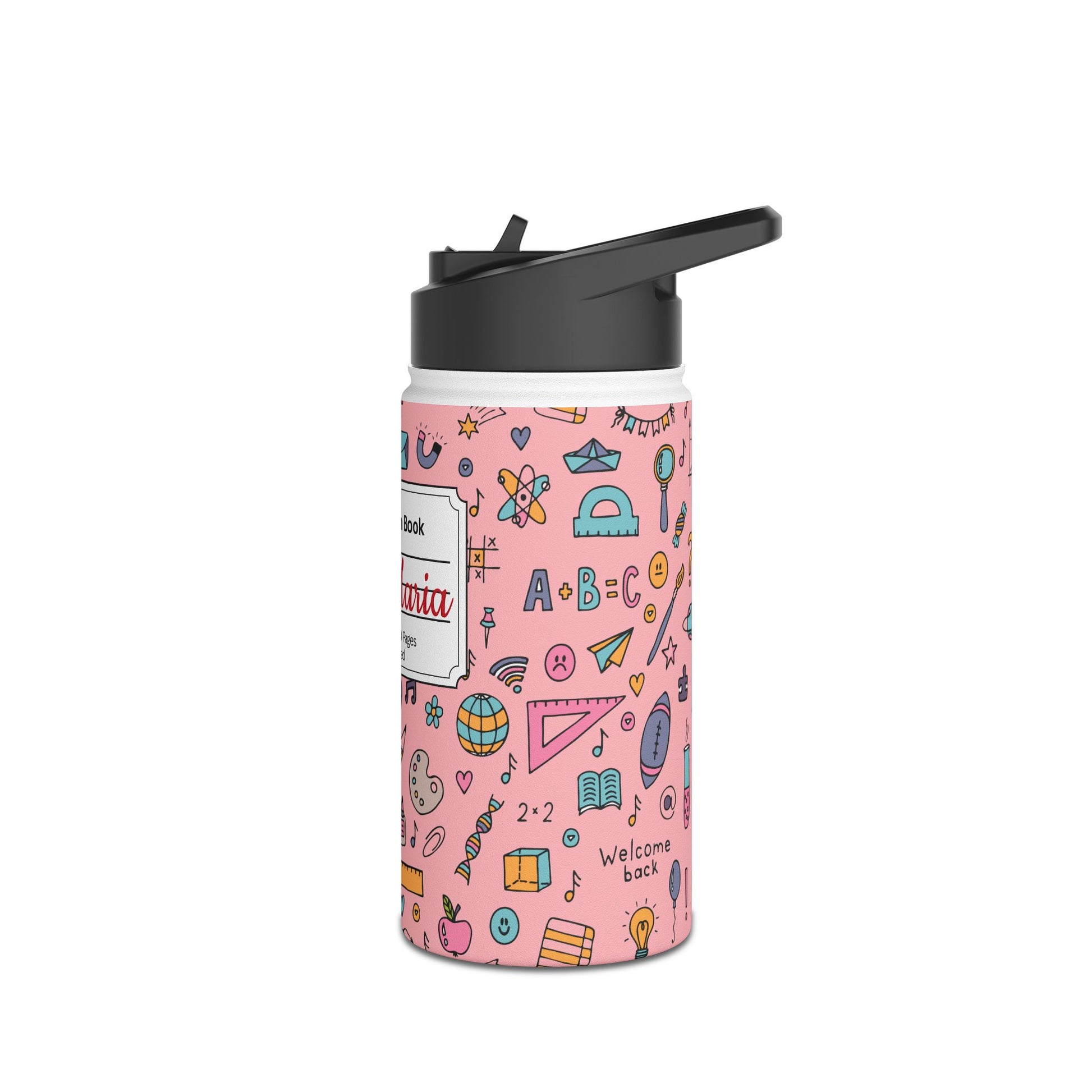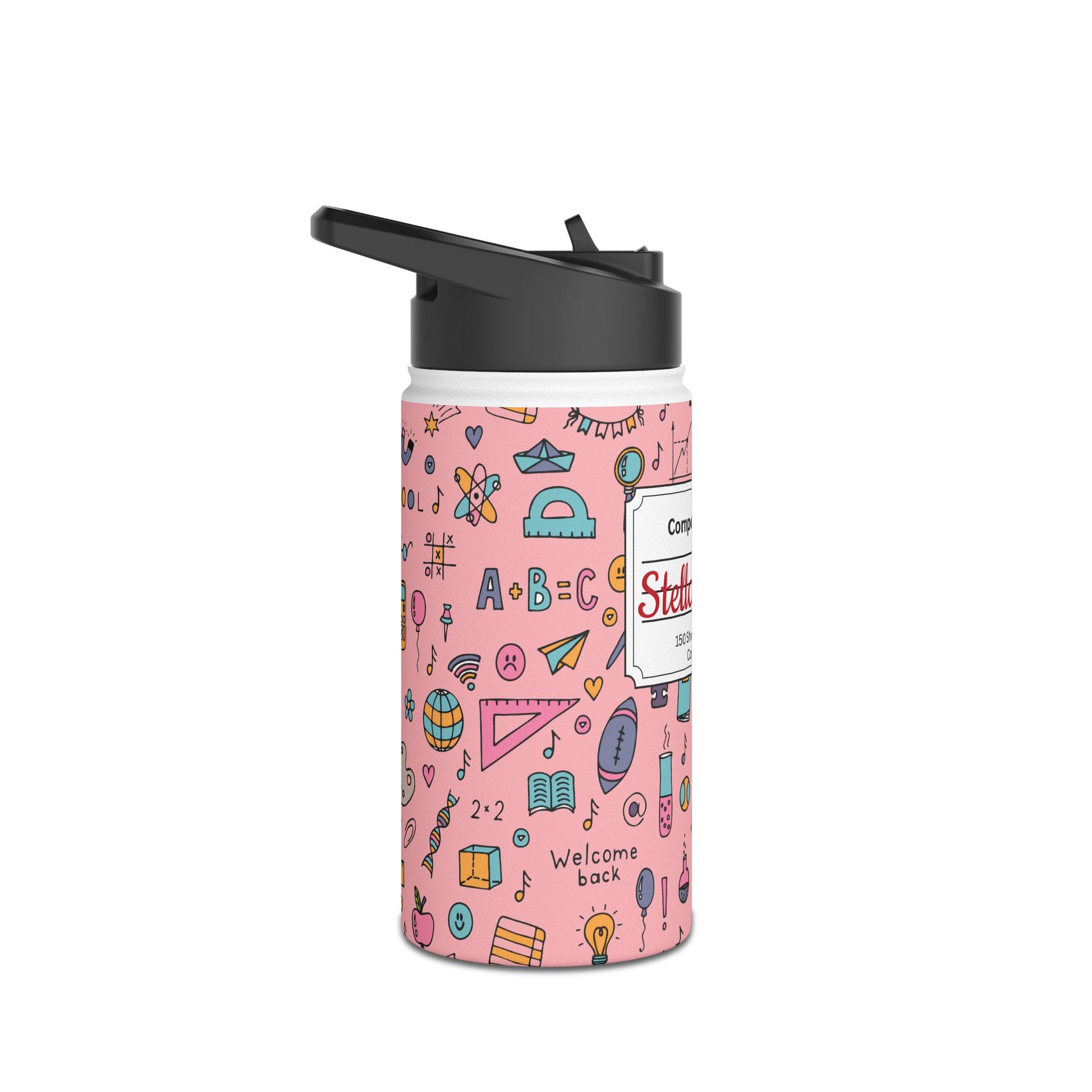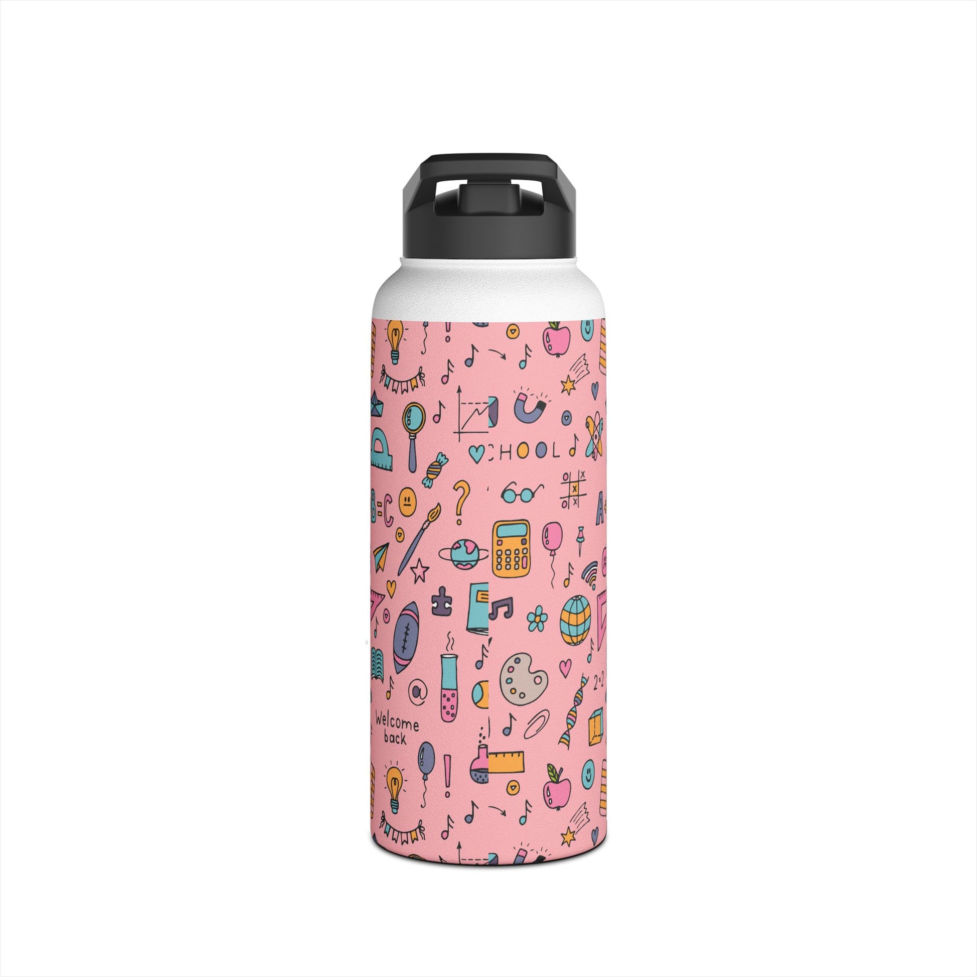 Personalized Pink Chalkboard Chic Inspired Stainless Steel Water Bottle for Kids, School Supplies, Eco-Friendly Drinkware, Back to School, Teacher Gifts