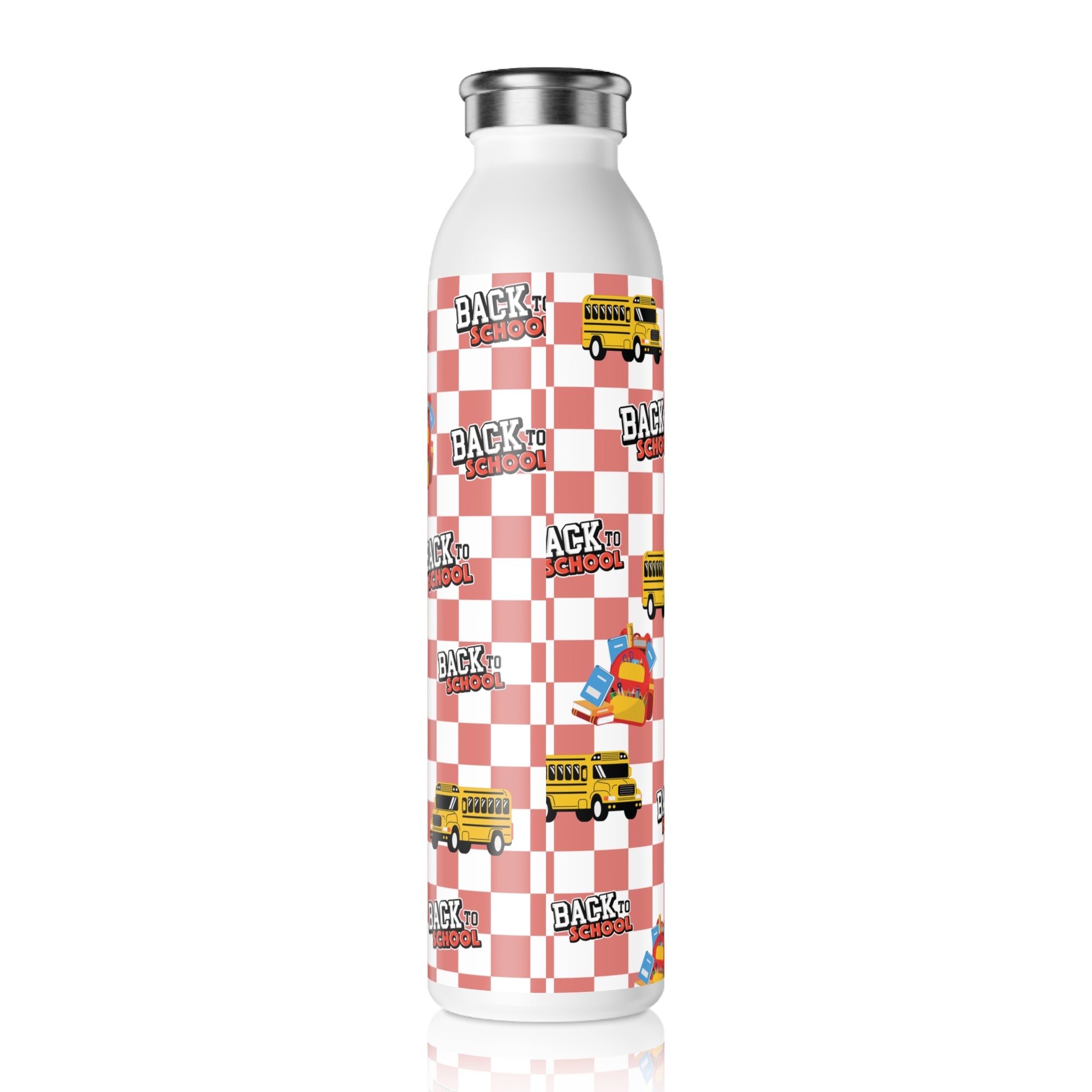 Stay hydrated in style with this sleek Back to School Slim Water Bottle. Crafted from durable stainless steel, it resists rust and staining, making it the perfect companion for your daily adventures. The double-wall construction keeps your drinks hot or cold for hours, ensuring you enjoy every sip at the perfect temperature. With a generous 20oz capacity, it's ideal for gym workouts, outdoor activities, or just keeping at your desk. The matte finish gives it a modern look, while the glossy print adds a touch of personality. Perfect for students, professionals, and anyone on the go, this water bottle is not just functional but also a fashionable accessory. Gift it during holidays or special occasions like back-to-school season, birthdays, or simply for someone who values hydration and style.