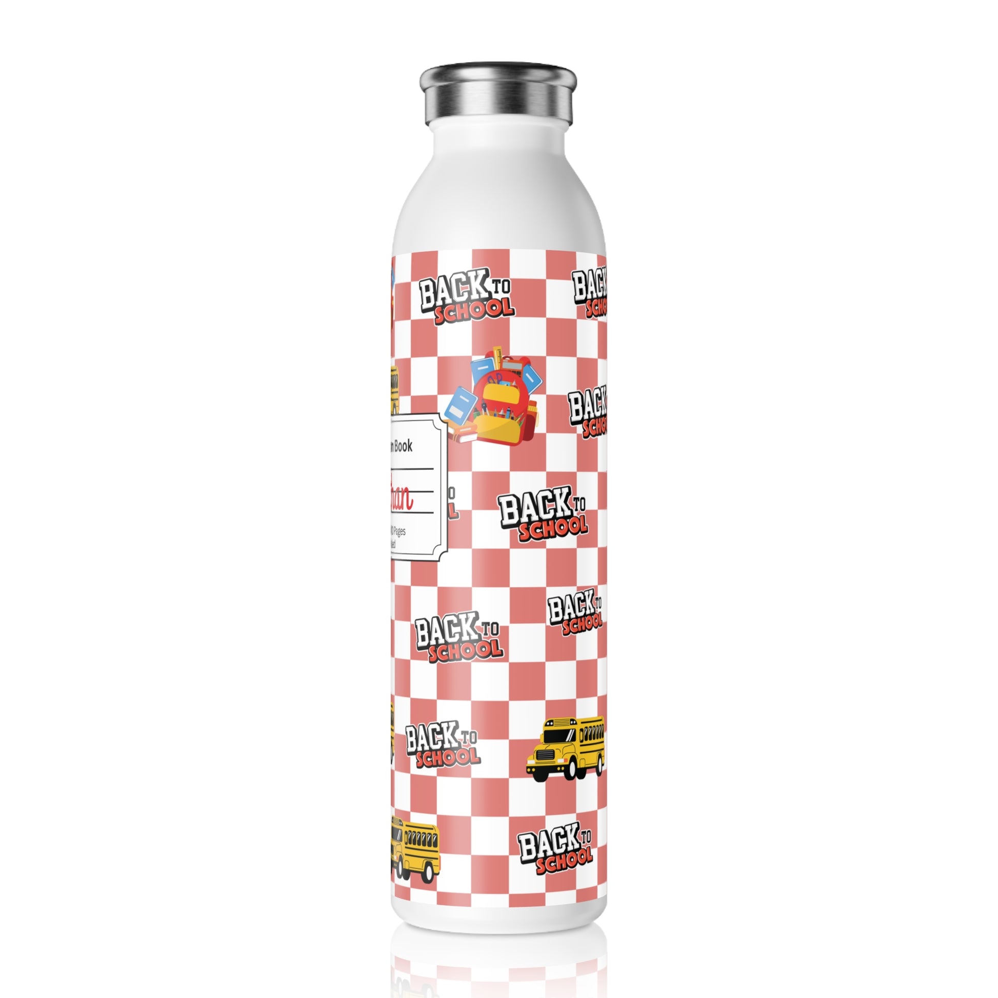 Personalized Red SchoolYard Chic Composition Book Inspired Slim Water Bottle, Customizable Drinkware, Eco-Friendly Hydration Bottle, Perfect for Gifts, School Supplies, Back to School