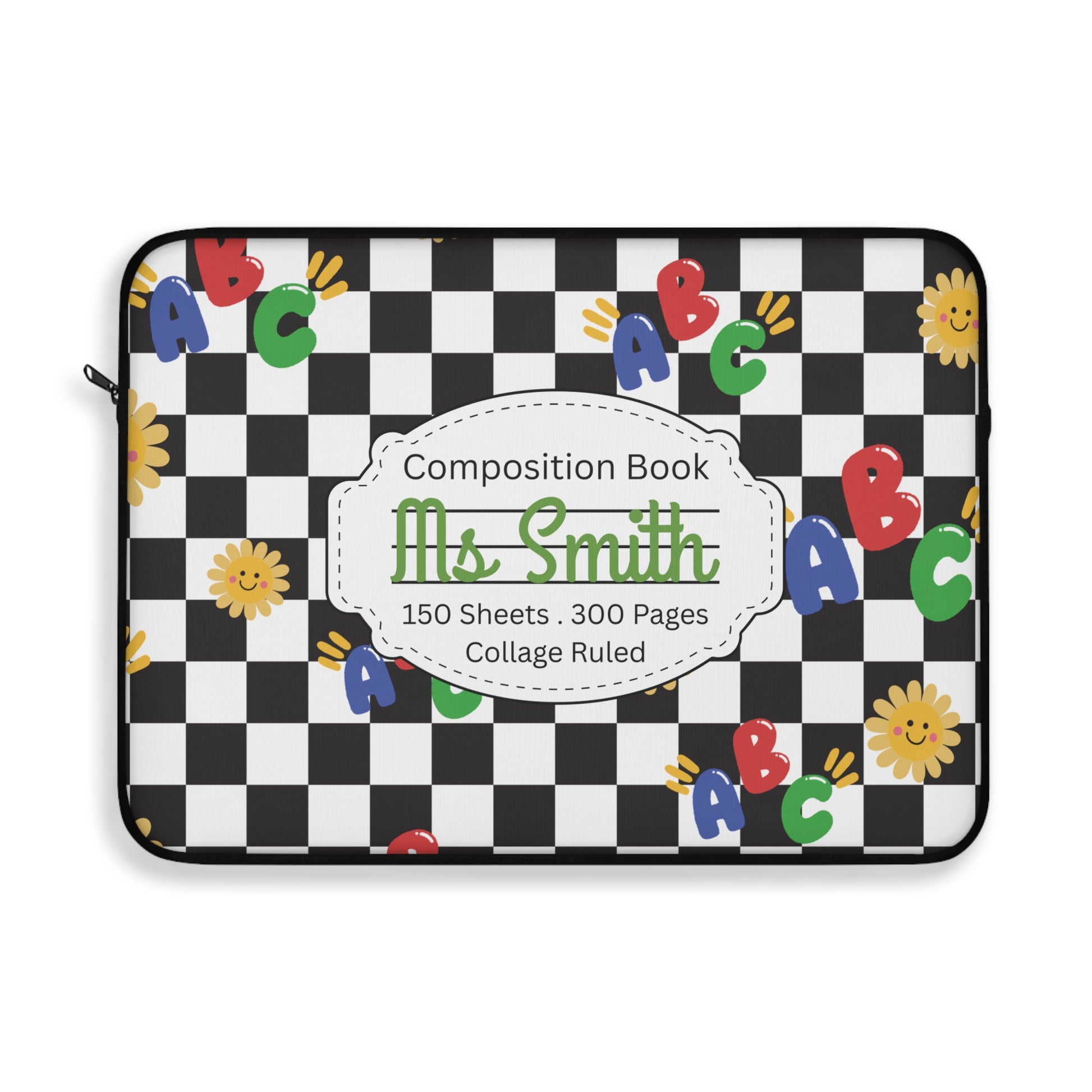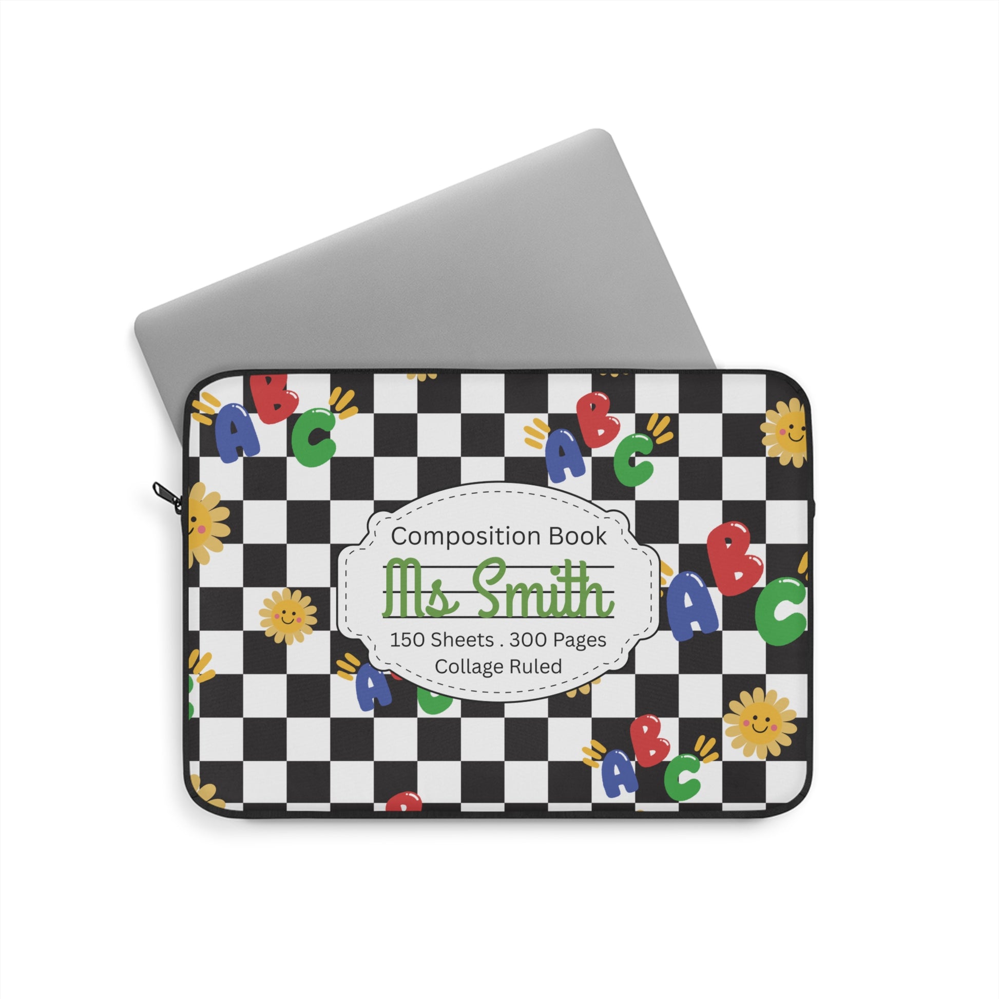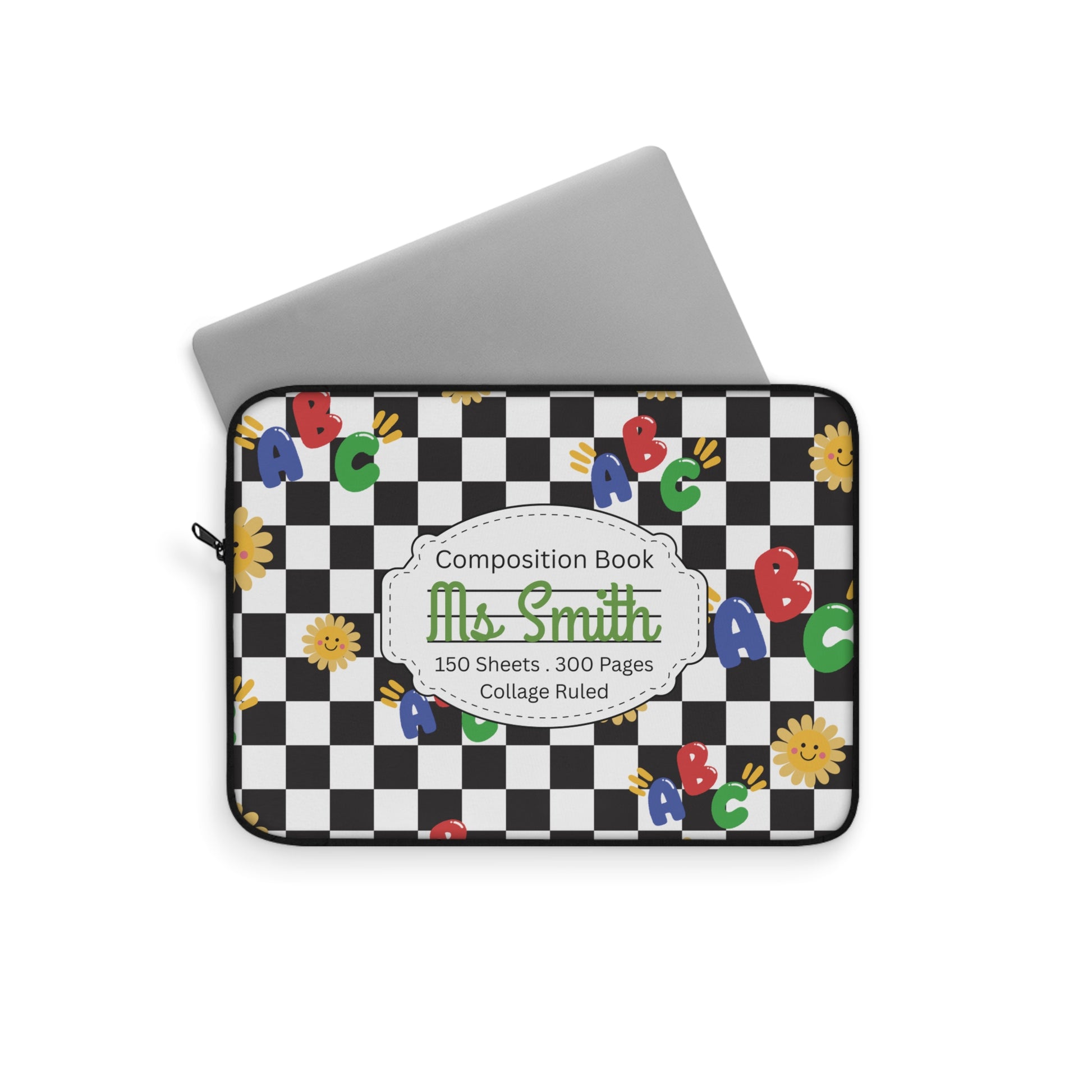 Personalized Schoolyard Chic Laptop Sleeve with Composition Book Inspired Design, Educational Gift for Teachers, Classroom Organization, Back to School, Unique Teacher Accessory