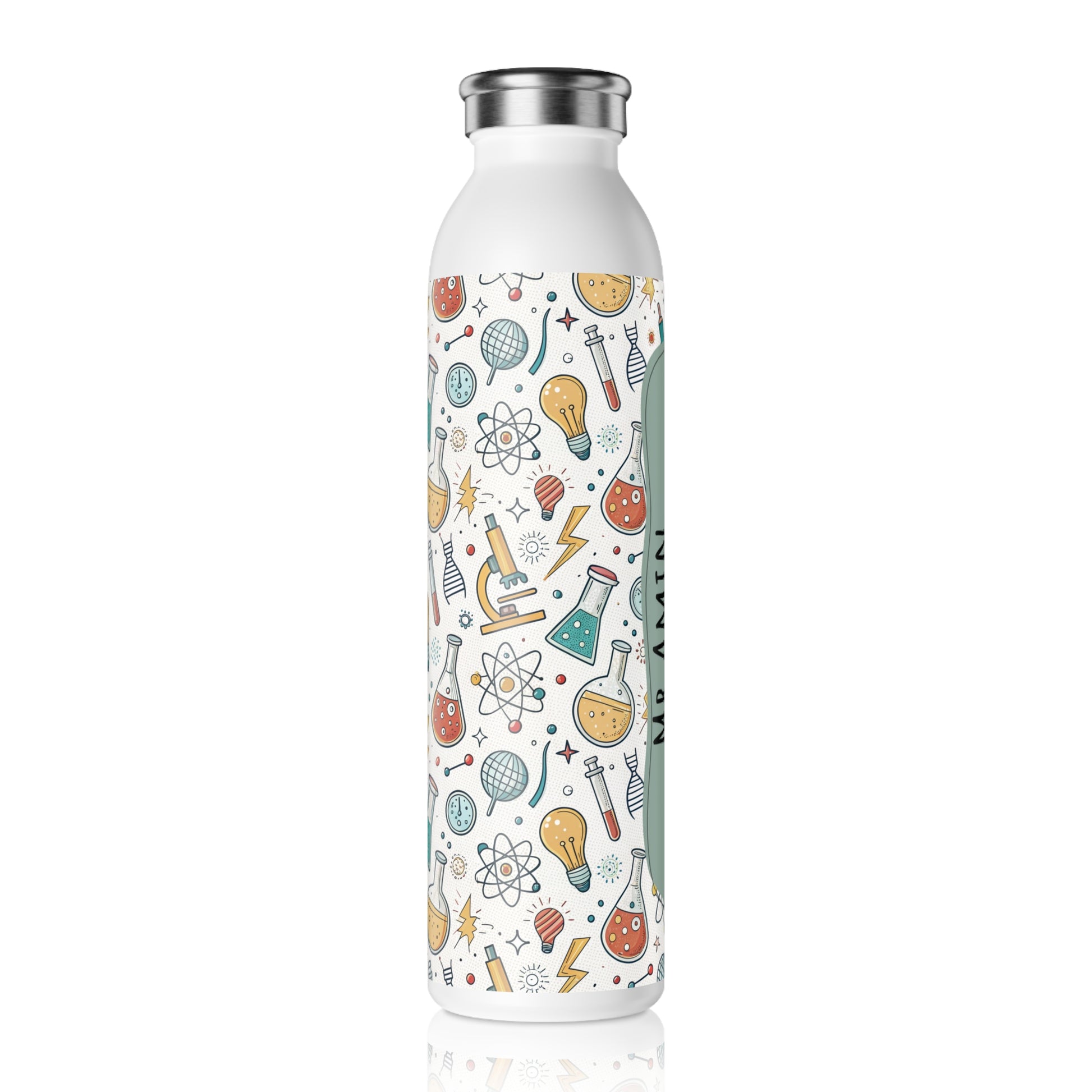Personalized Slim Water Bottle for Science Lovers, Cool Water Flask, Gift for Teachers, Back to School, Science Fair