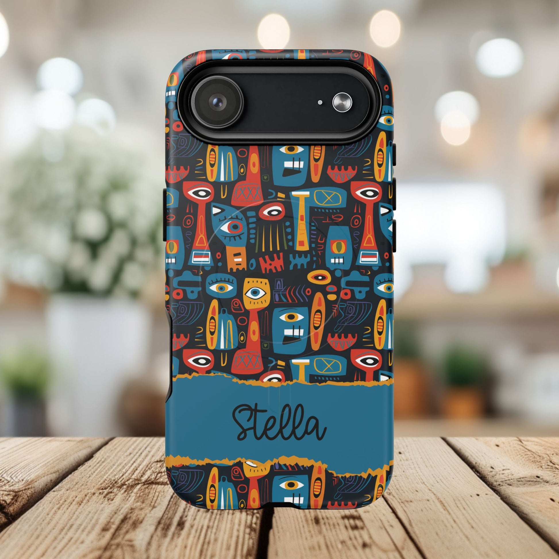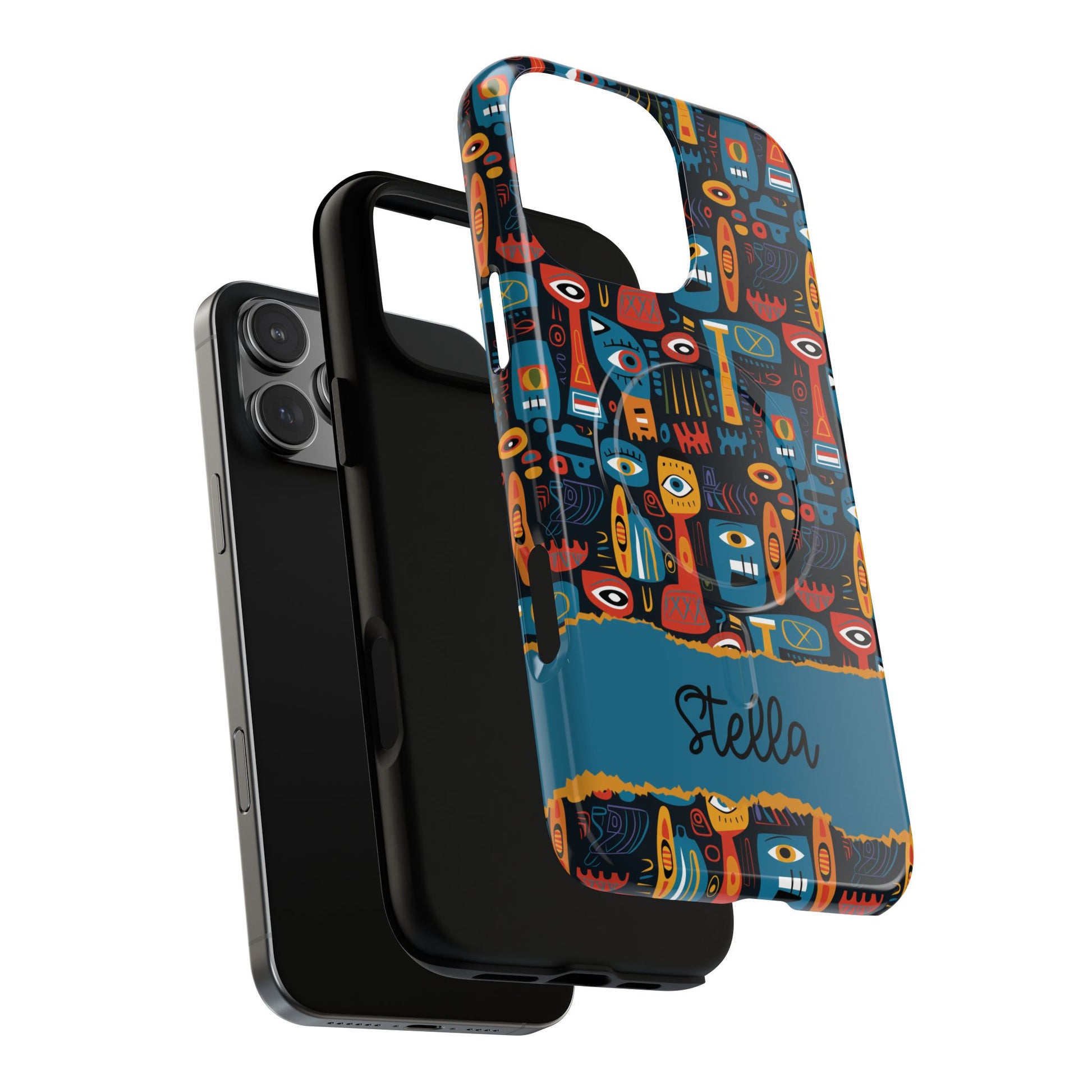 Personalized Tough MagSafe Magnetic iPhone Case — Colorful Abstract Totem Custom Name