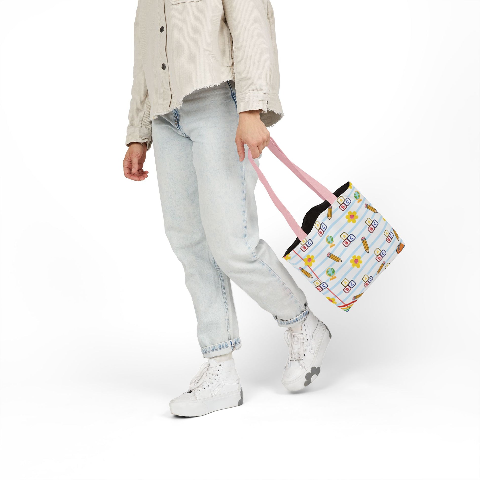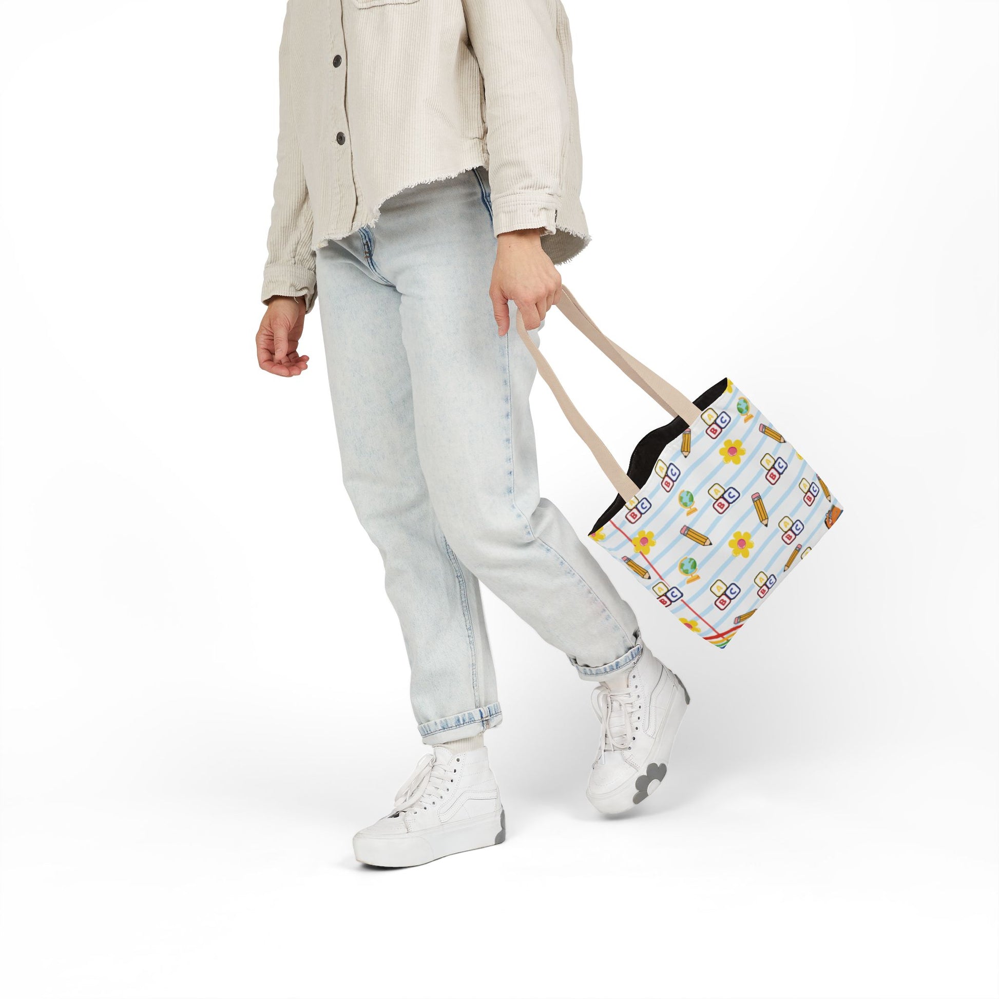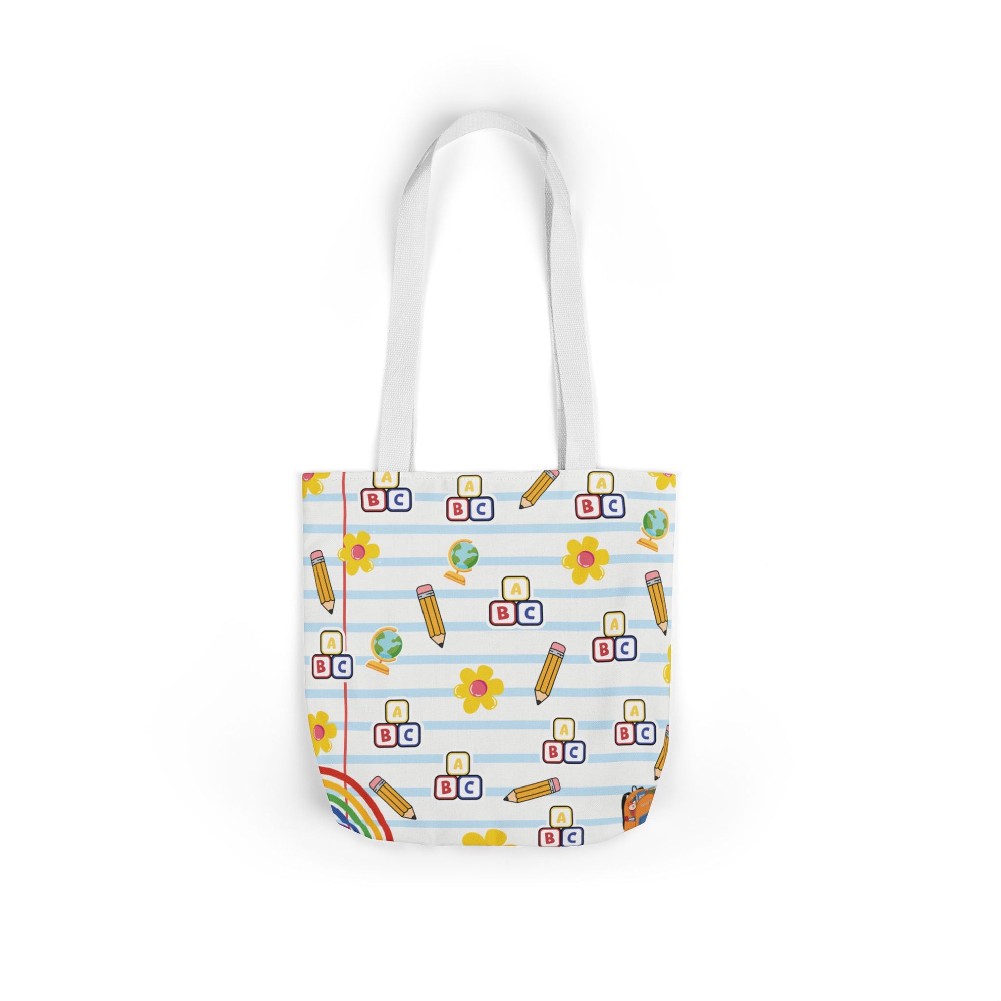 Introducing our stylish Canvas Tote Bag, perfect for seamless transitioning from weekdays to weekends. With its vibrant colors and fun designs, this tote adds a cheerful touch to any outfit. It's ideal for students, teachers, or anyone who appreciates creativity and practicality in their everyday carry. Use it for grocery runs, beach days, or as a chic accessory to your casual look. This tote bag makes a fantastic gift for back-to-school, holidays, or just because! Its spacious interior ensures you can carry all your essentials with ease, while the unique print lets your personality shine through.