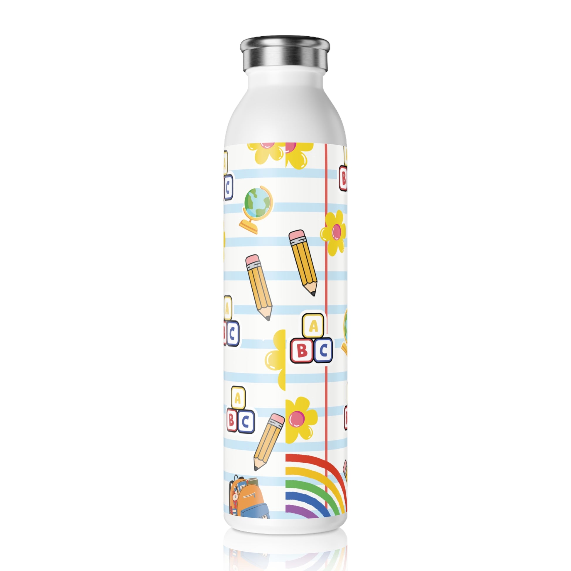 Stay hydrated in style with this sleek Back to School Slim Water Bottle. Crafted from durable stainless steel, it resists rust and staining, making it the perfect companion for your daily adventures. The double-wall construction keeps your drinks hot or cold for hours, ensuring you enjoy every sip at the perfect temperature. With a generous 20oz capacity, it's ideal for gym workouts, outdoor activities, or just keeping at your desk. The matte finish gives it a modern look, while the glossy print adds a touch of personality. Perfect for students, professionals, and anyone on the go, this water bottle is not just functional but also a fashionable accessory. Gift it during holidays or special occasions like back-to-school season, birthdays, or simply for someone who values hydration and style.