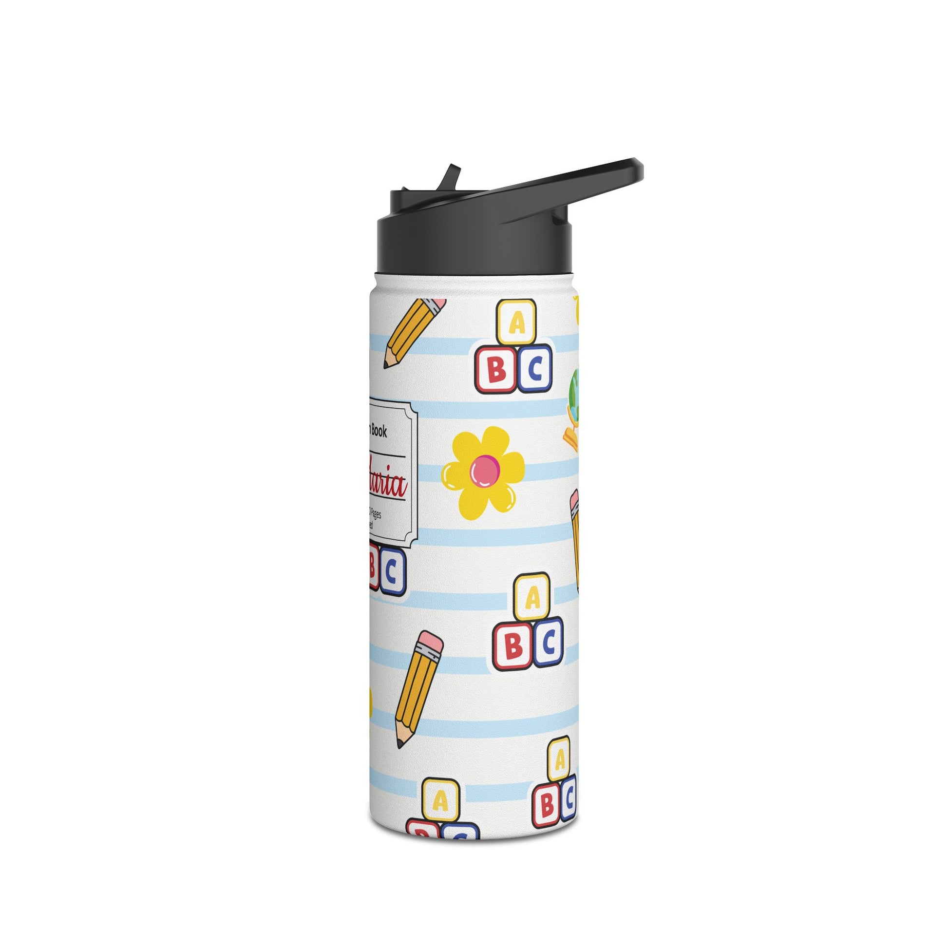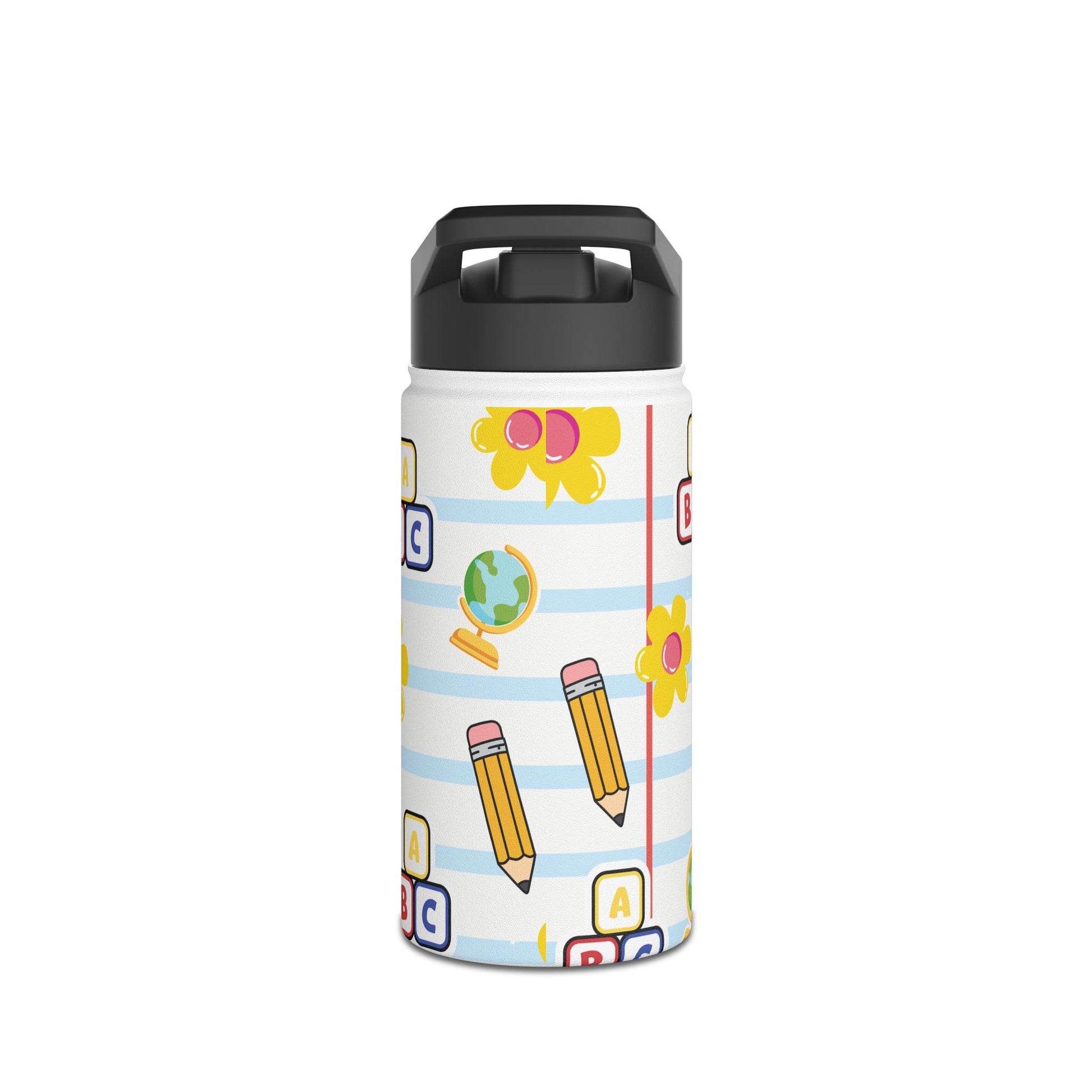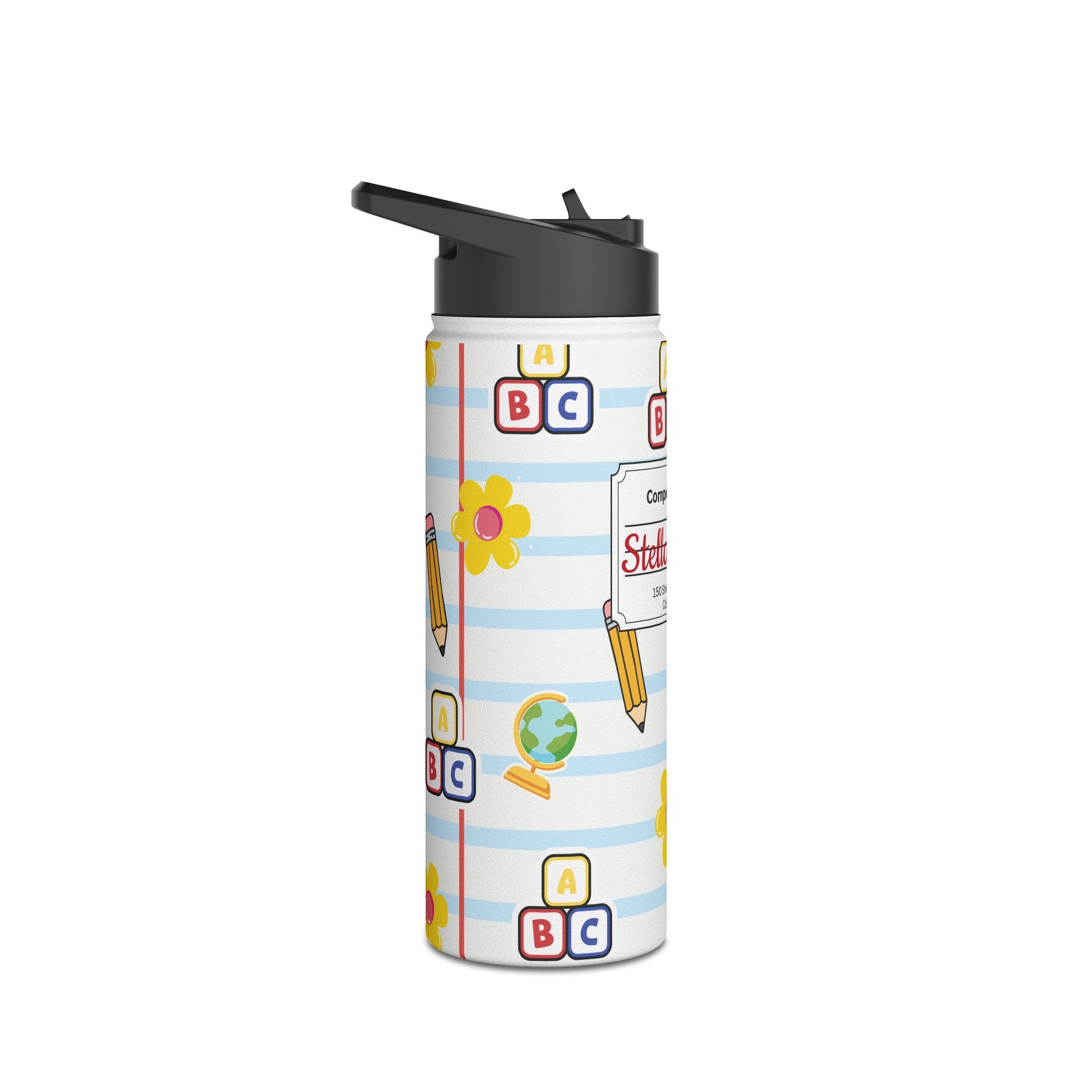 Personalized White Schoolyard Chic Inspired Stainless Steel Water Bottle for Kids, School Supplies, Eco-Friendly Drinkware, Back to School, Teacher Gifts