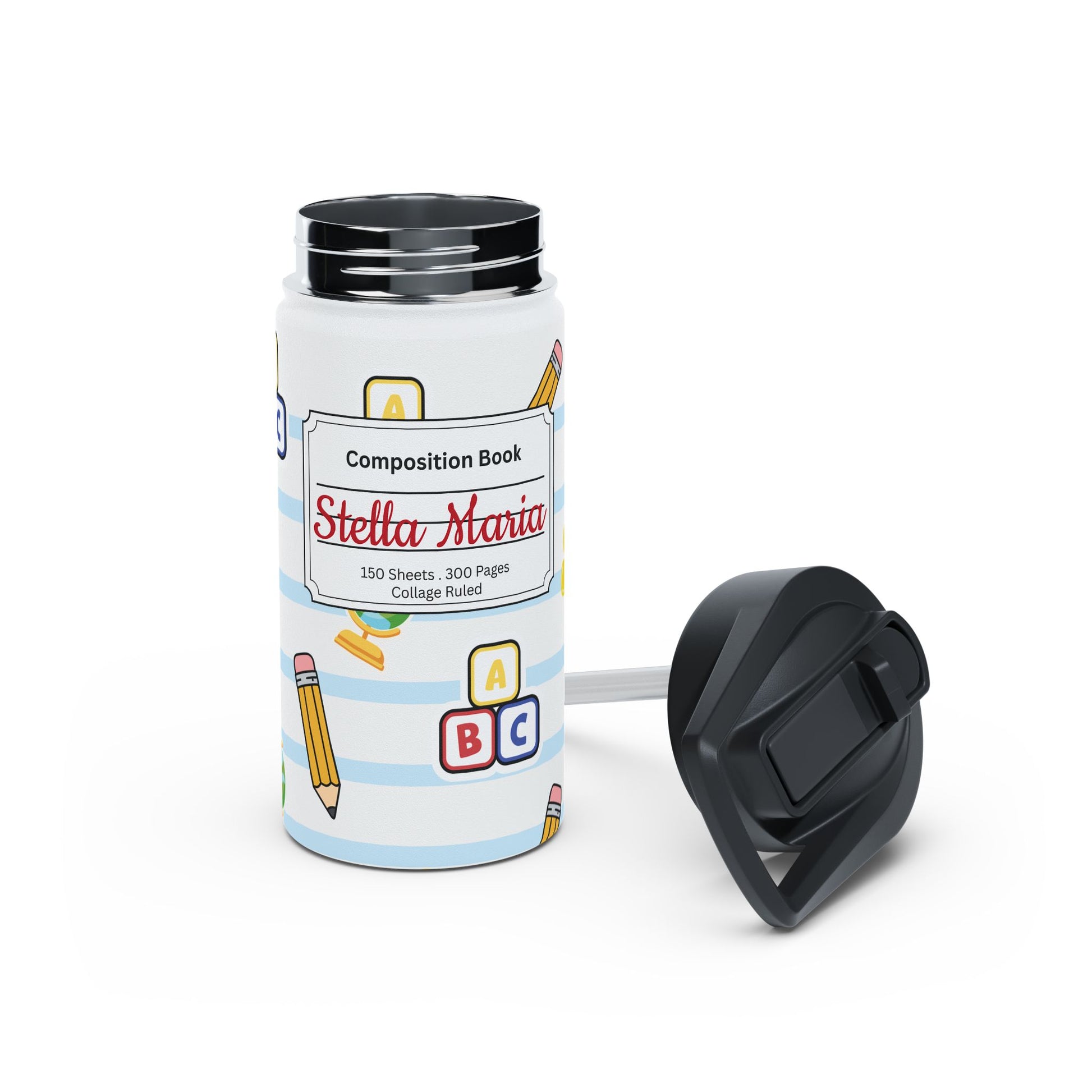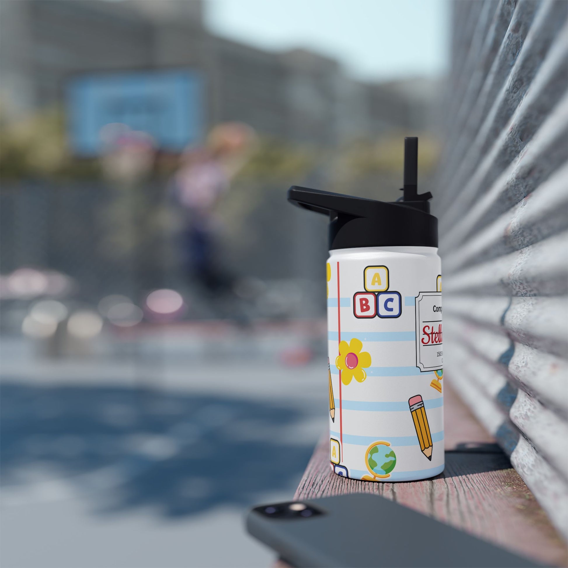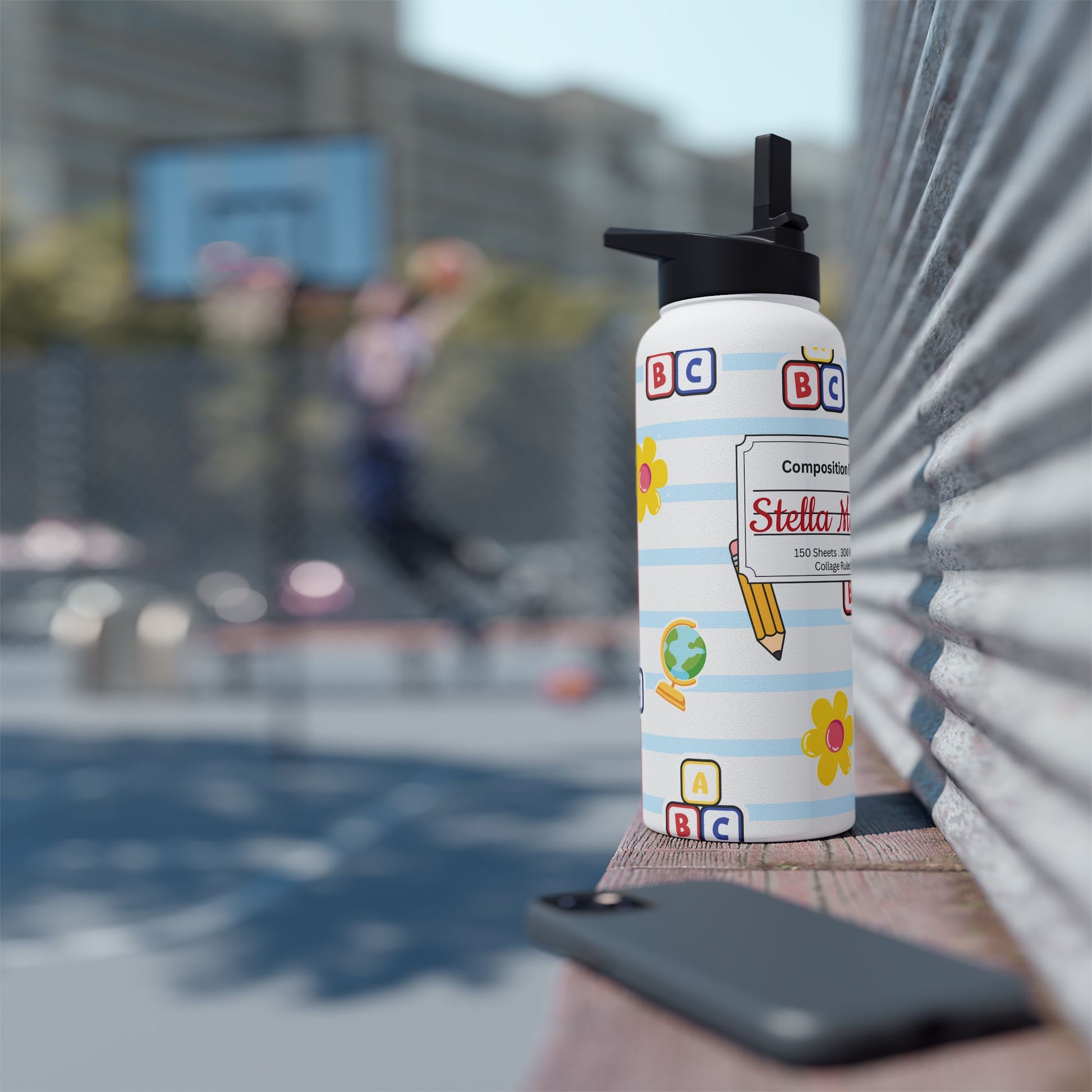 Personalized White Schoolyard Chic Inspired Stainless Steel Water Bottle for Kids, School Supplies, Eco-Friendly Drinkware, Back to School, Teacher Gifts