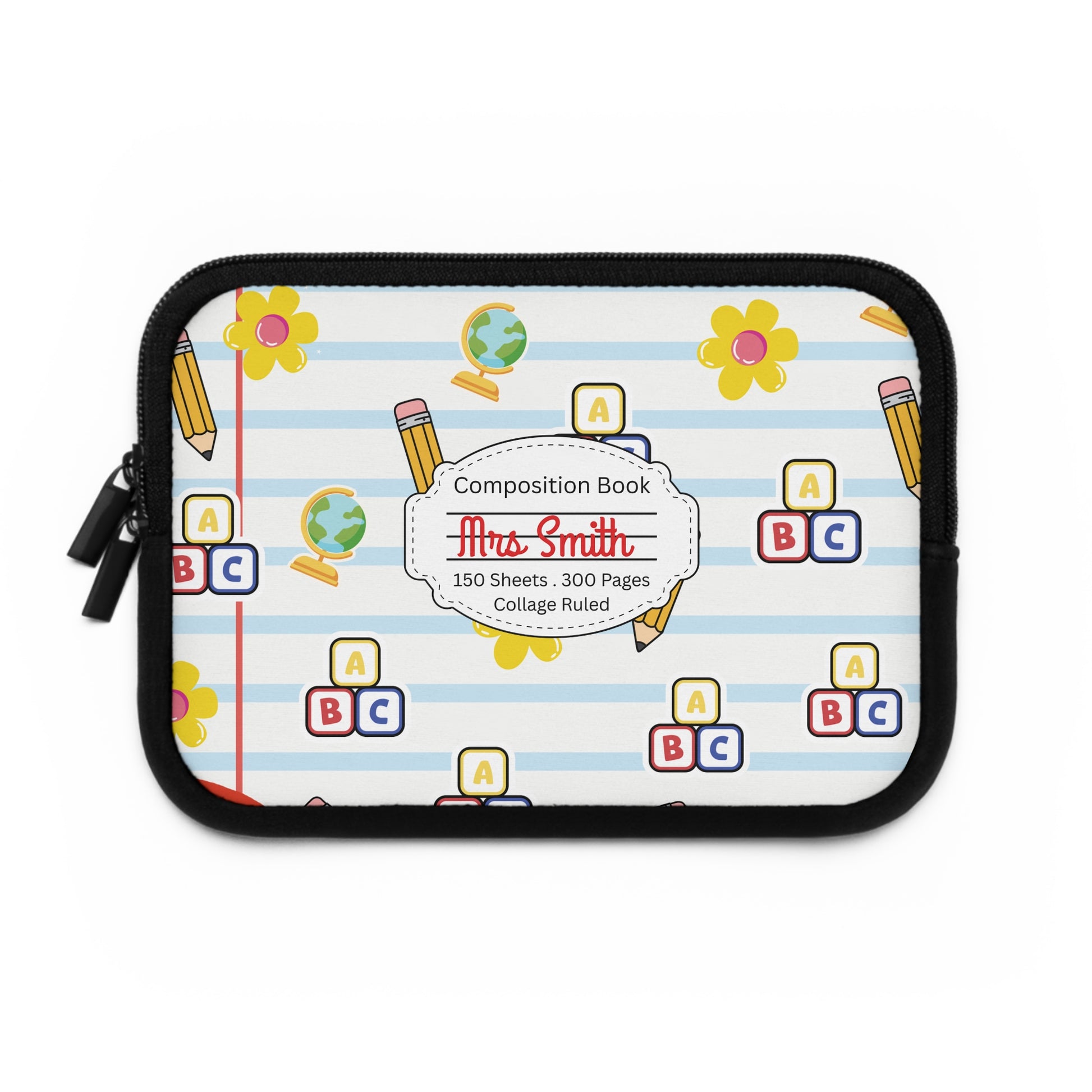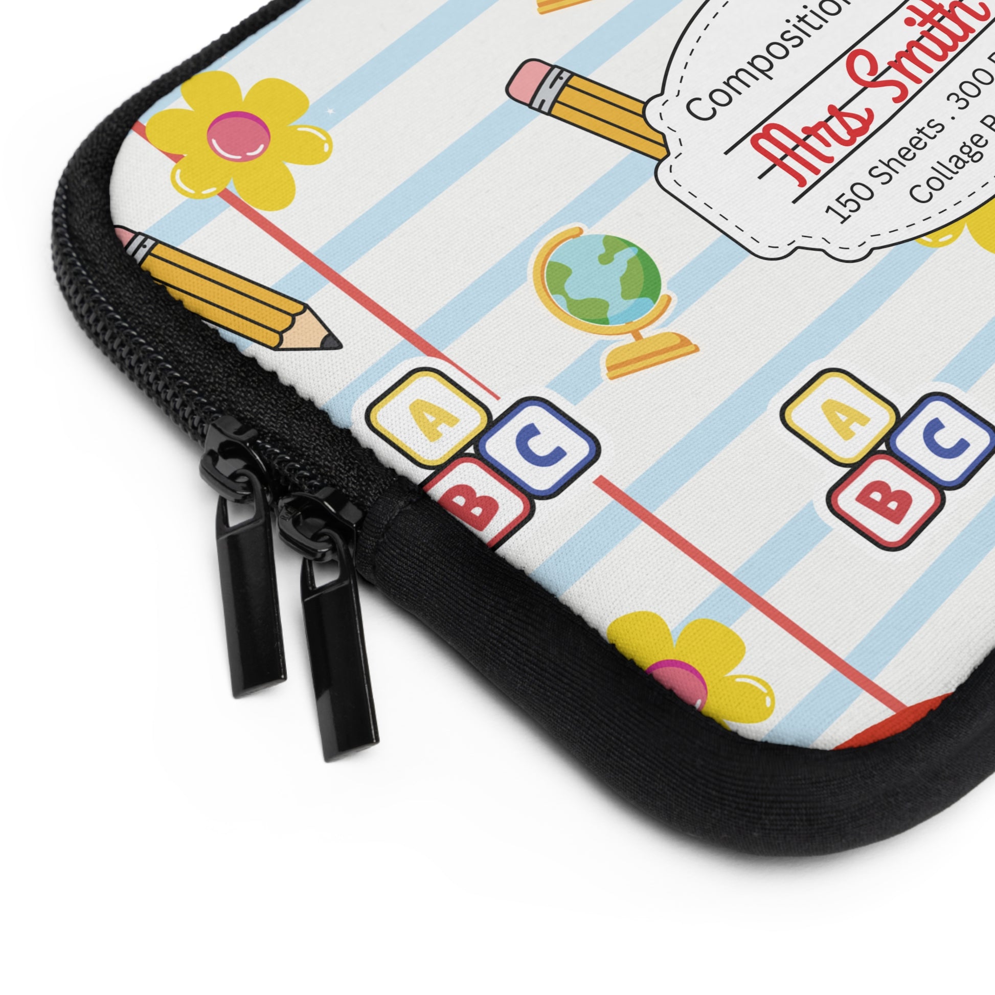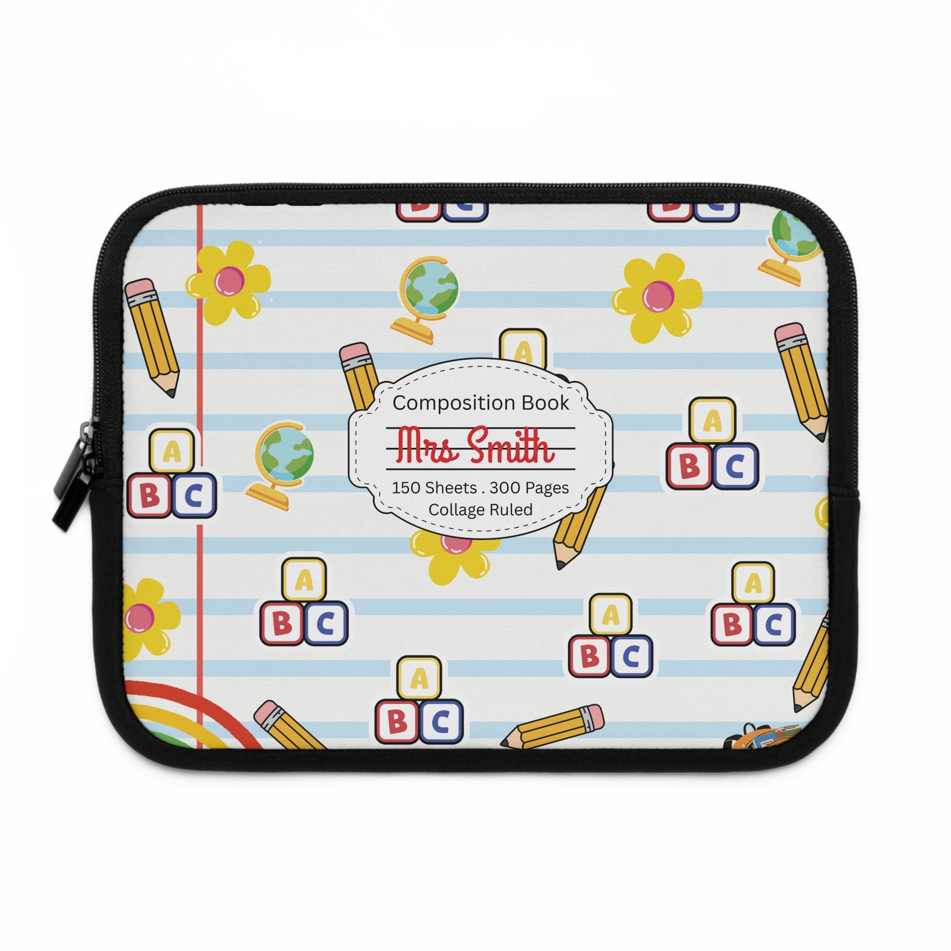 Personalized White SchoolYard Chic Laptop Sleeve with Composition Book Inspired Design, Customizable Tech Case, School Supplies, Gift for Students, College Essentials, Back to School