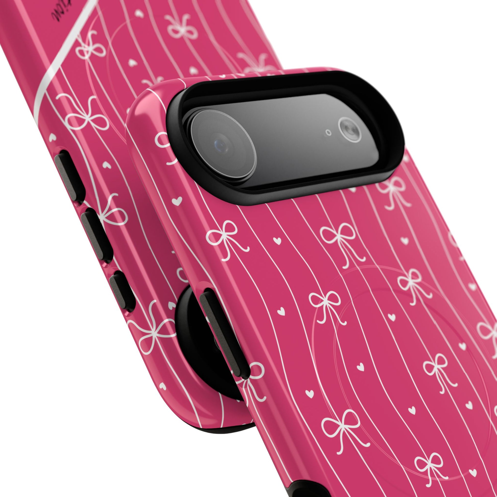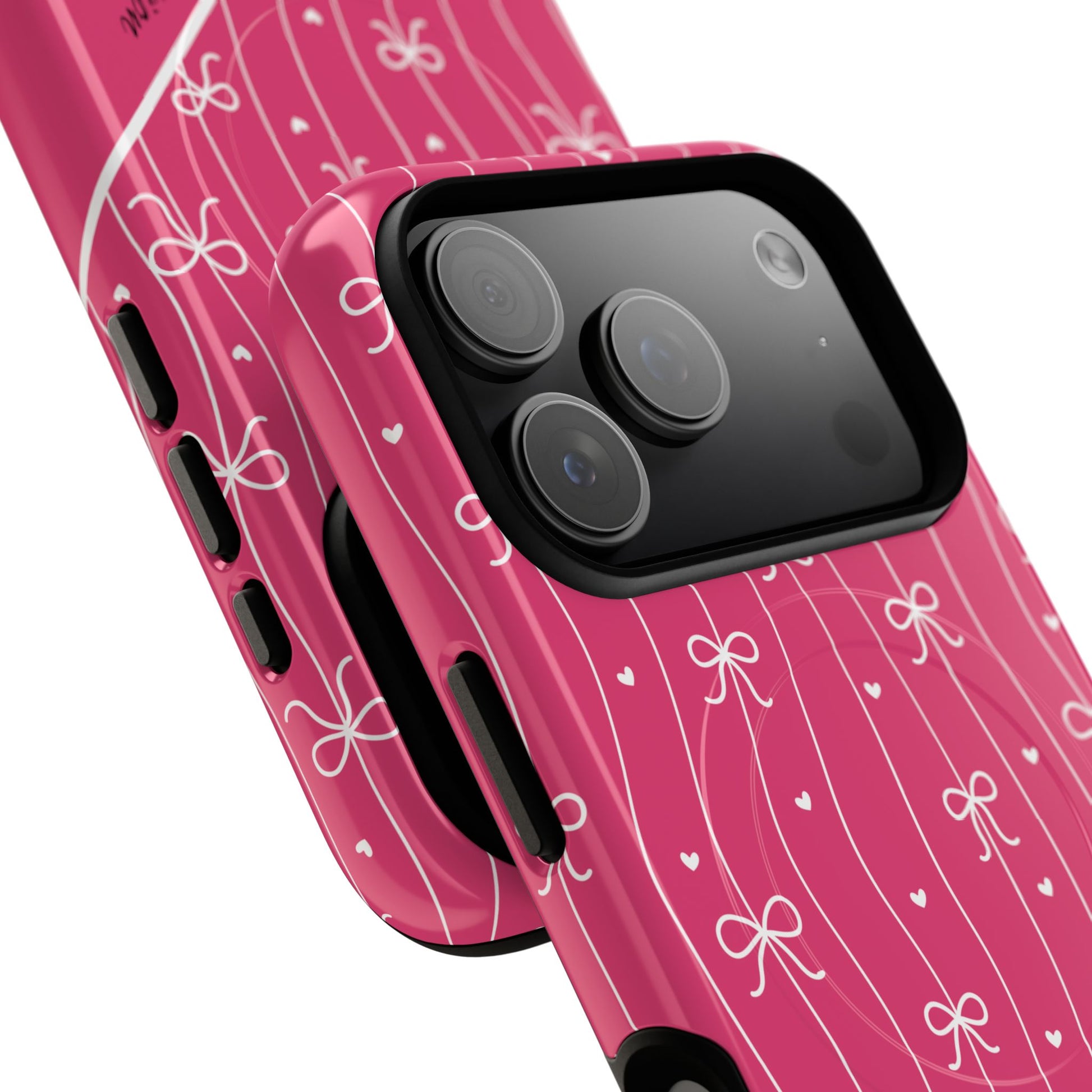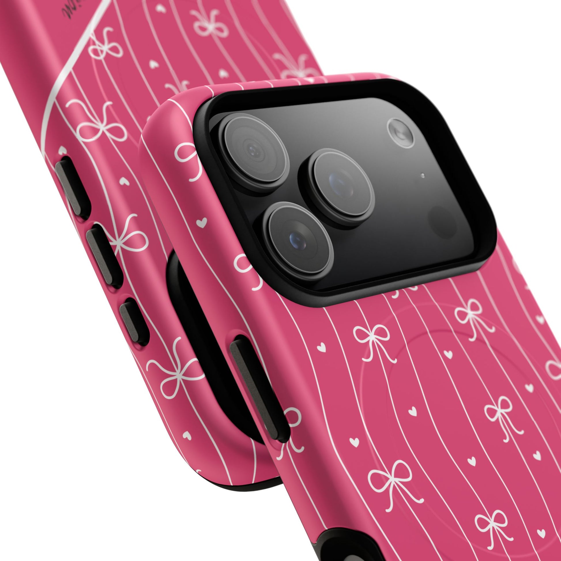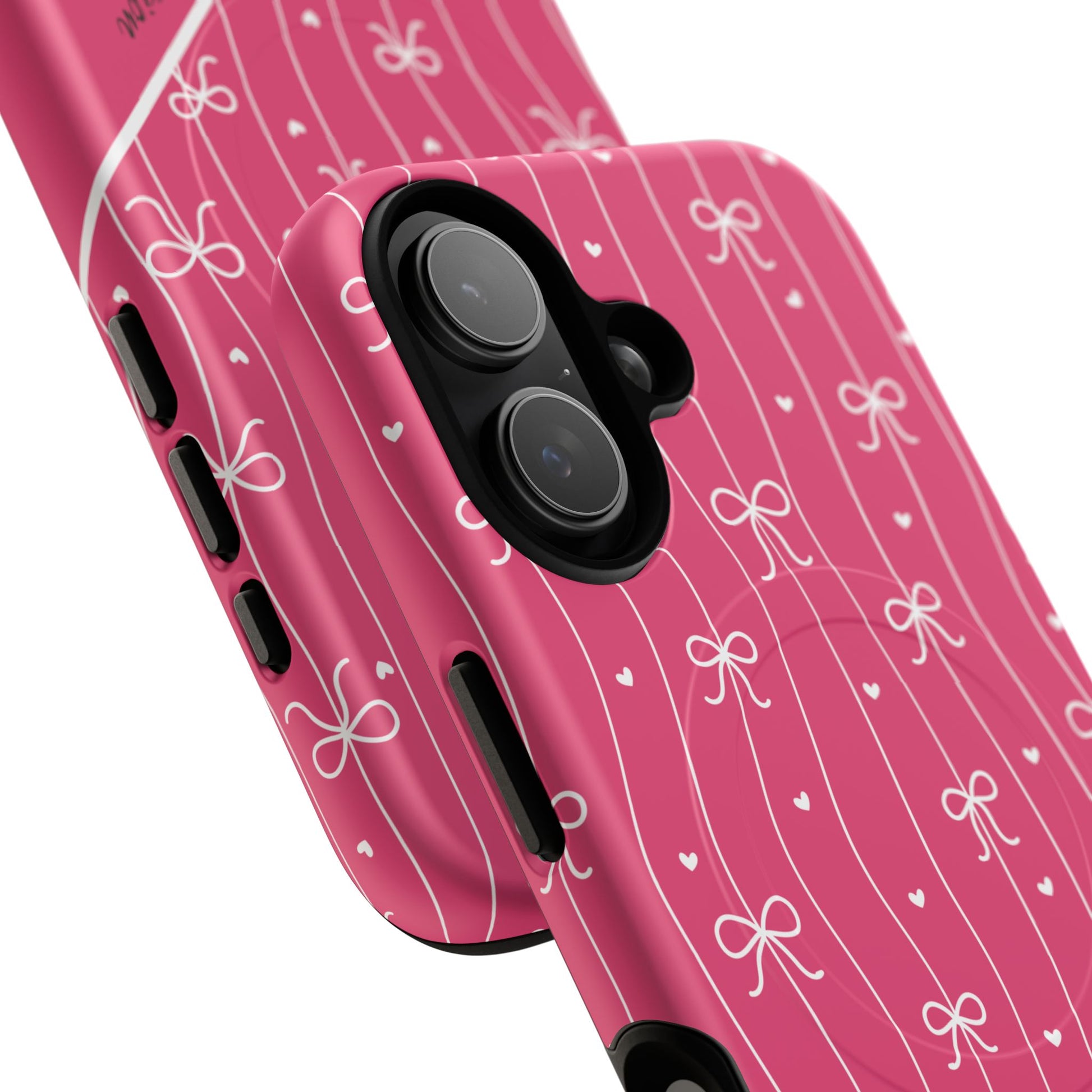 Pink Bow Coquette Magnetic Tough Magnetic MagSafe® Case — (Add Name or Affirmation)-iPhone® 13, 14, iPhone 15, iPhone 16, iPhone 17, Pro, Pro Max, Plus Cases.