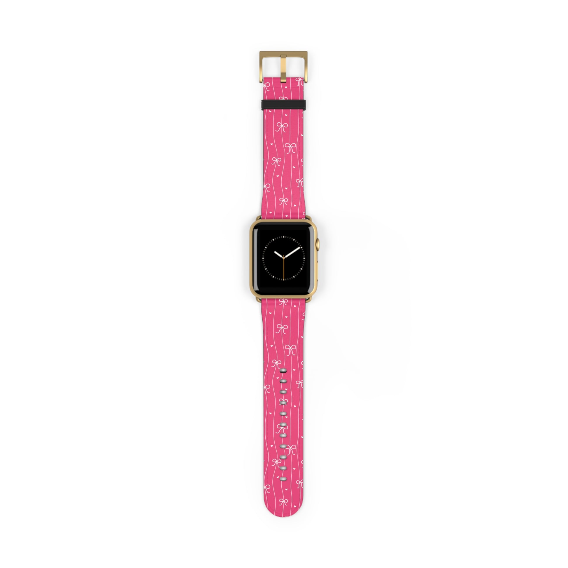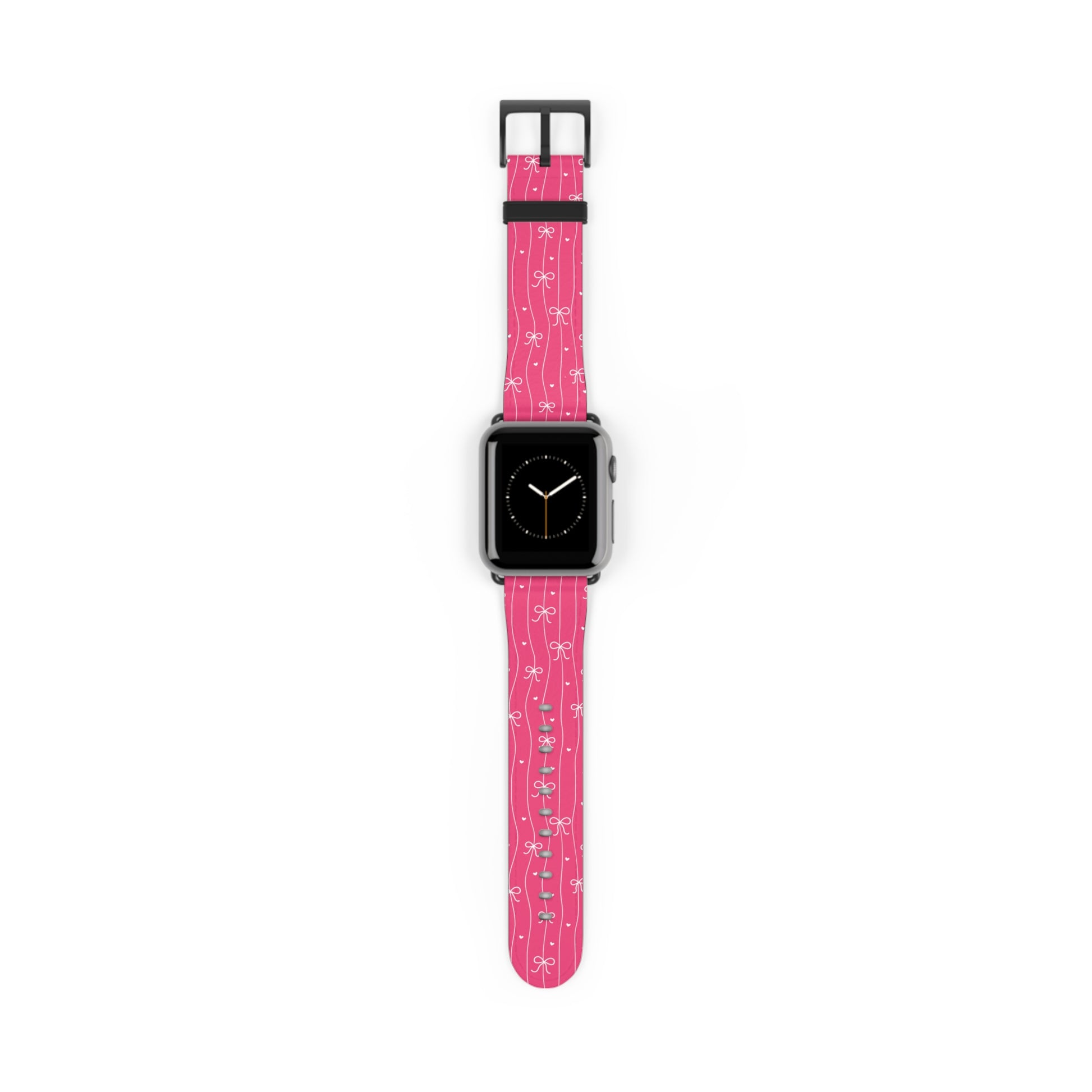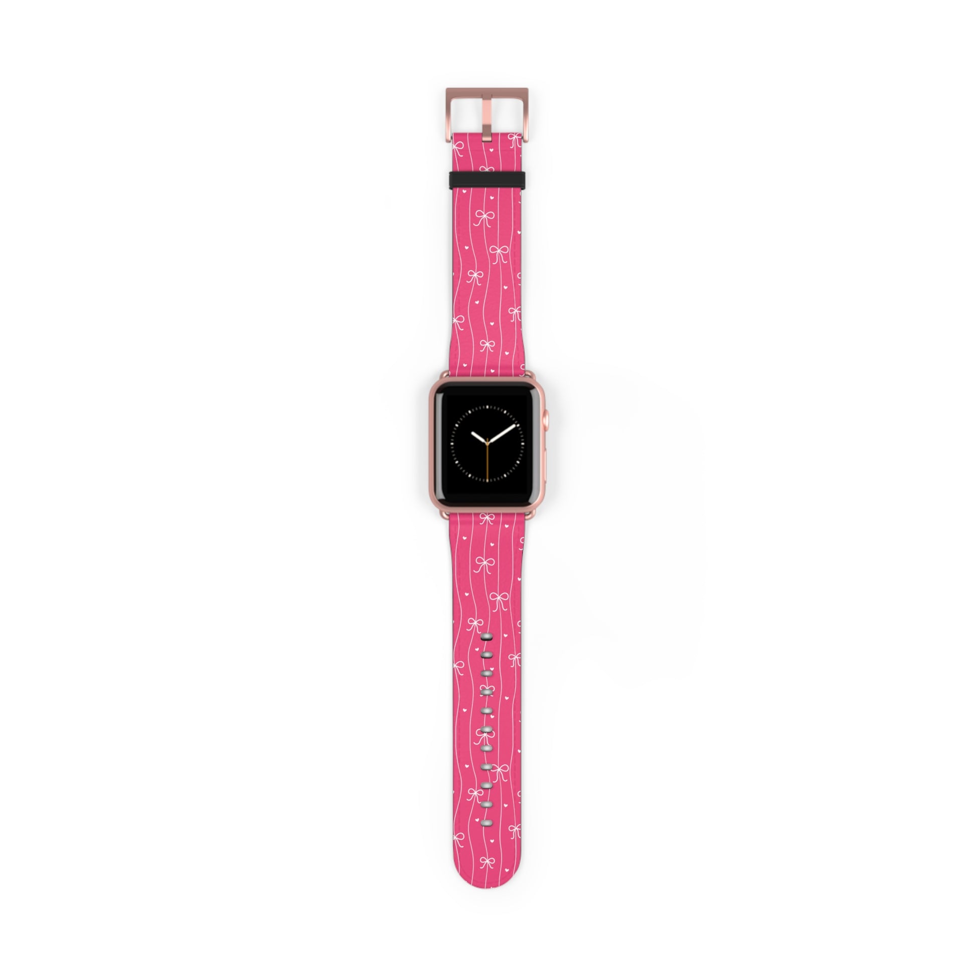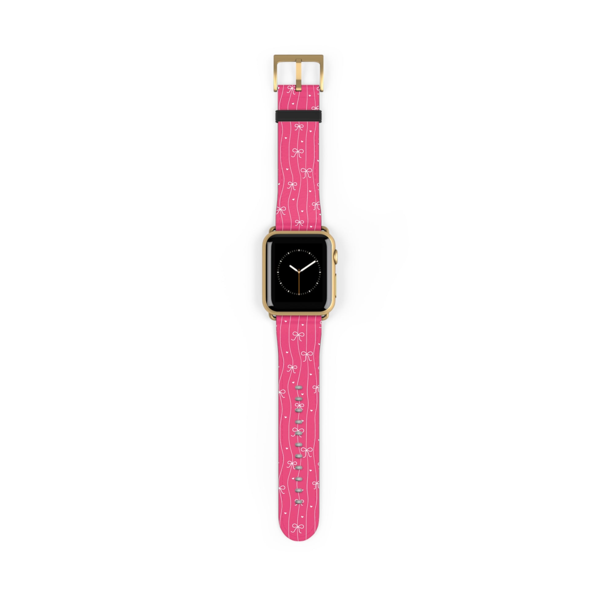 Pink Bow Coquette Watch Band ONLY — Cute Ribbon-Stripes Apple Watch Strap