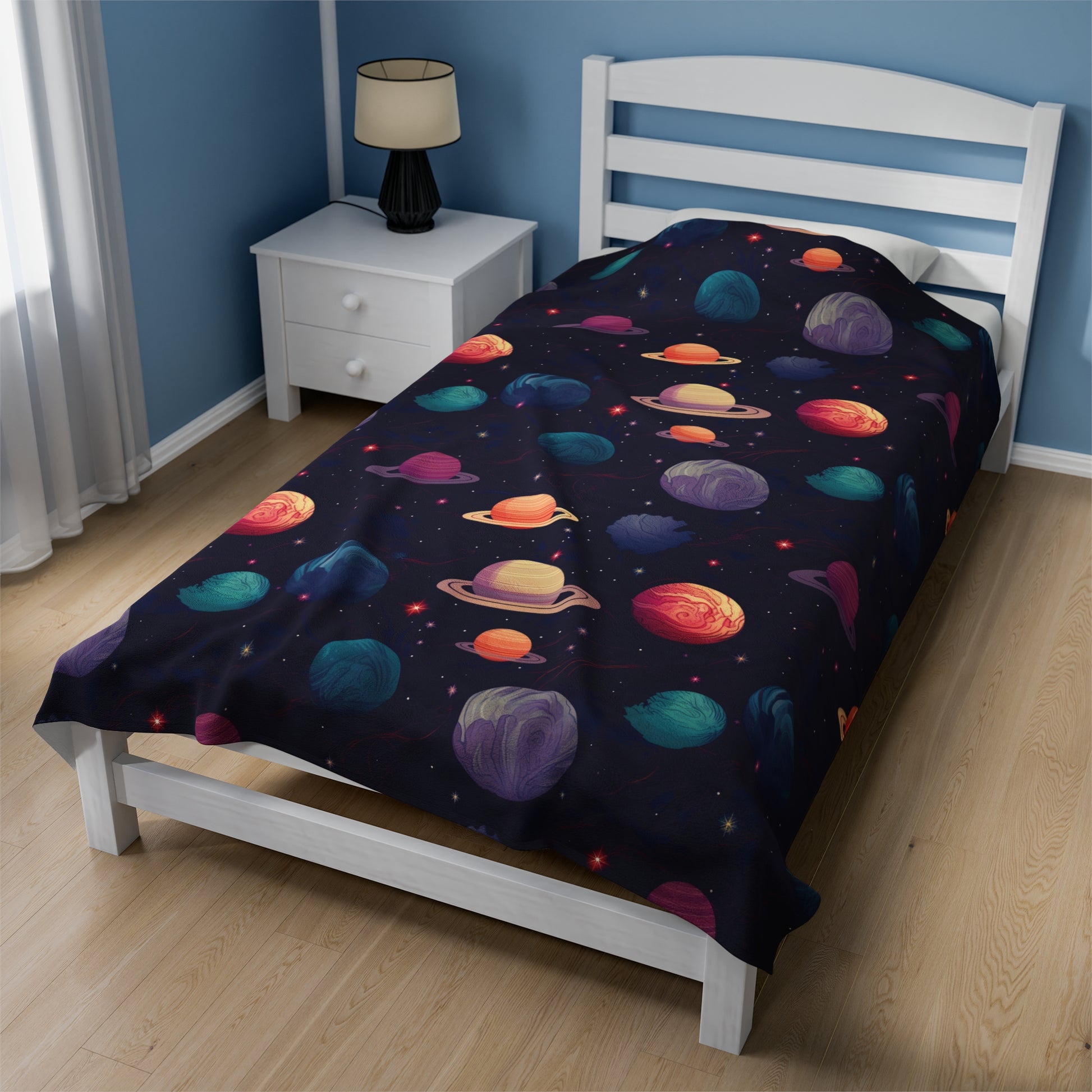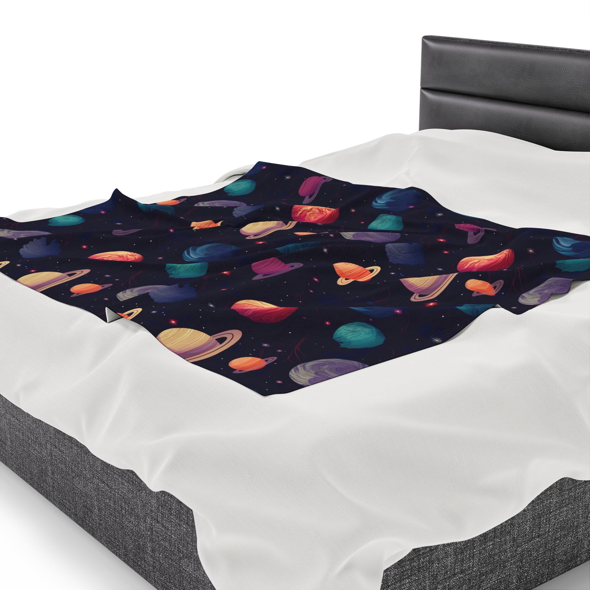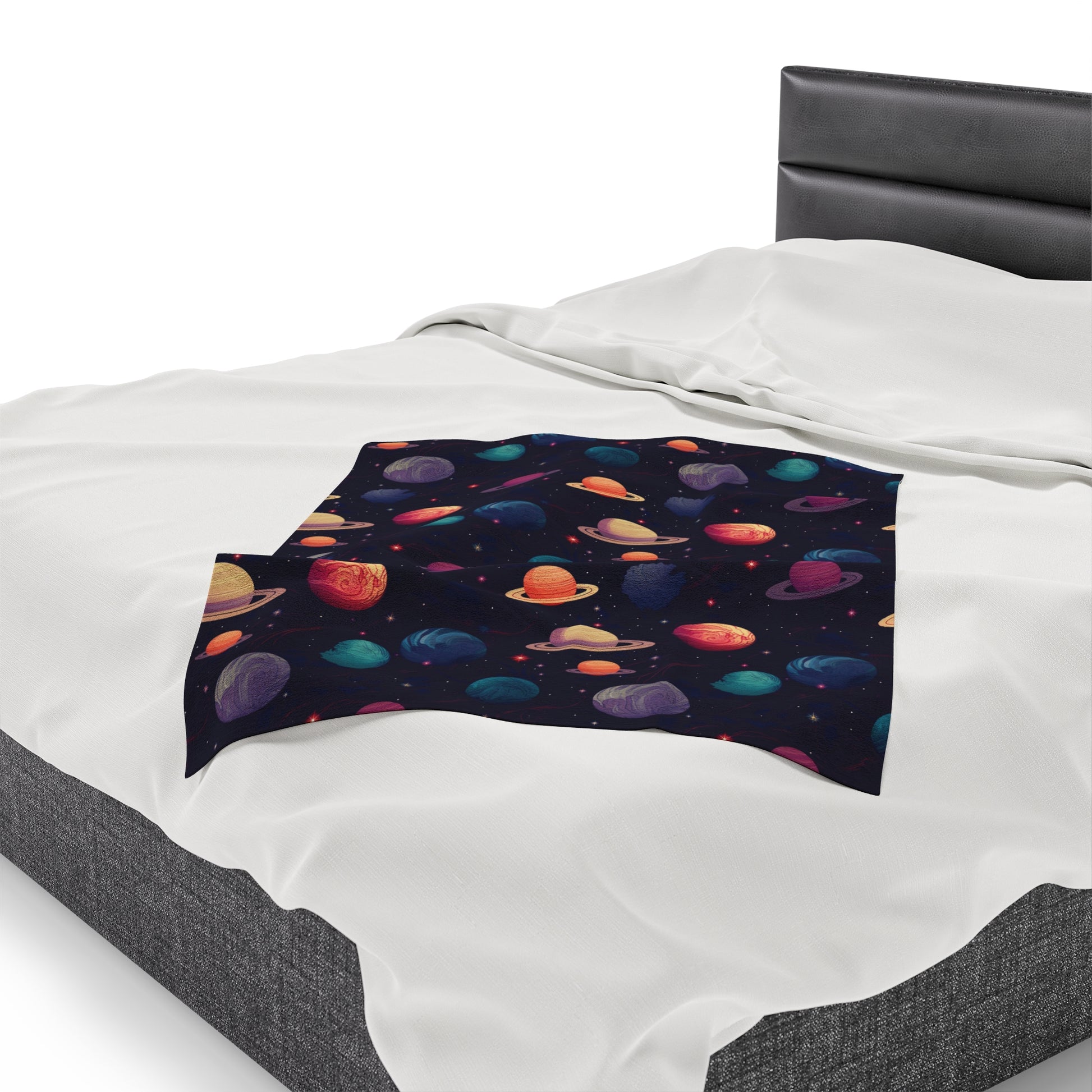 Create a cozy and warm atmosphere at home with this Galactic Dreams Plush Velveteen Blanket. Soft to touch and perfect for any home, customize with a one-sided print for a personal touch or as a gift for friends and family. Relevant for home decor, gift-giving occasions, and cozy nights in.