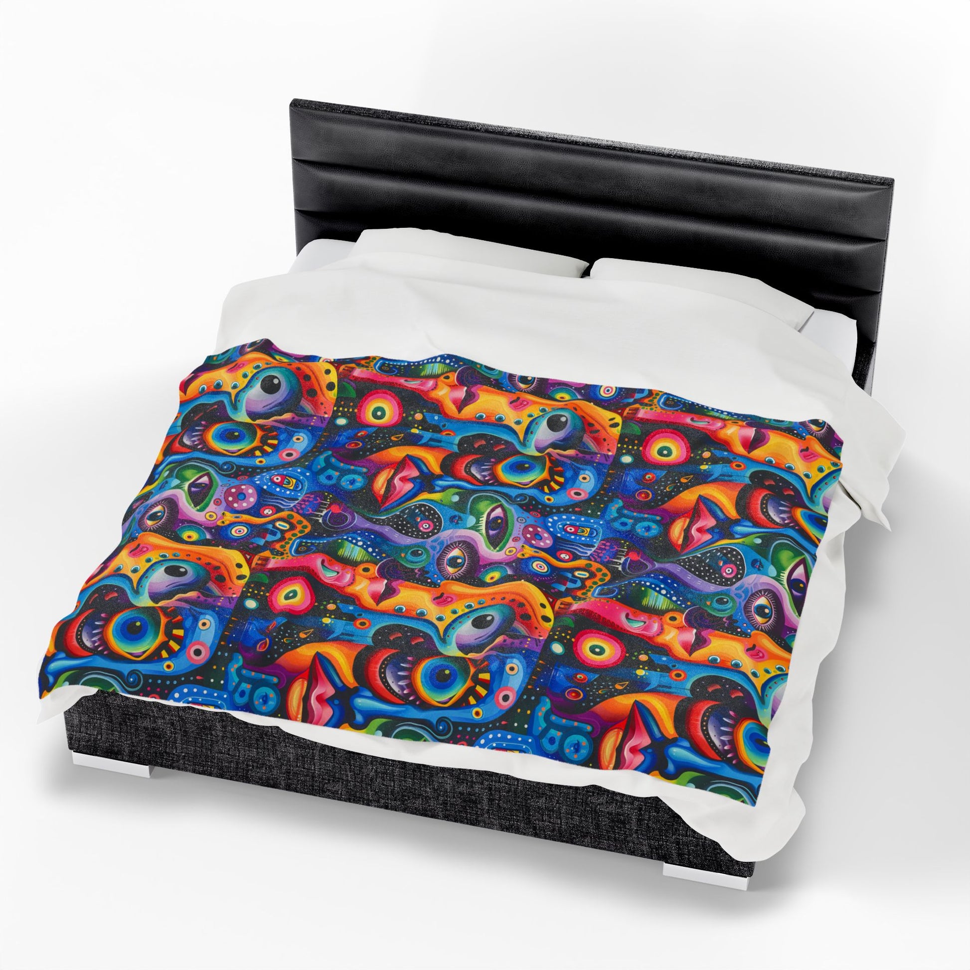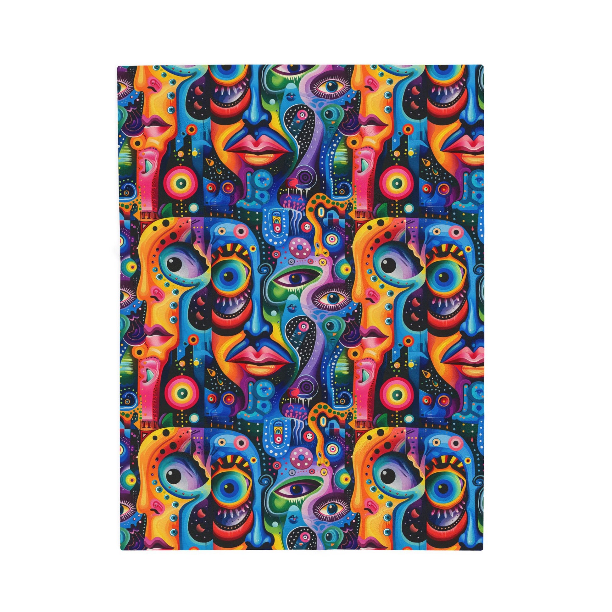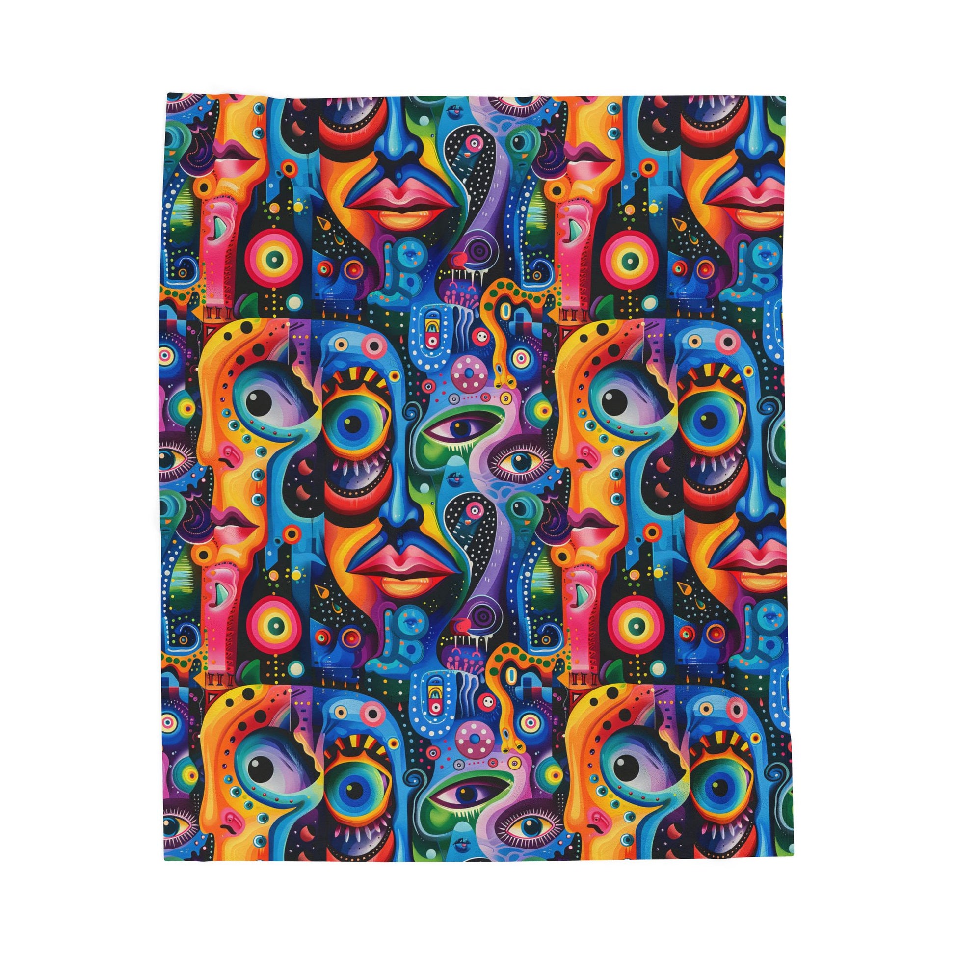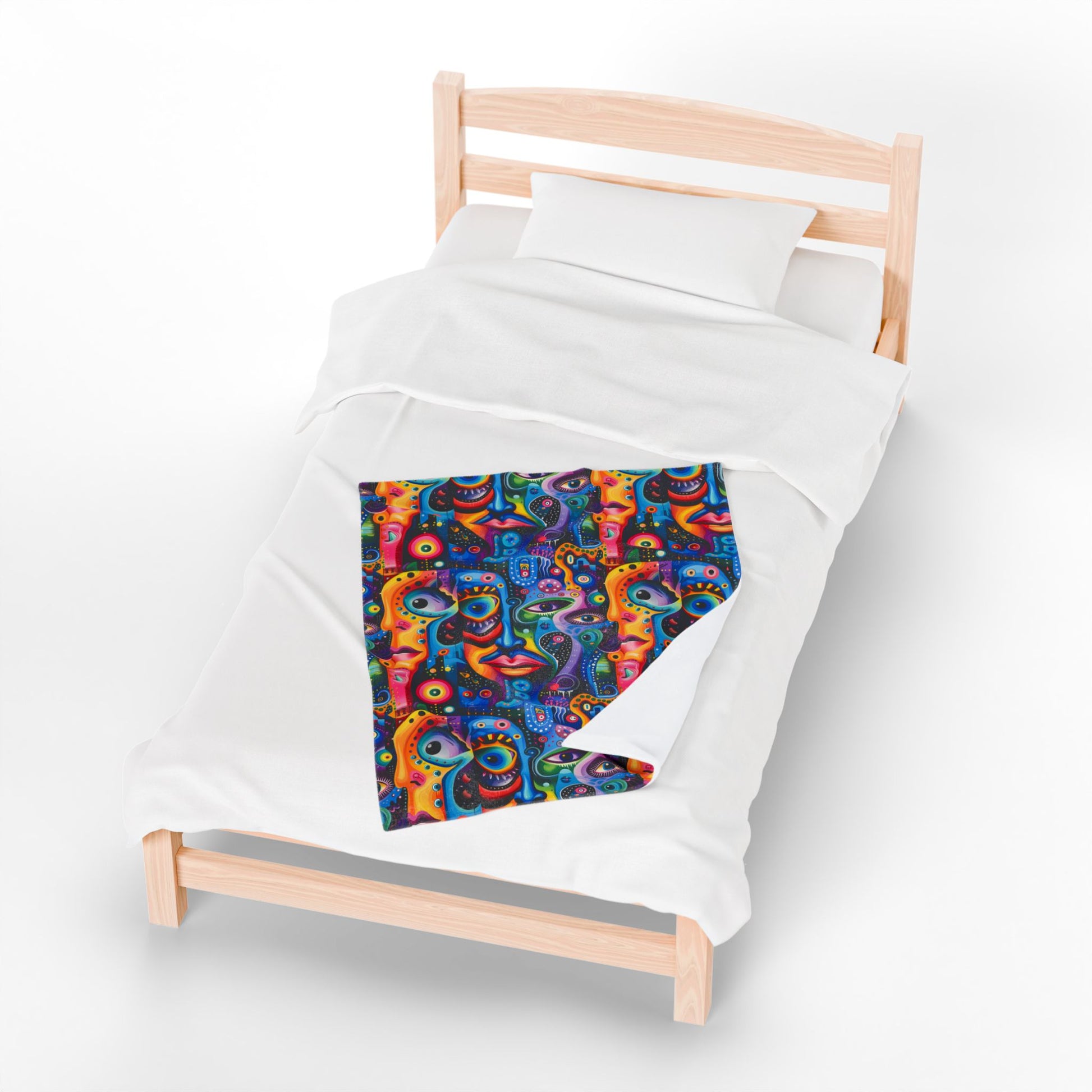 Psychedelic Visions Vibrant Abstract Faces Velveteen Plush Blanket