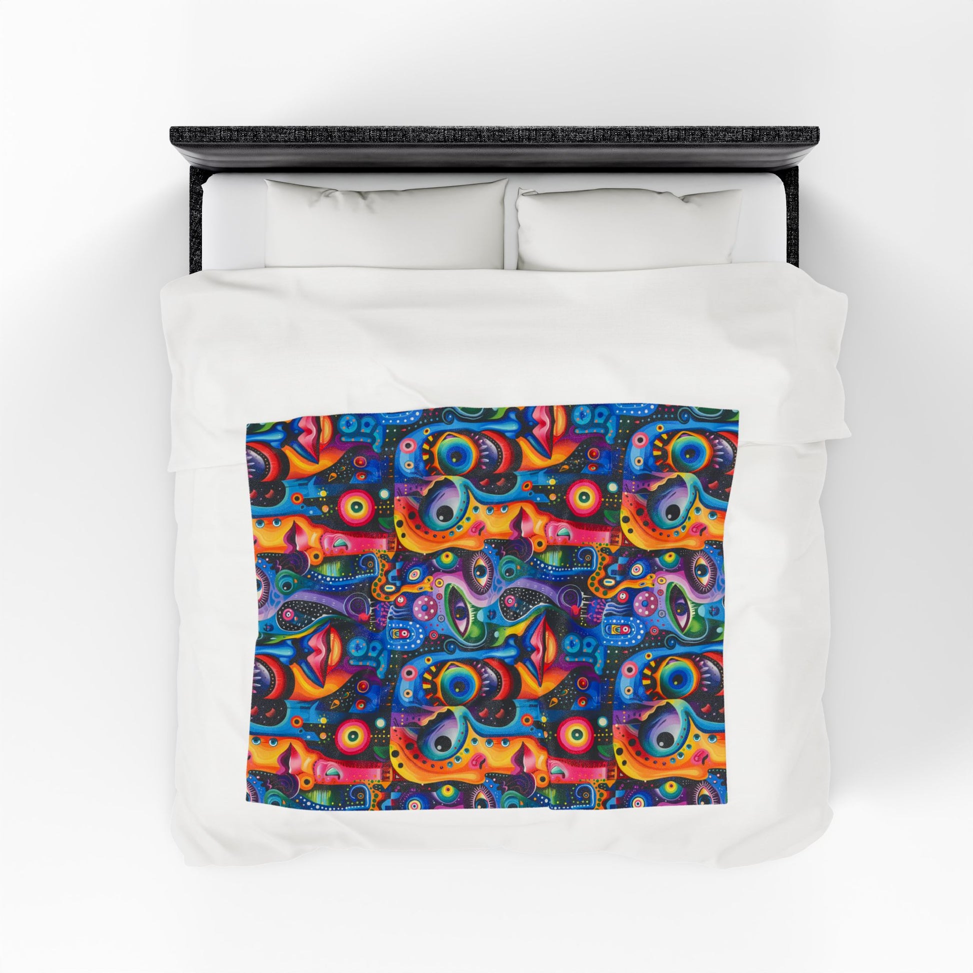 Wrap yourself in comfort and style with our plush velveteen blanket. This cozy addition adds a touch of warmth to any space, perfect for snuggling up during chilly evenings. The vibrant, artistic design makes it a statement piece in your living room or bedroom, transforming your home into a haven of creativity and comfort. Ideal for art lovers and anyone who appreciates unique decor, it serves as the perfect gift for birthdays, housewarmings, or just because. Celebrate holidays like Christmas or cozy nights in with friends and family, where this blanket will surely impress. Whether it's movie night or a lazy Sunday morning, this blanket delivers unparalleled softness and style to complement your lifestyle.