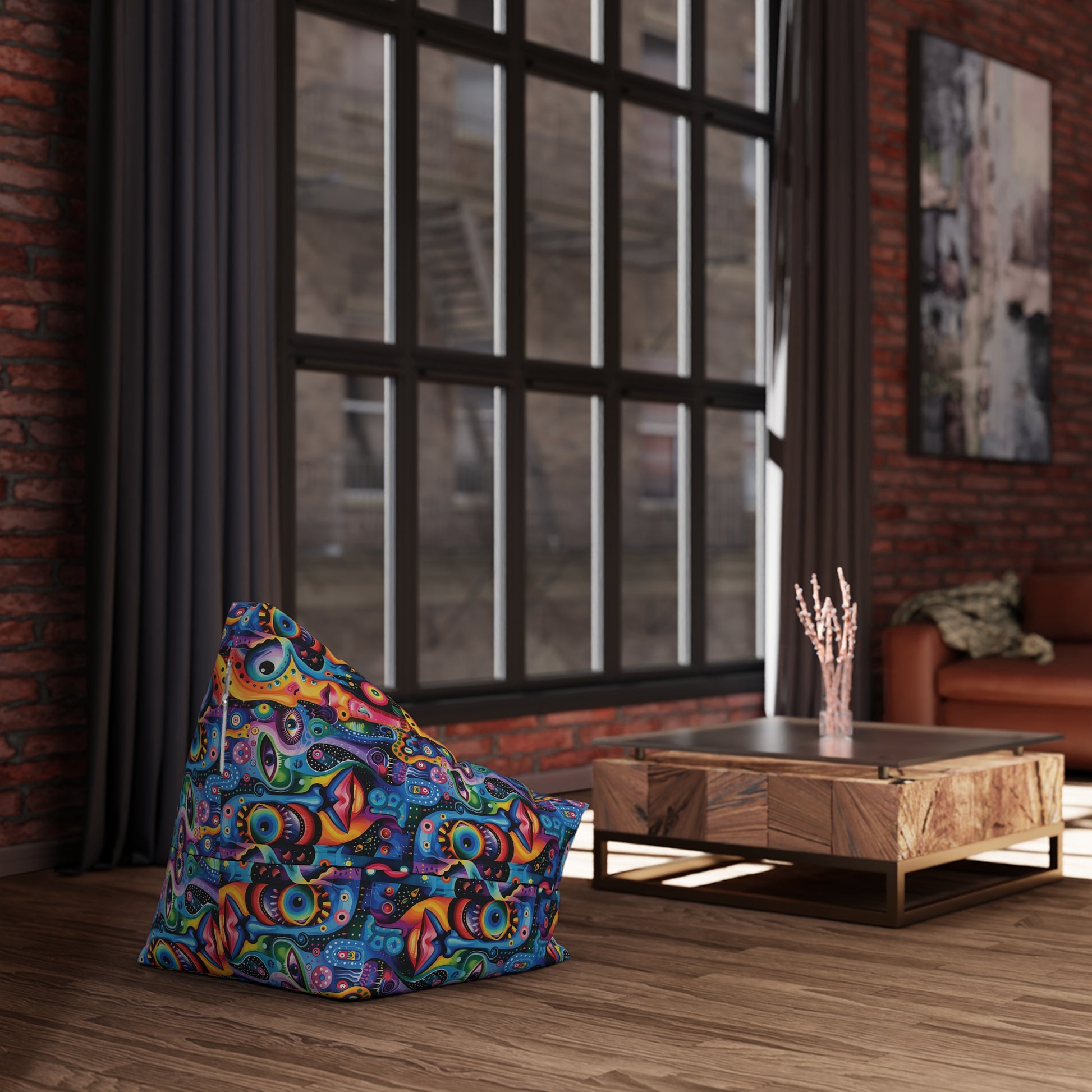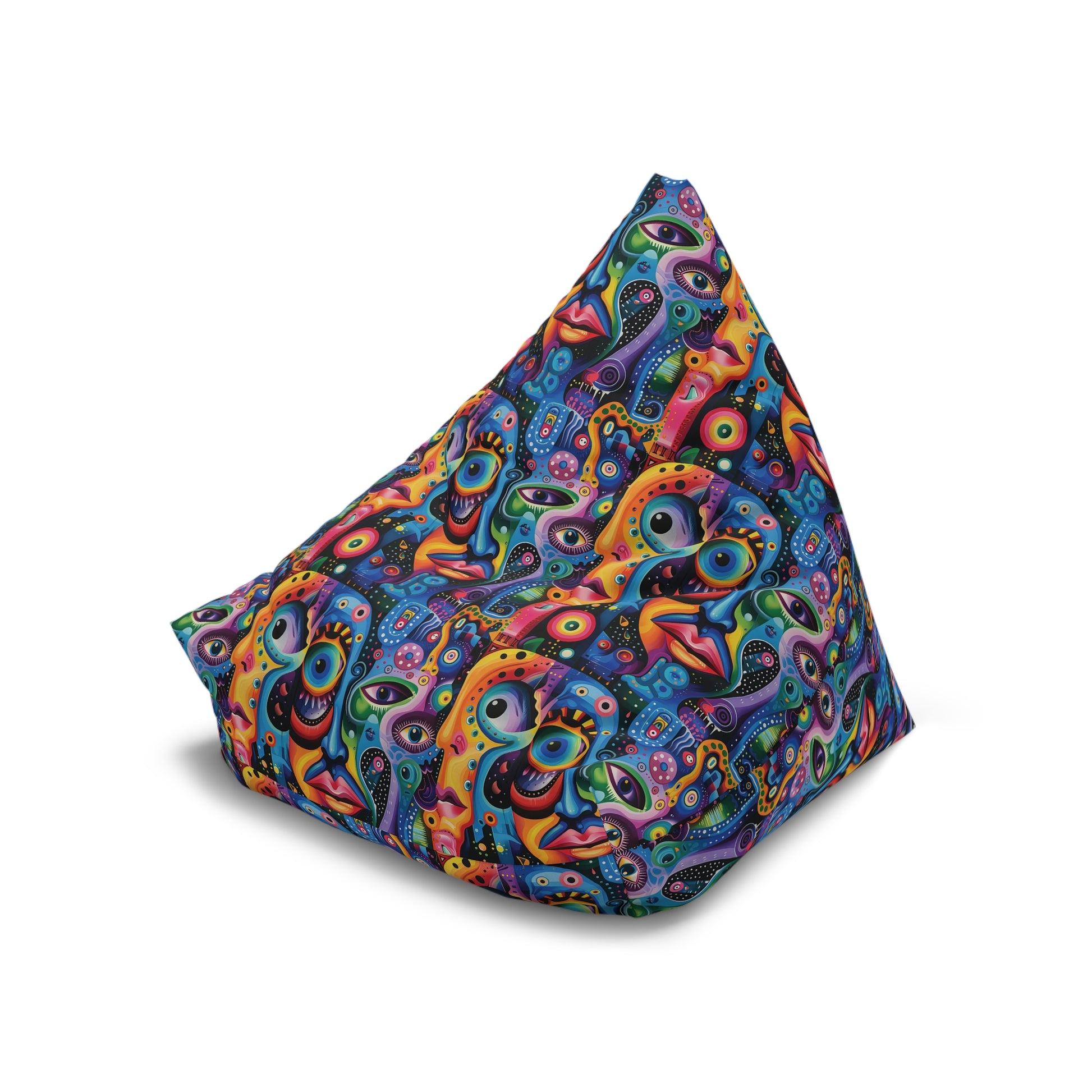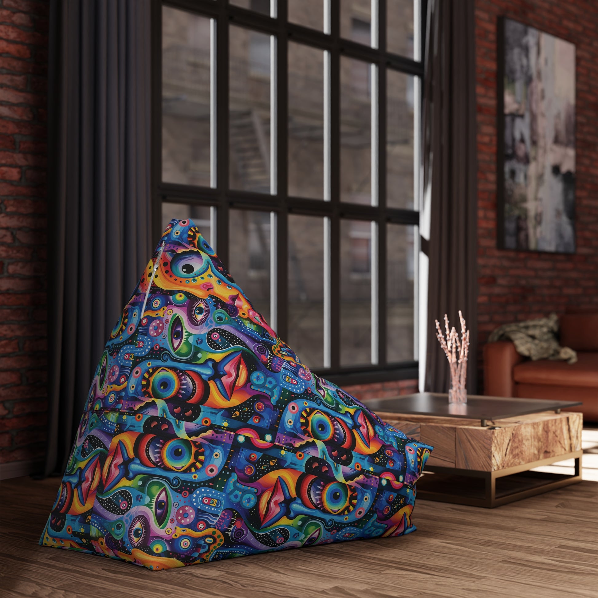 Psychedelic Visions Vibrant Artistic Bean Bag Chair Cover - Colorful Abstract Design for Cozy Spaces
