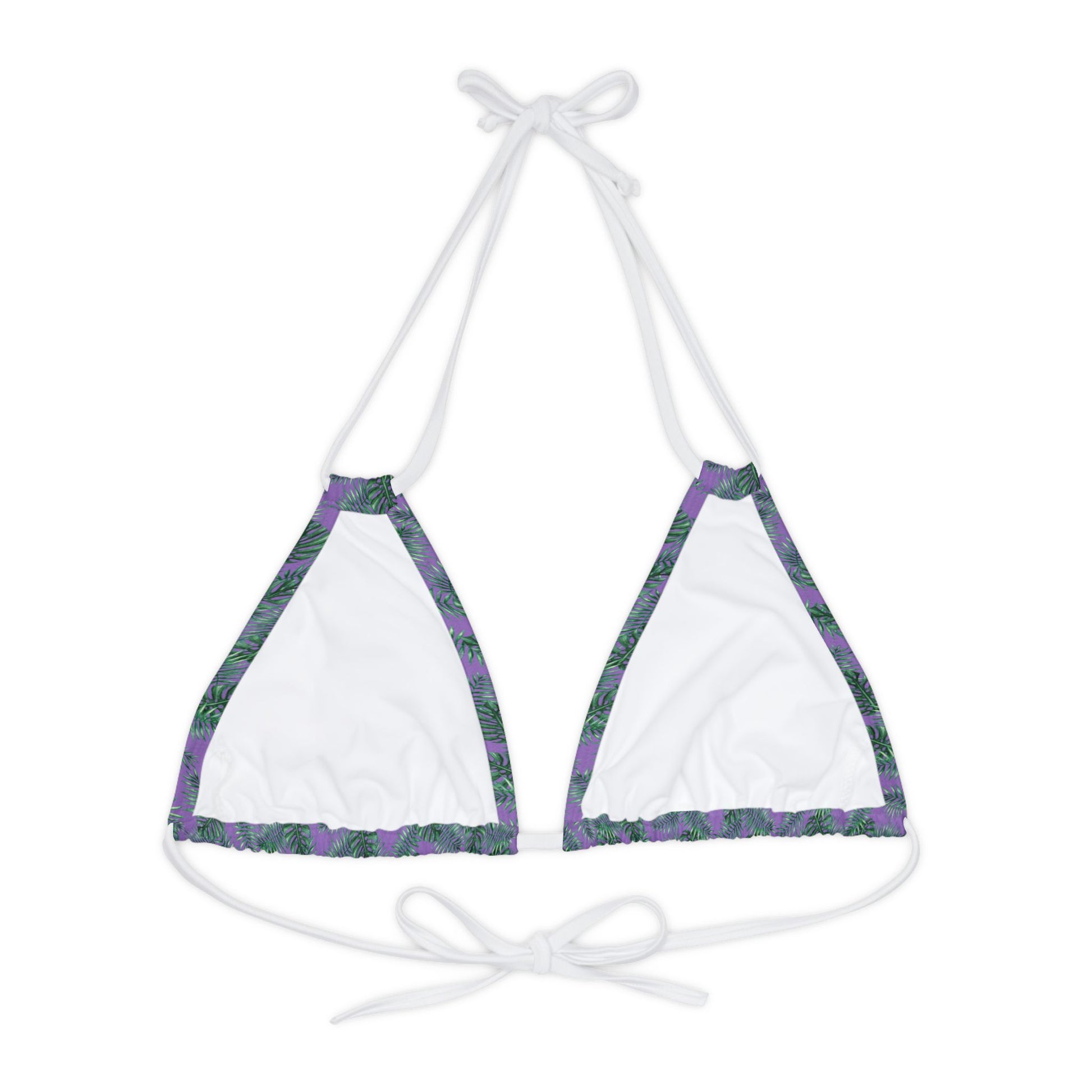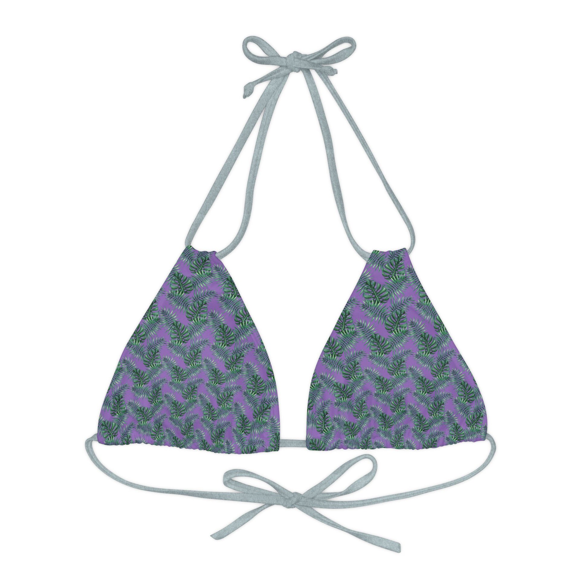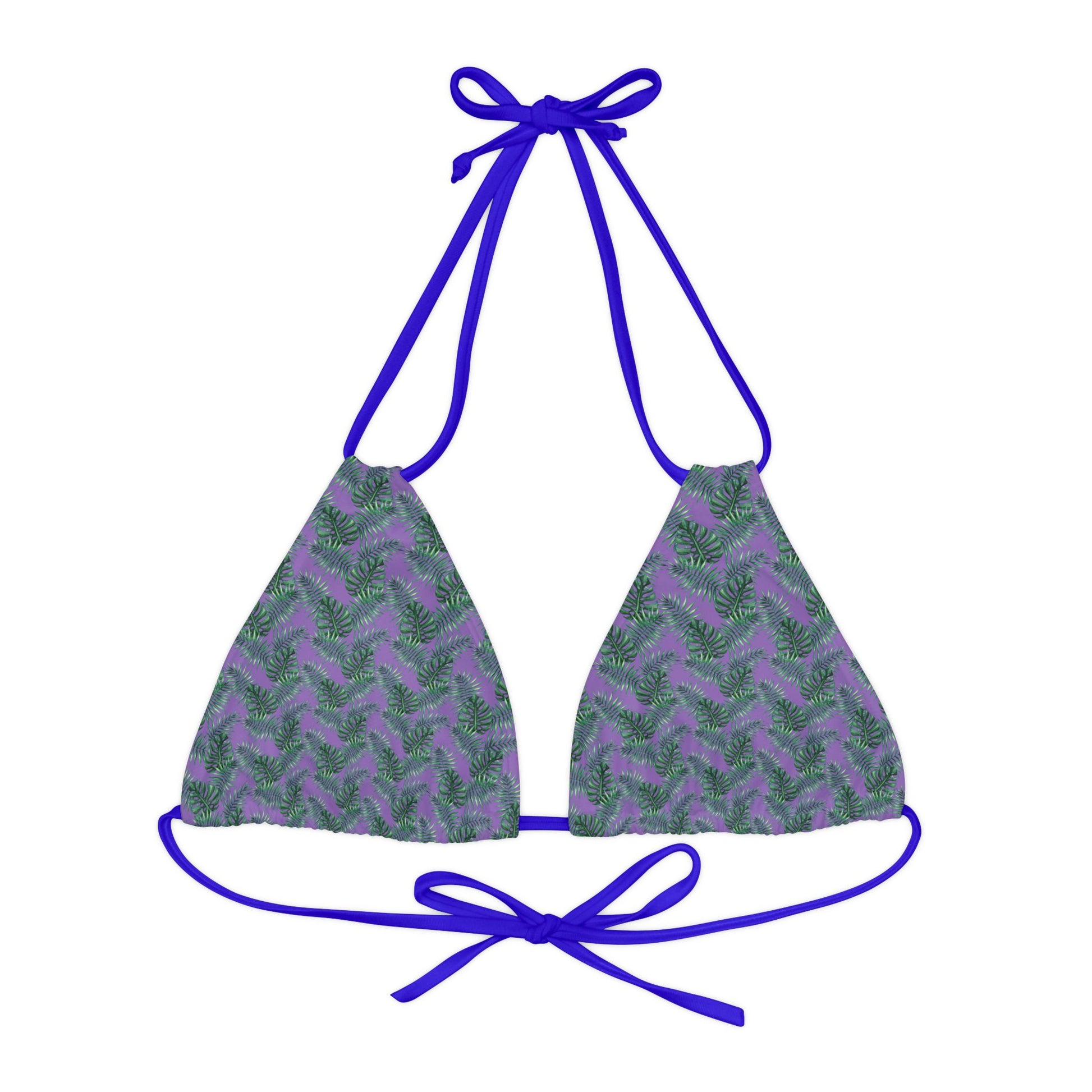 Purple Tropical Bliss Strappy Triangle Bikini Top (AOP)- (PY)