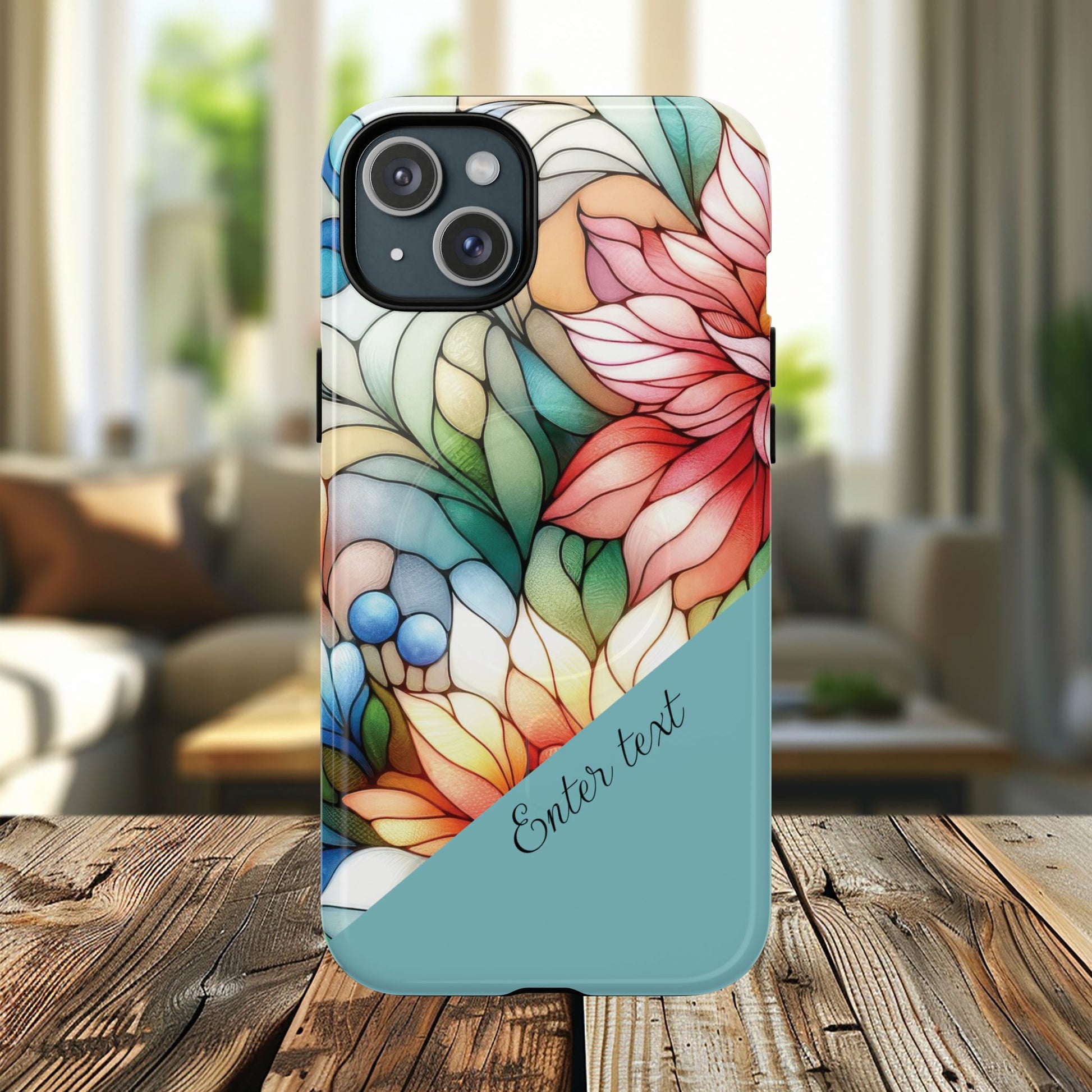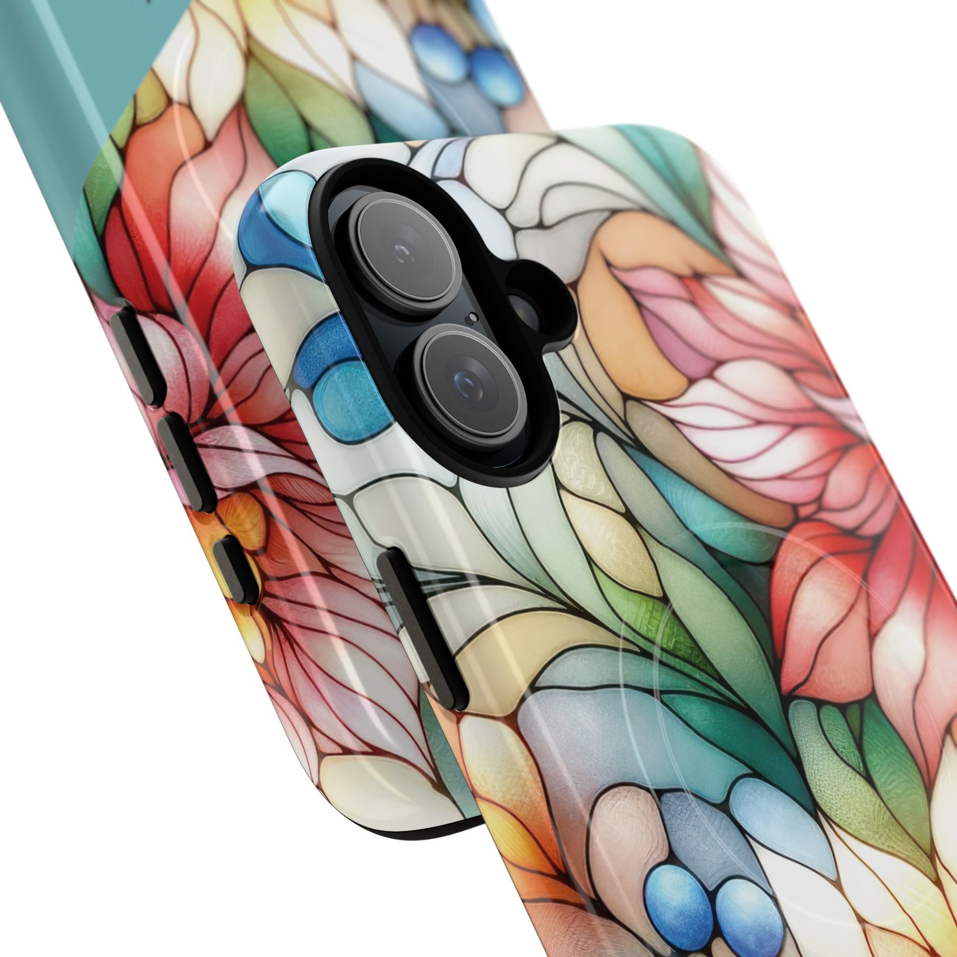 Personalized Radiant Gardenlight Stained Glass Tough MagSafe Magnetic Case, Vibrant Flower Cover, Durable Protective Case, Unique Gift for Her, Spring Elegance, iPhone® 13, 14, 15, 16, 17, Pro, Pro Max, Plus Cases.