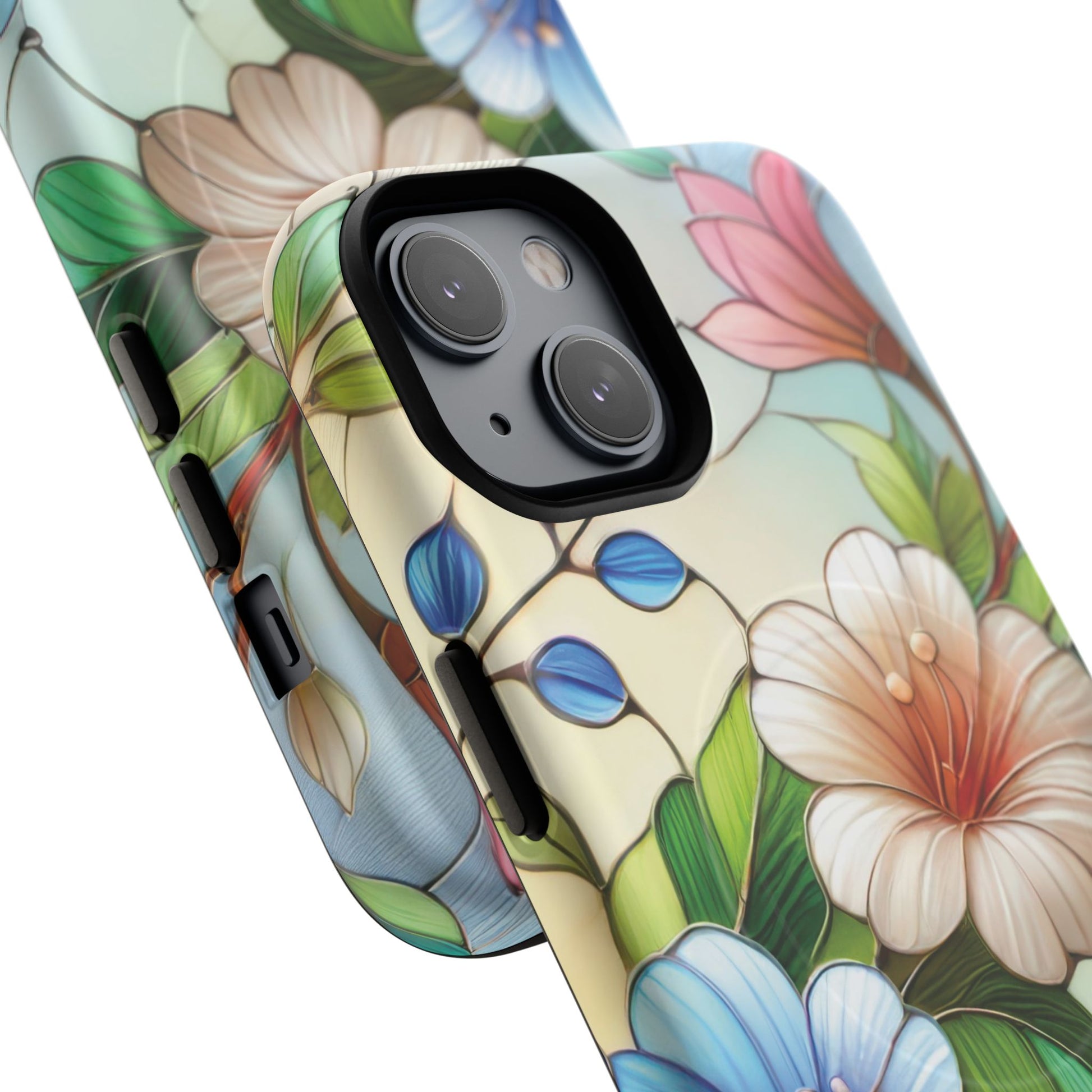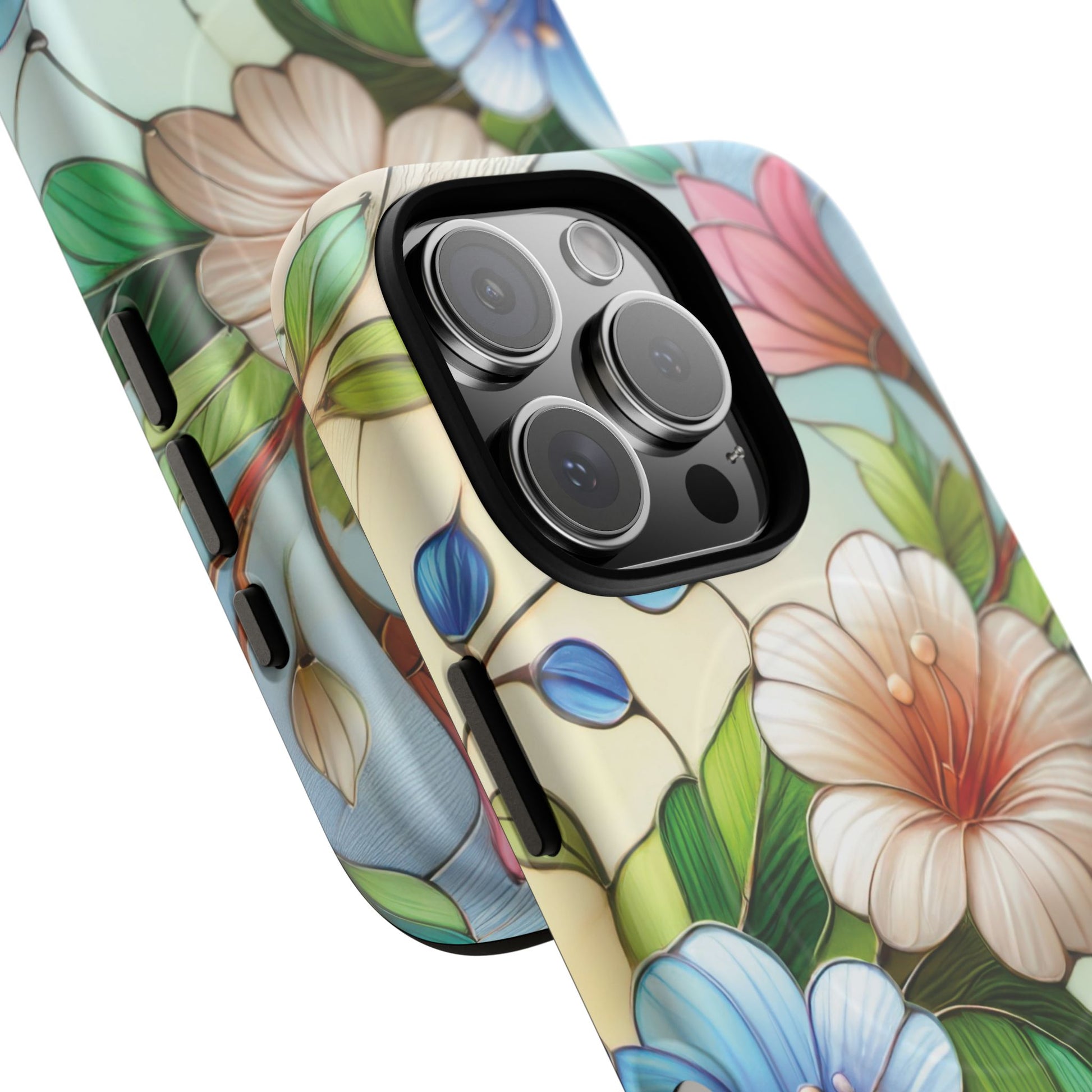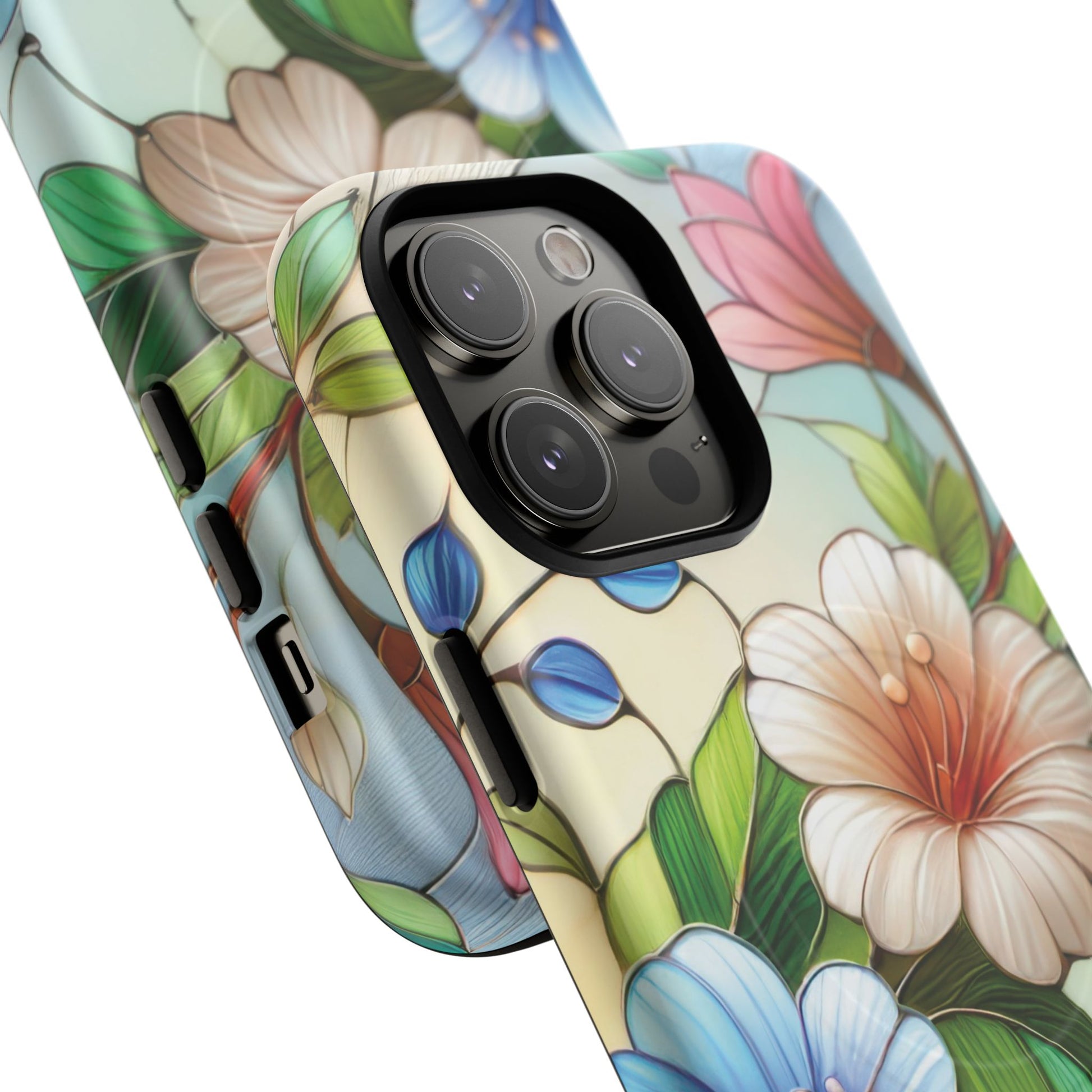 Rose Petal Mosaic Tough iPhone Magnetic Case, Durable Protection, Stylish iPhone Design, Gift for Her, Nature Lover, Unique Stained Glass Accessory