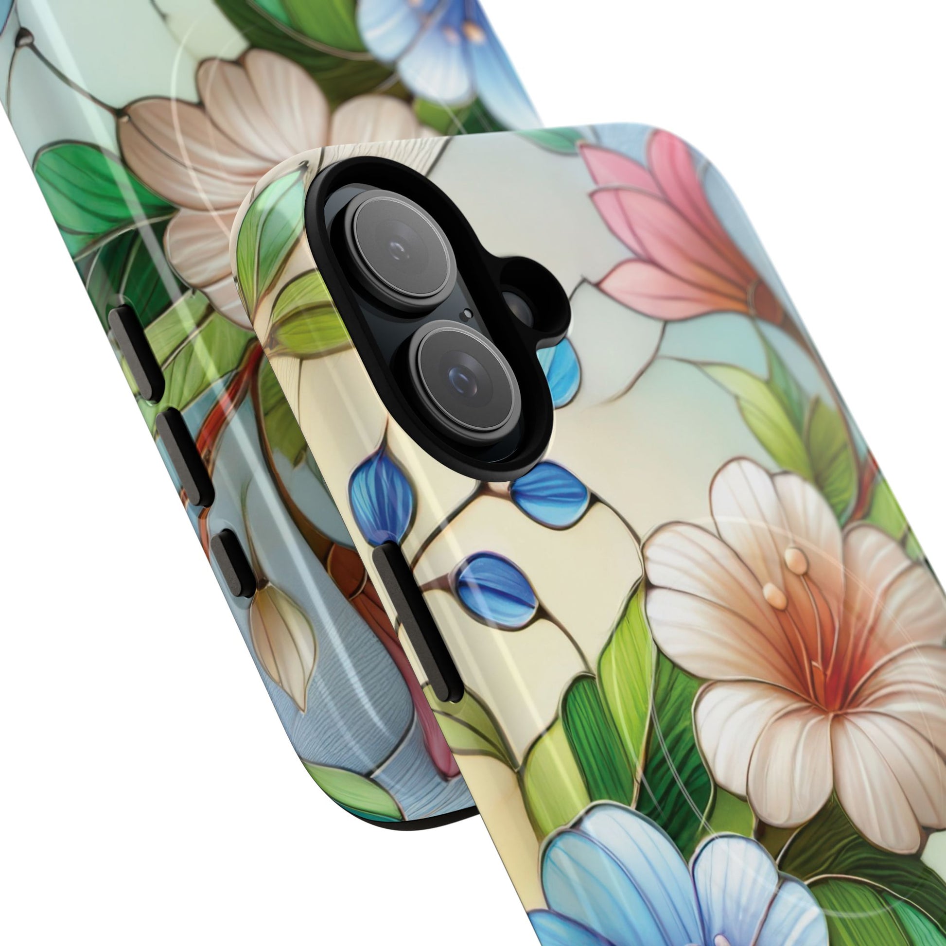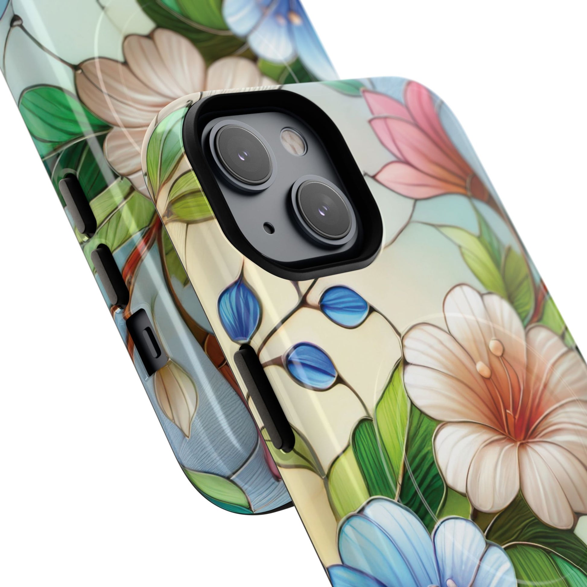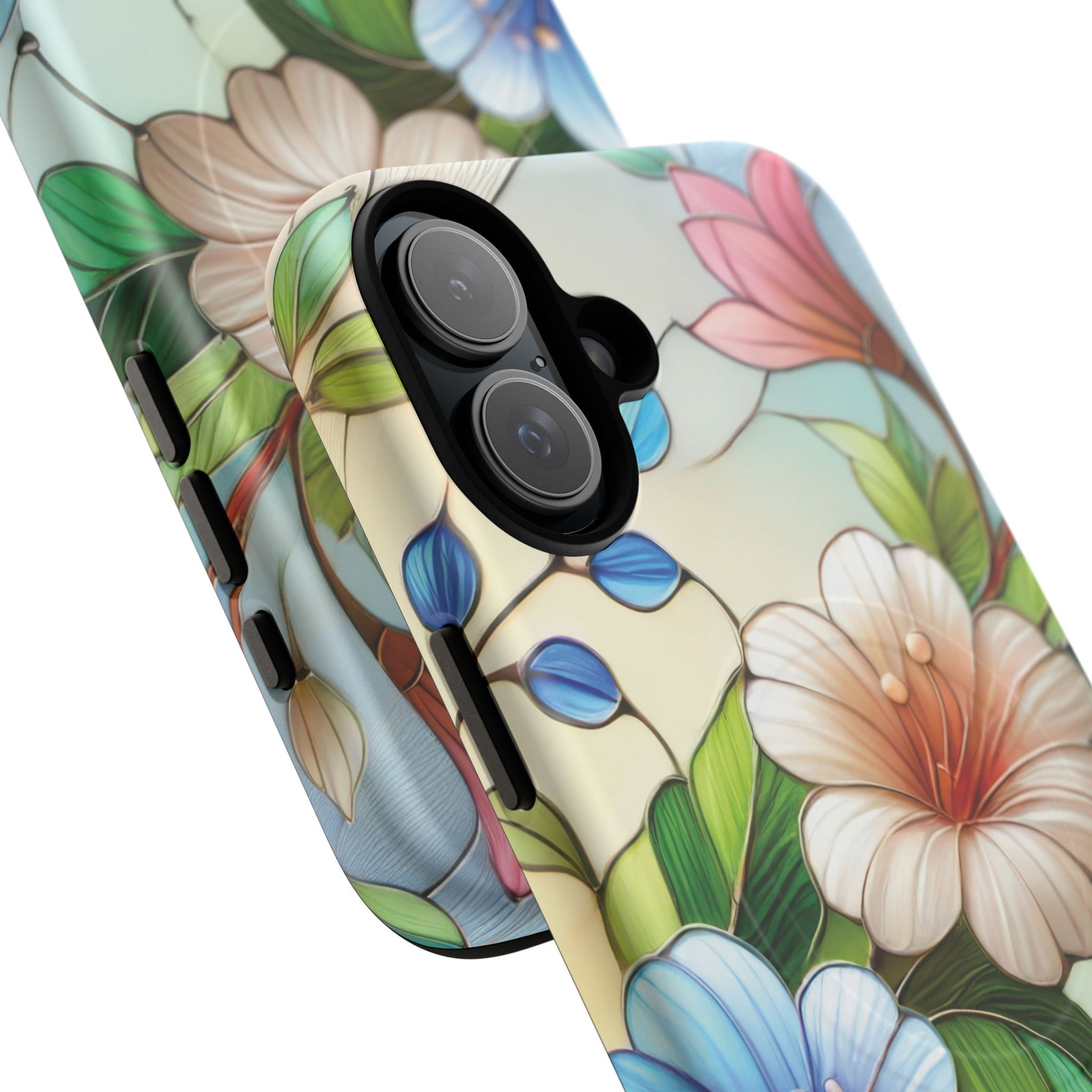 Rose Petal Mosaic Tough iPhone Magnetic Case, Durable Protection, Stylish iPhone Design, Gift for Her, Nature Lover, Unique Stained Glass Accessory