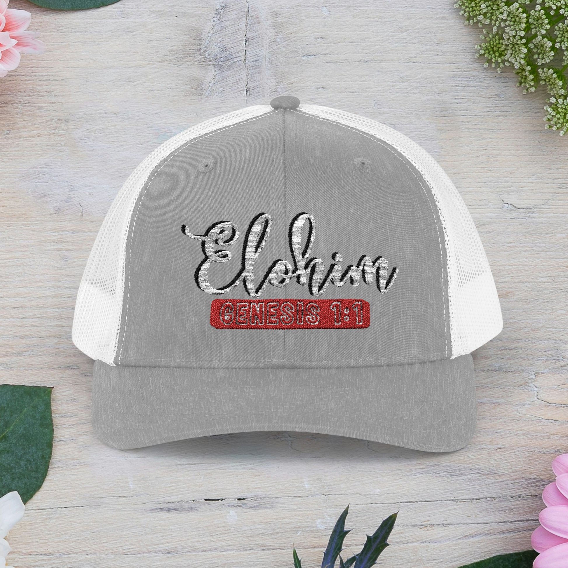 Script Embroidery ''Elohim'' Faith Snapback Trucker Cap - Religious Hat, Stylish Accessory, Gift for Believers, Casual Wear, Outdoor Events, Faith-Based, Name of GOD.