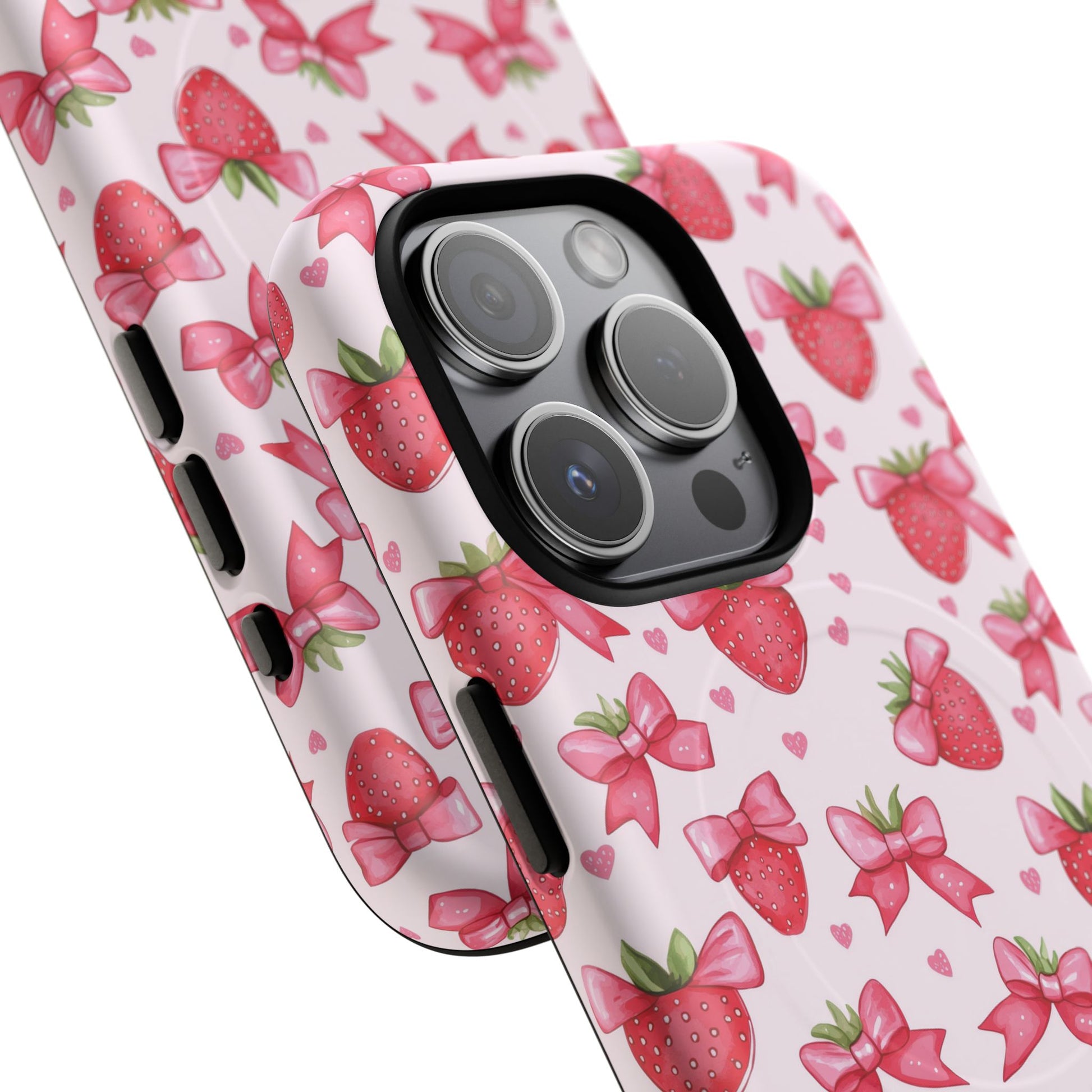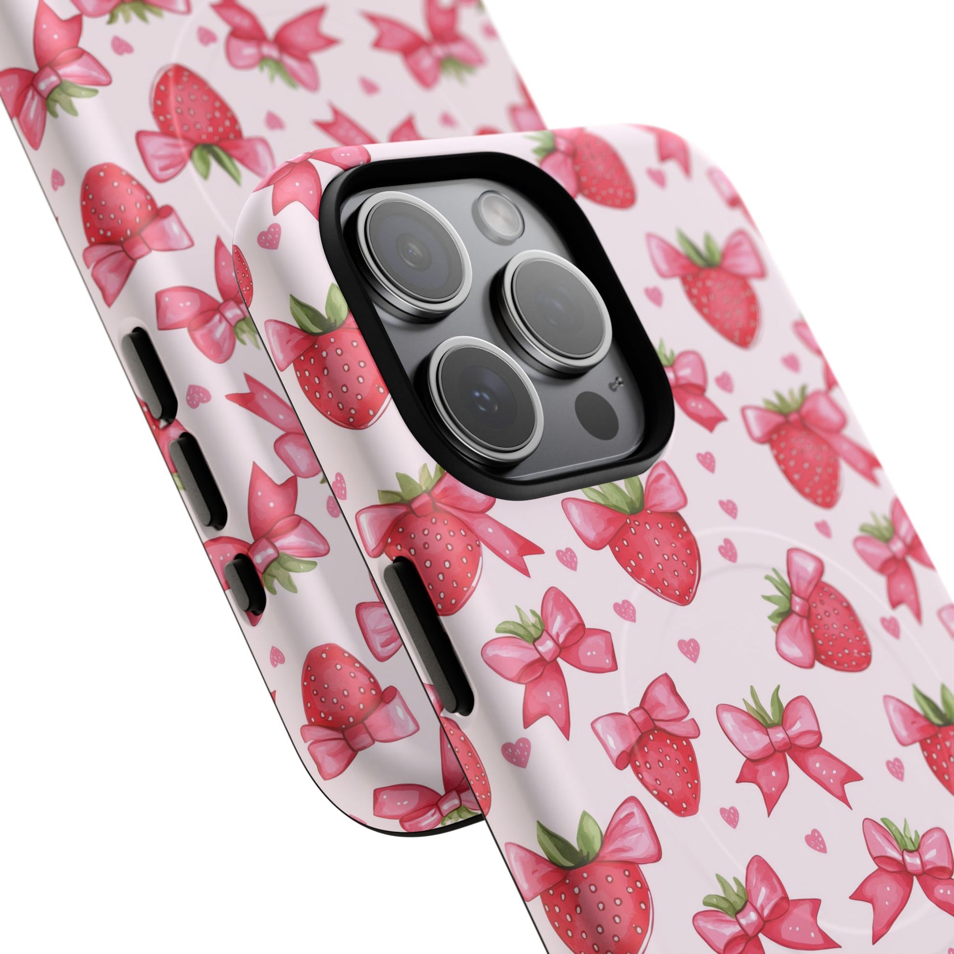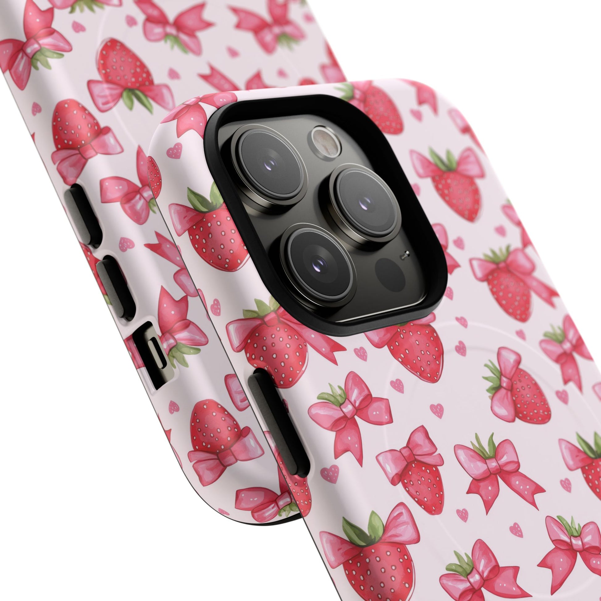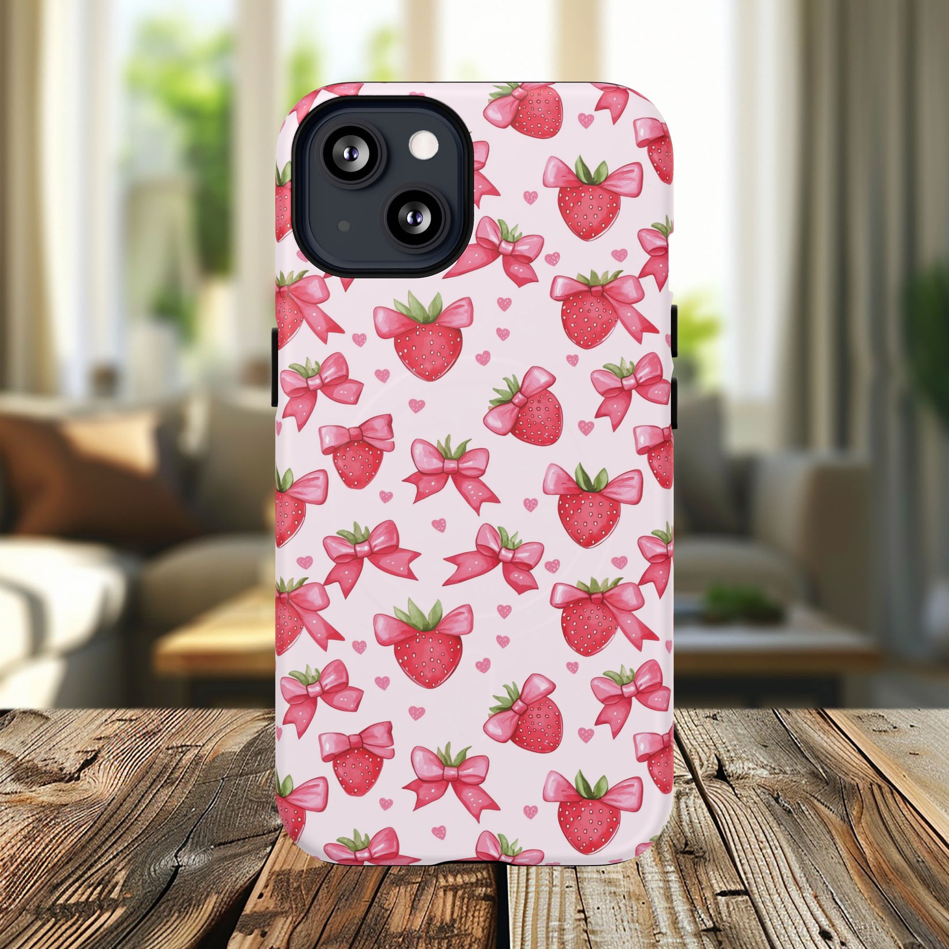 Strawberry Coquette Sweetheart Magnetic iPhone Case, Cute iPhone Cover, Gift for Her, Floral Tech Accessory, Stylish Protection, Mother's Day Gift