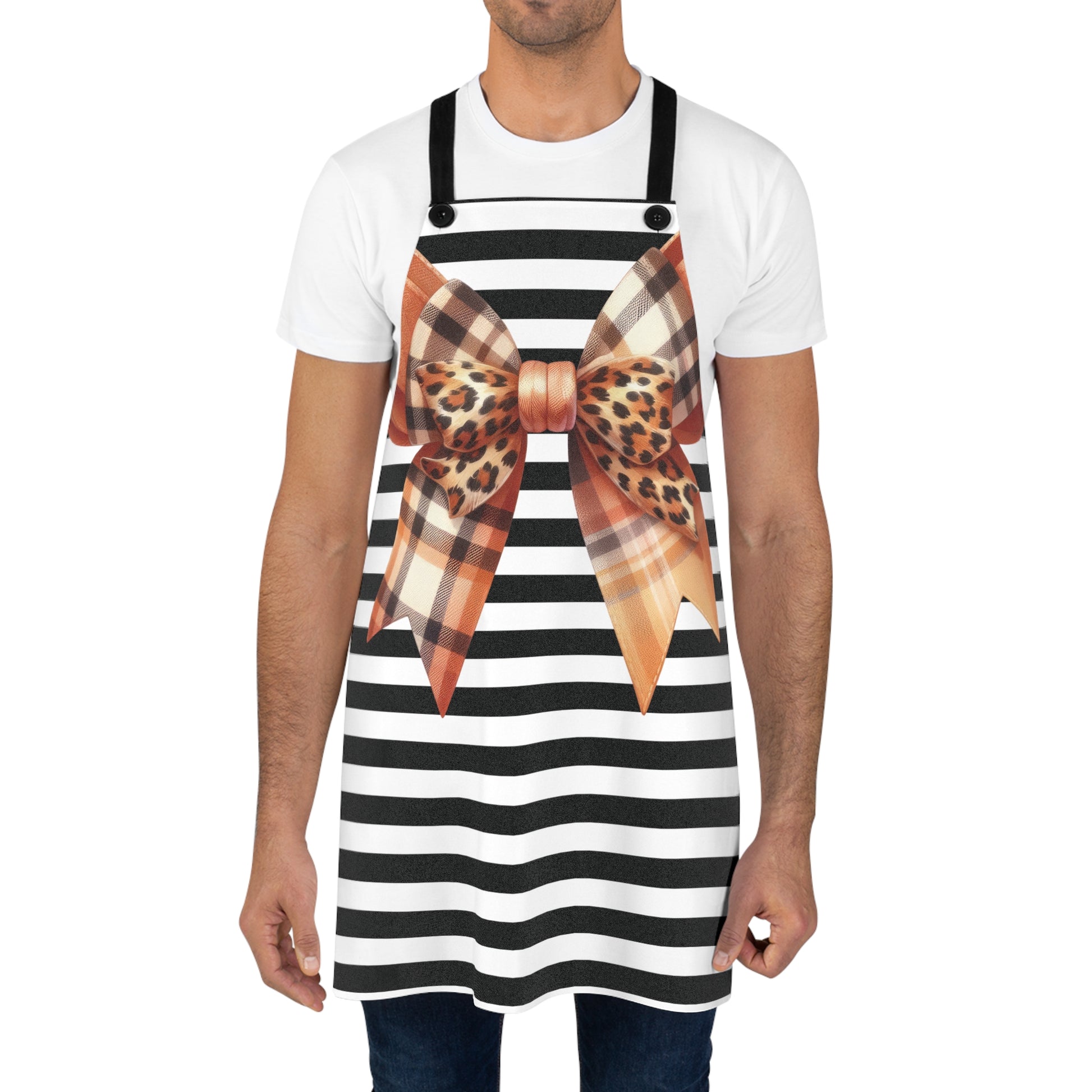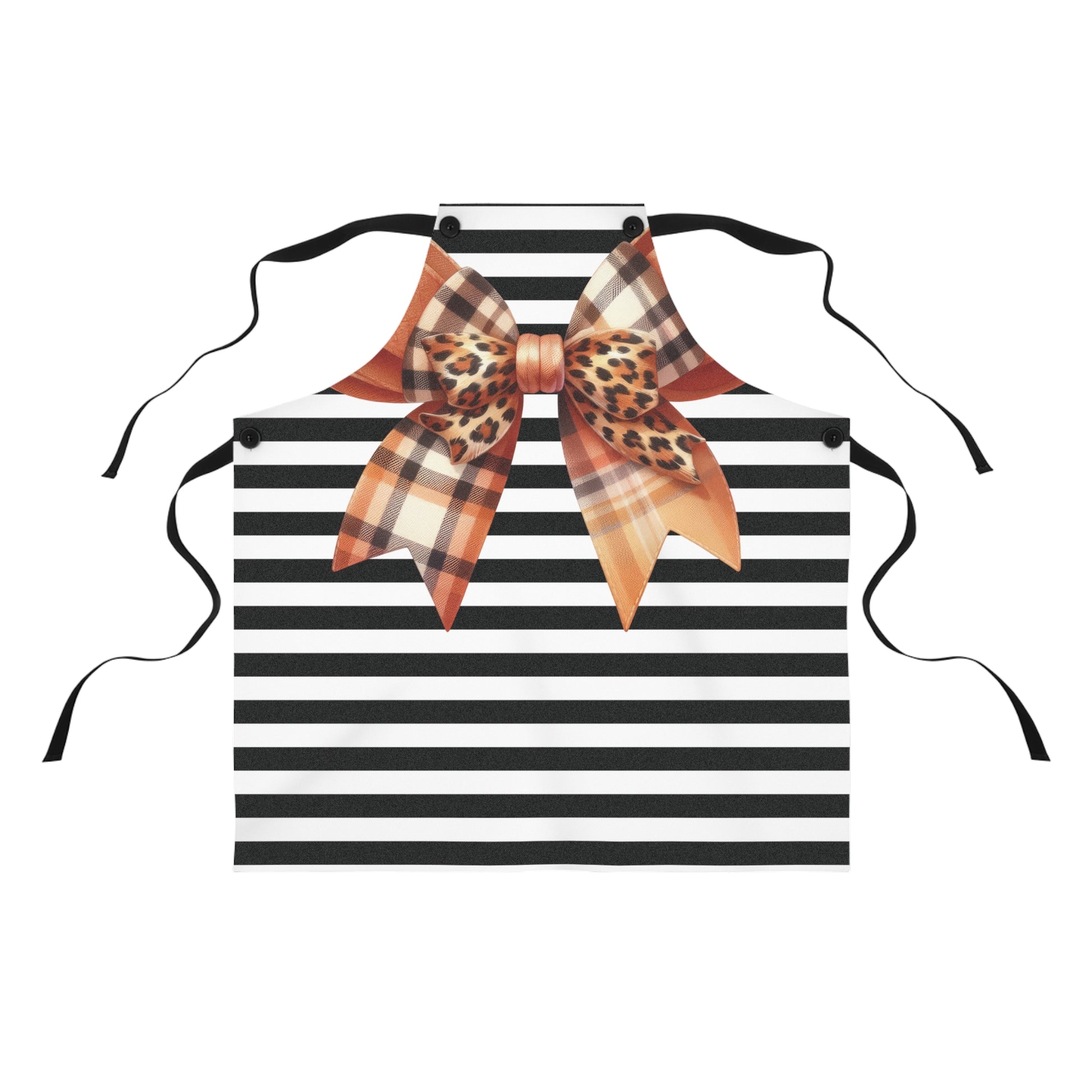 Striped Bow Apron with Detachable Straps - Lightweight Cooking Accessory