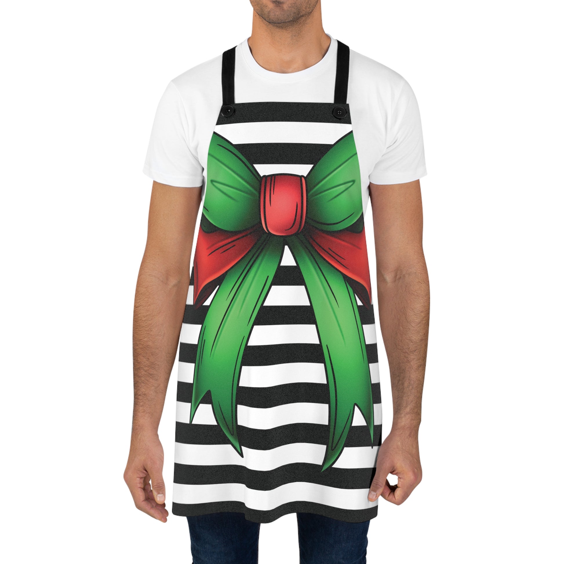Striped Green Bow Apron with Detachable Straps - Lightweight Cooking Accessory
